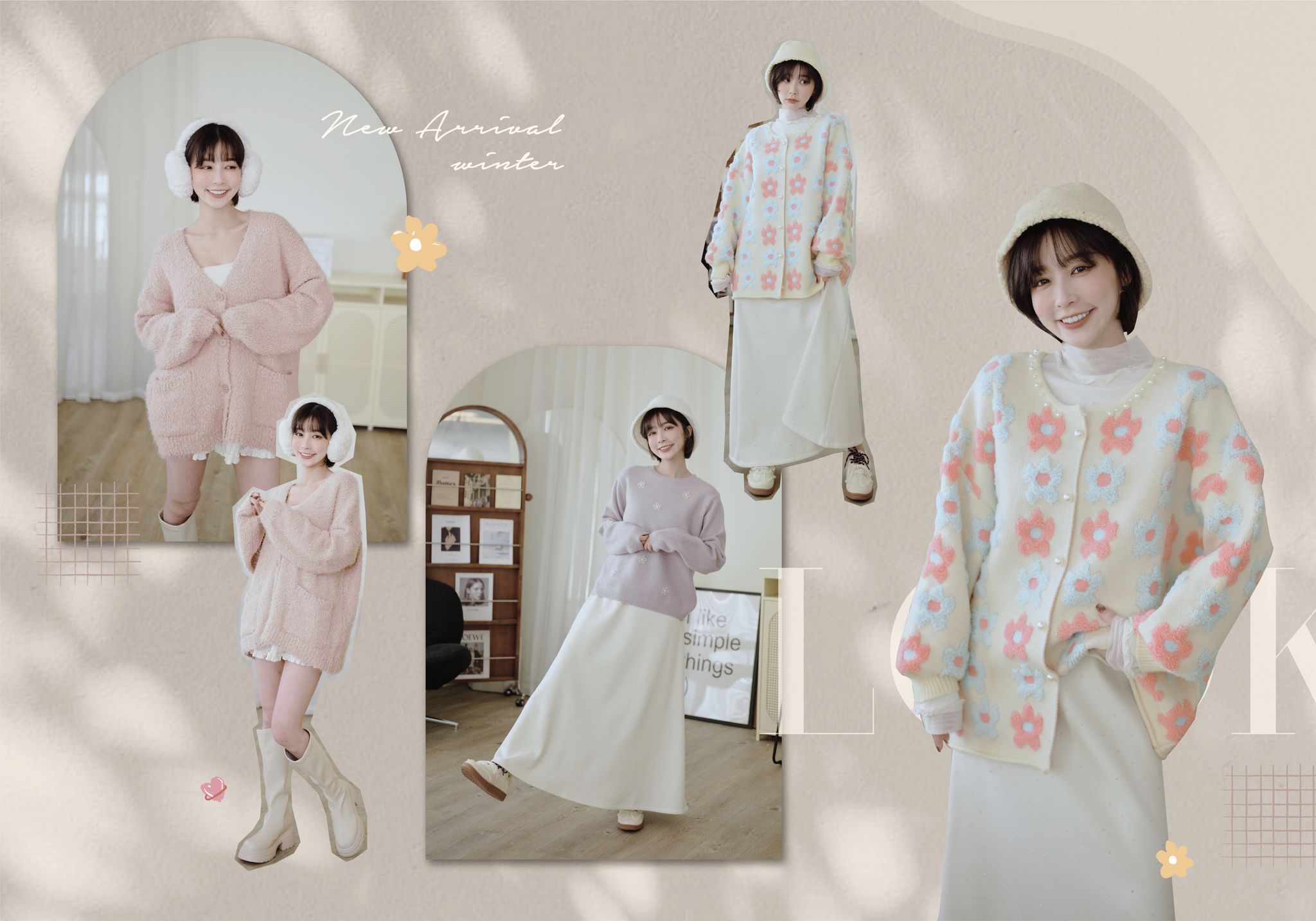 【東京旅拍】氣質針織套裝(連帽條紋披肩+上身+長裙)*3色