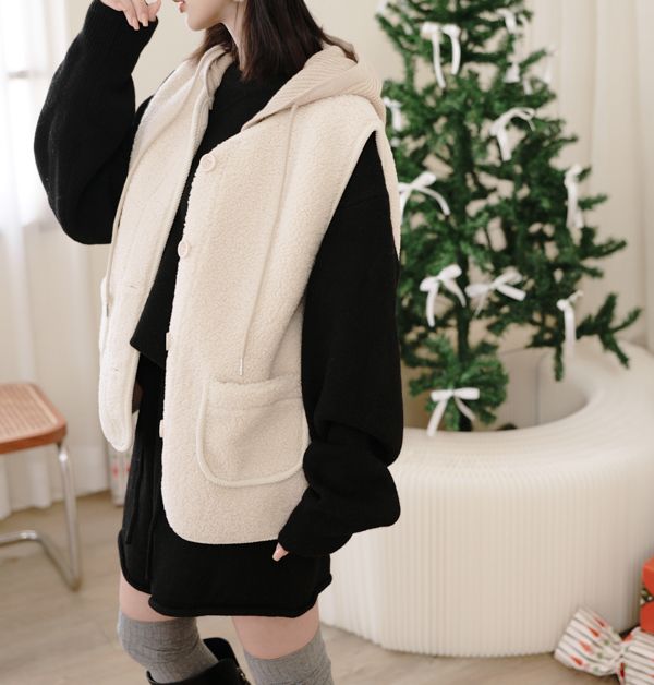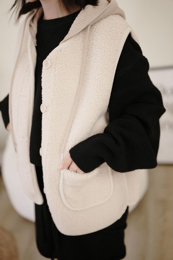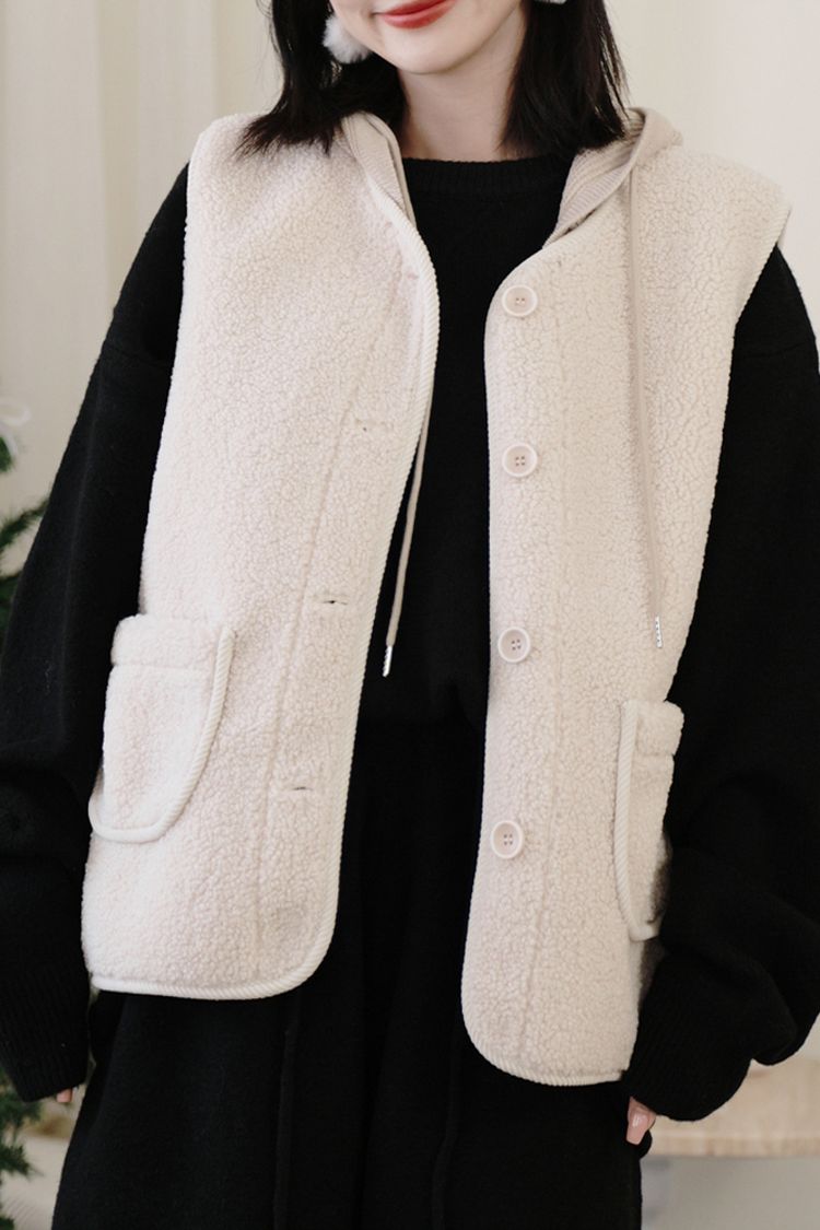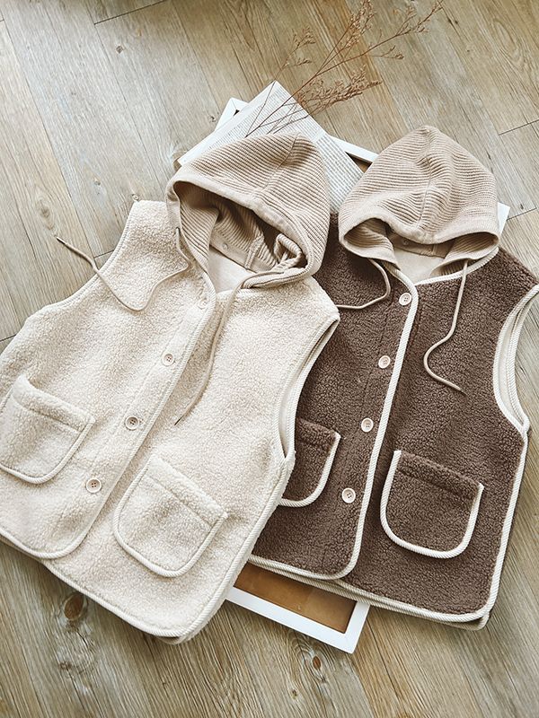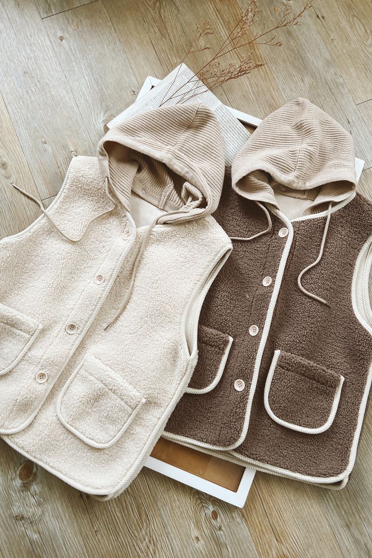 【最後追加】可愛羊羔絨鈕扣背心(帽子可拆)