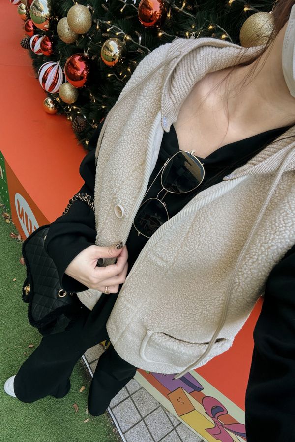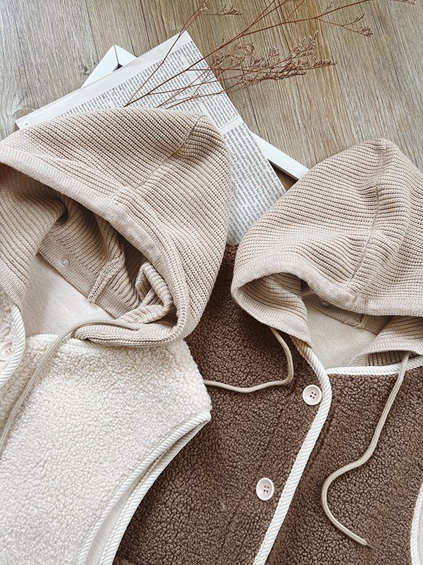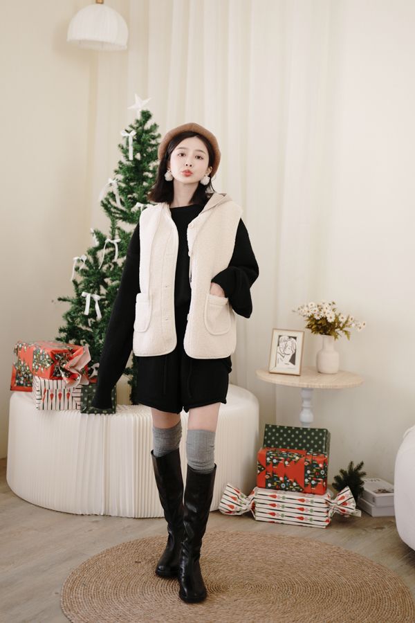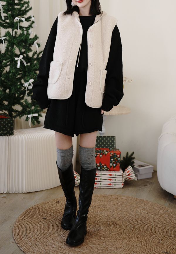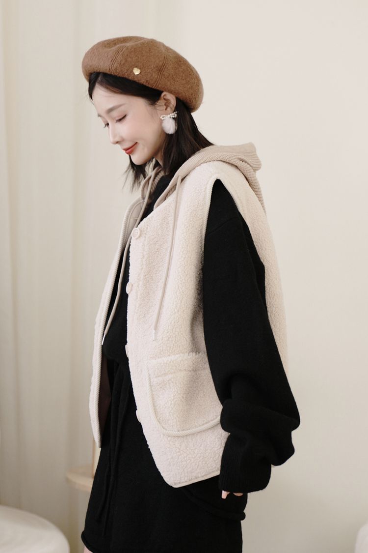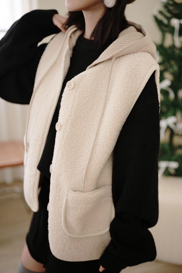 【最後追加】可愛羊羔絨鈕扣背心(帽子可拆)