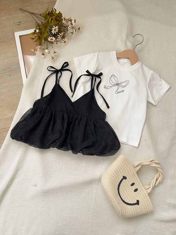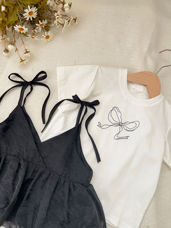 【限量現貨】可愛蝴蝶結上衣套組(Tee+雲朵背心)