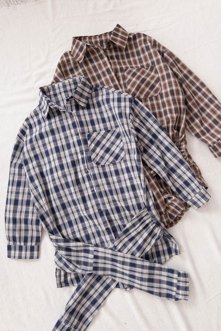 【限量現貨】格紋綁帶袖襯衫/短洋裝