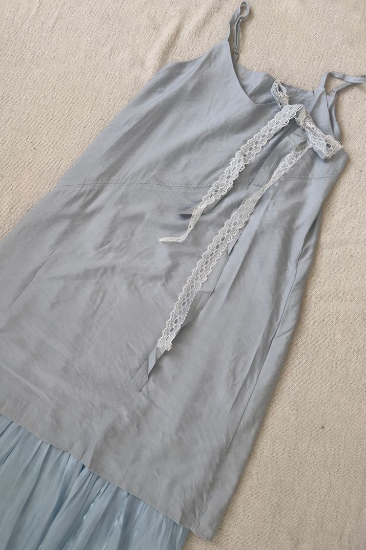 亮色拼紗細肩長洋(附蕾絲綁帶)
