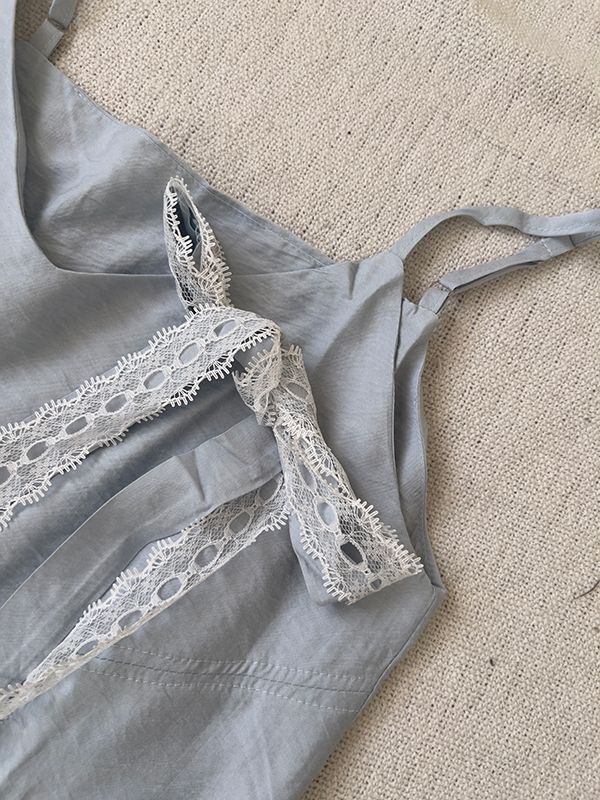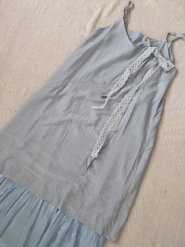 【限量現貨】亮色拼紗細肩長洋(附蕾絲綁帶)
