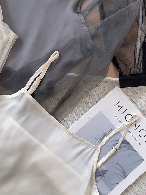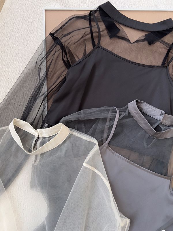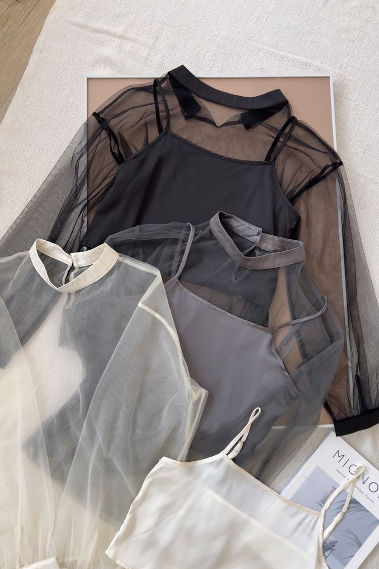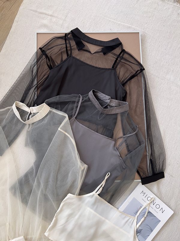 【限量現貨】真兩件微高領透膚上衣+背心(肩帶可調)