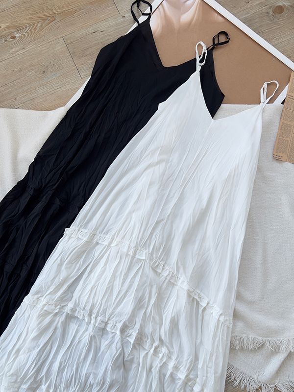 【限量現貨】皺皺細肩蛋糕洋裝