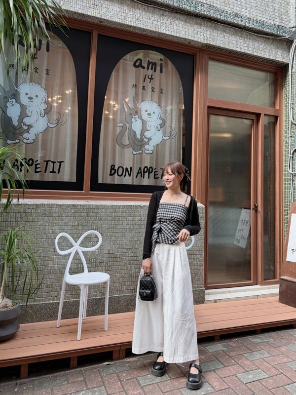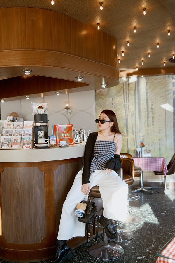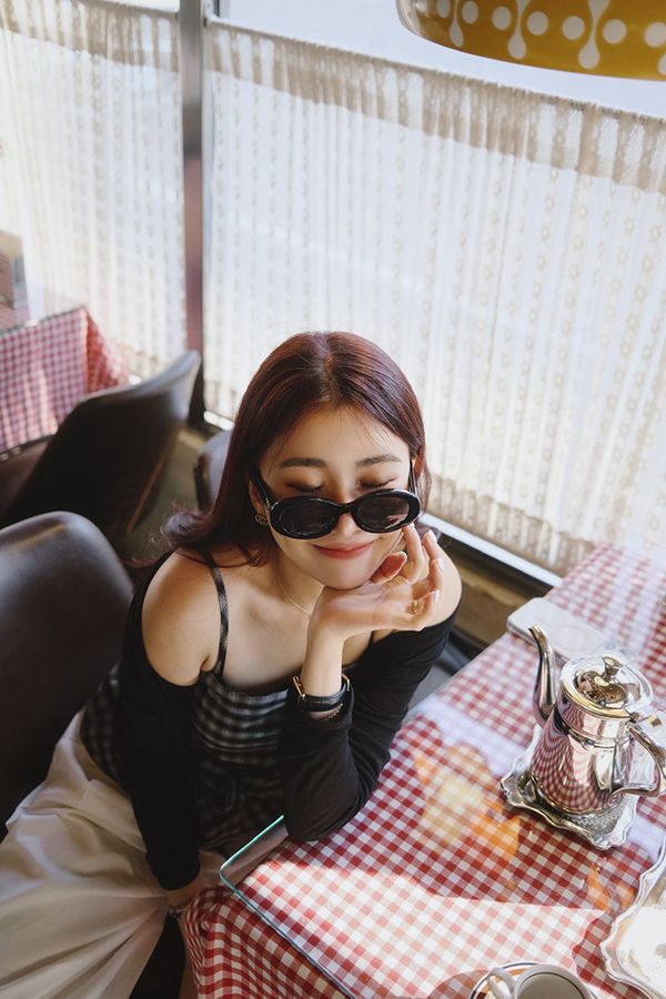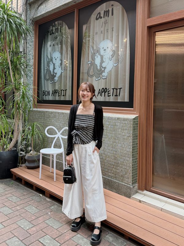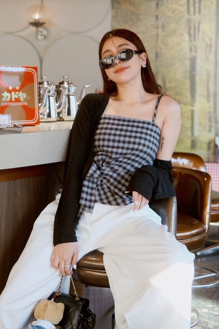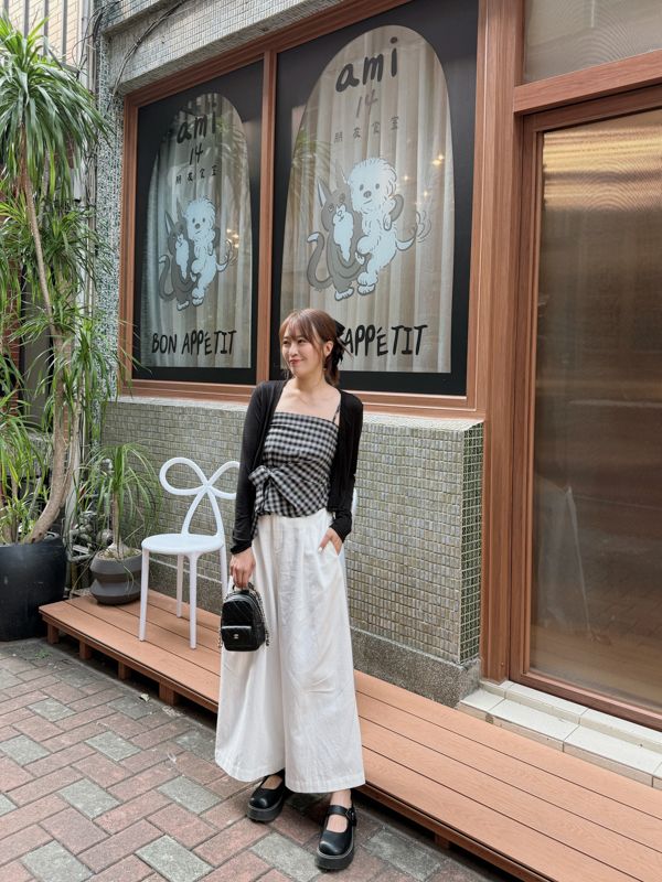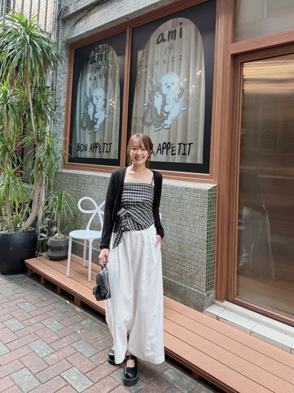 格紋側綁帶上衣套組(細肩上衣+開襟罩衫)