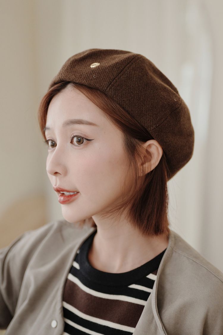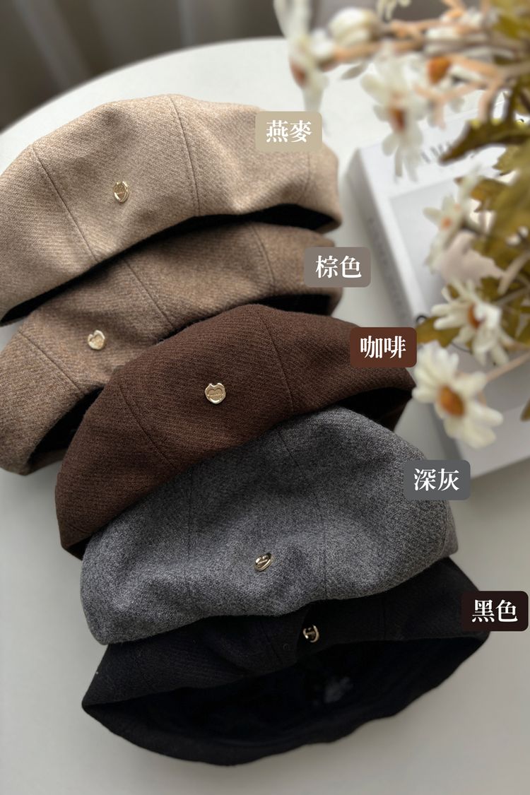 英倫愛心金釦貝蕾帽(可調節)
