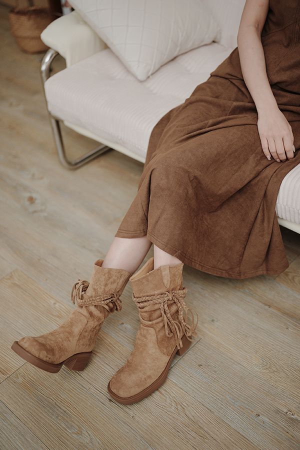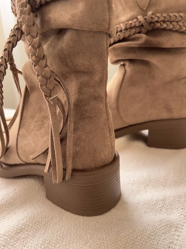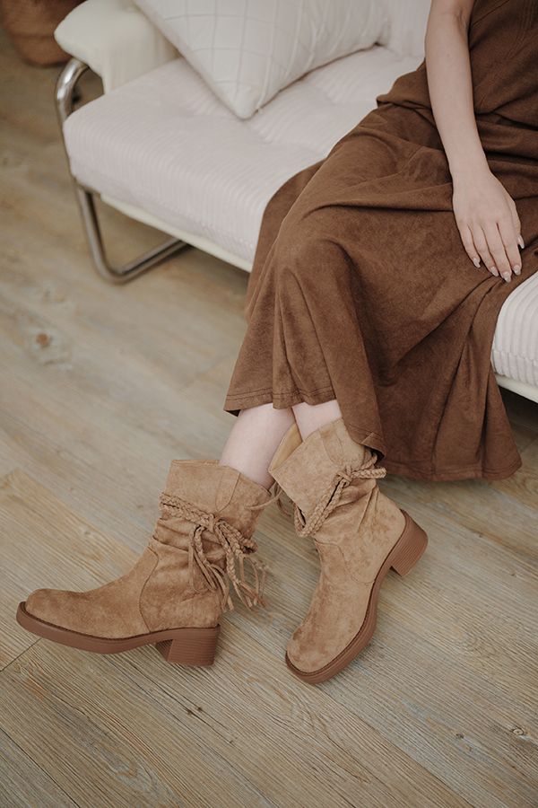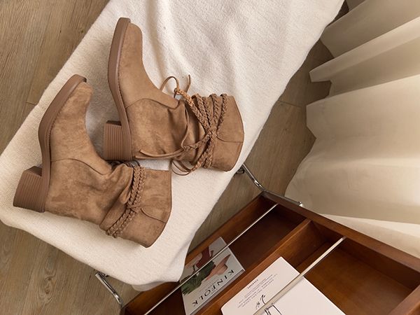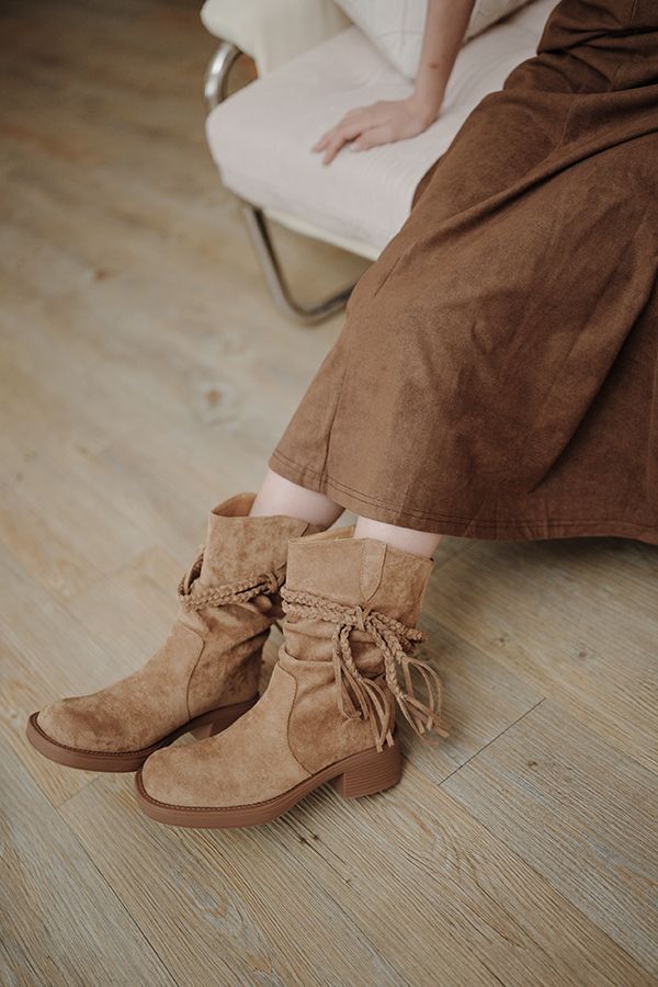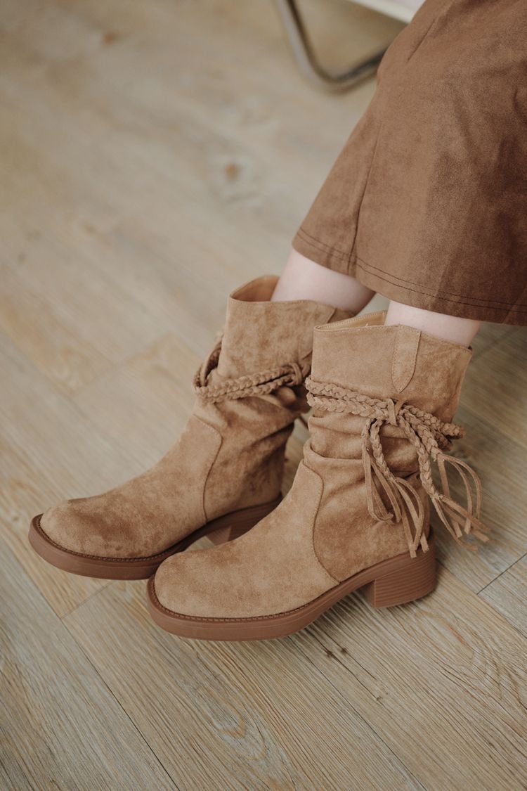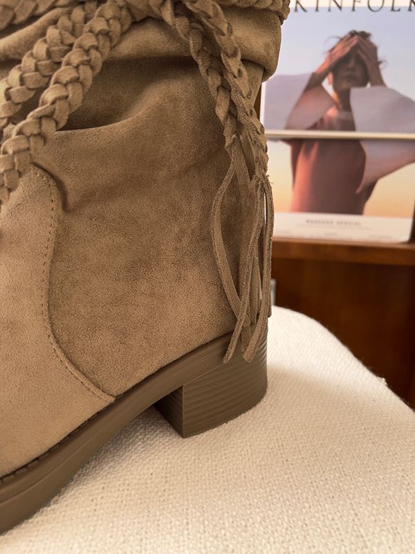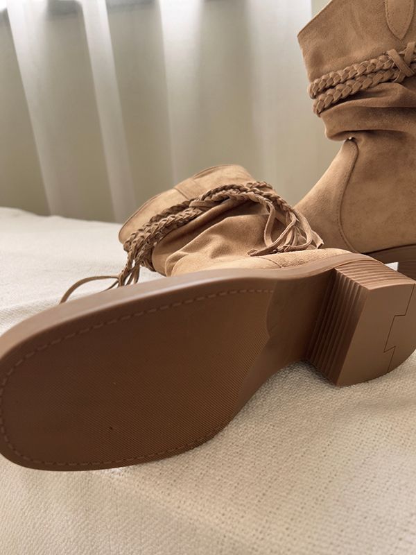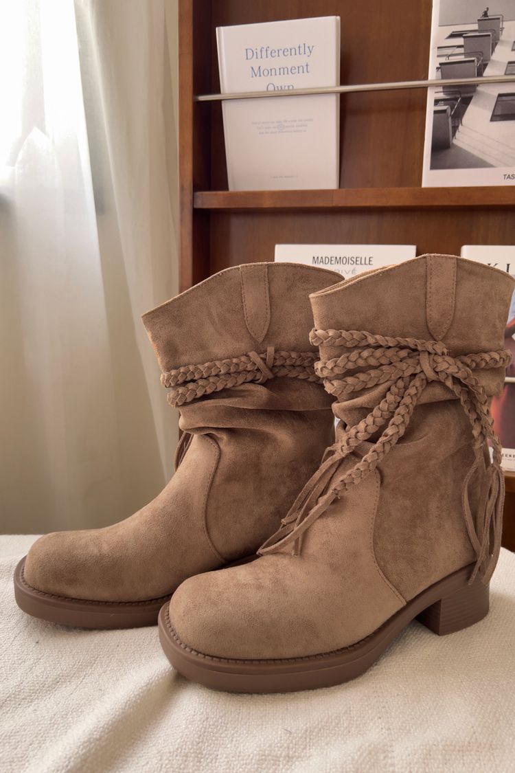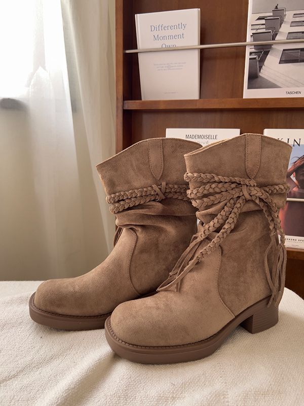 美拉德西部牛仔褶皺短靴