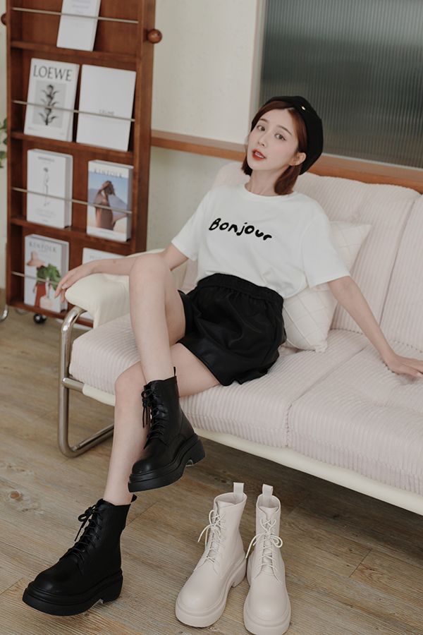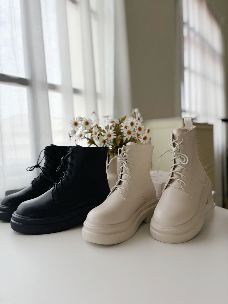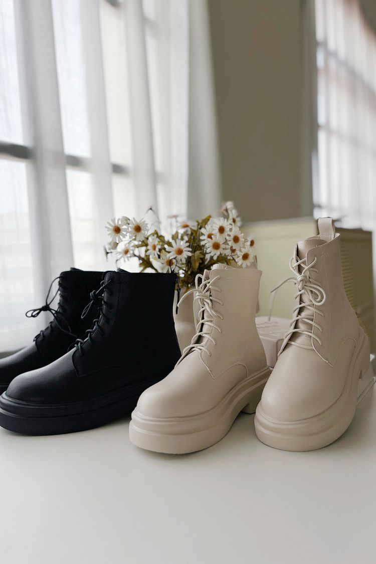 秋冬必備!時尚綁帶厚底靴(有到42碼/後拉鍊)