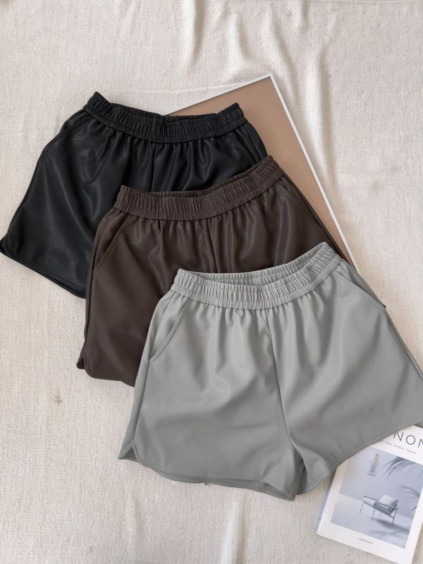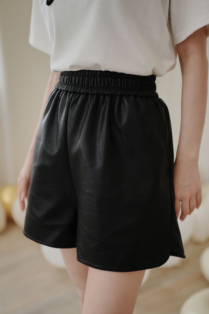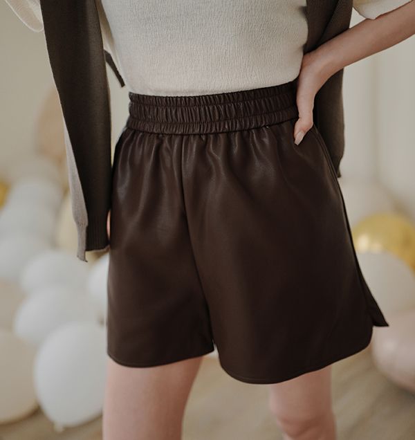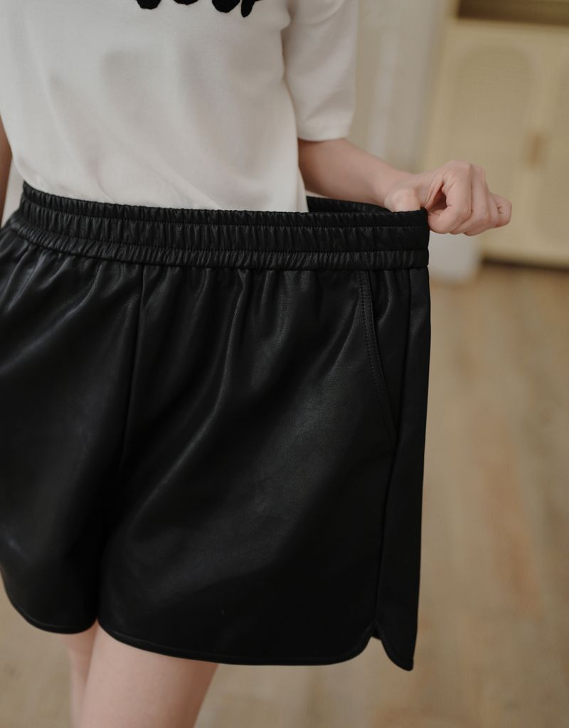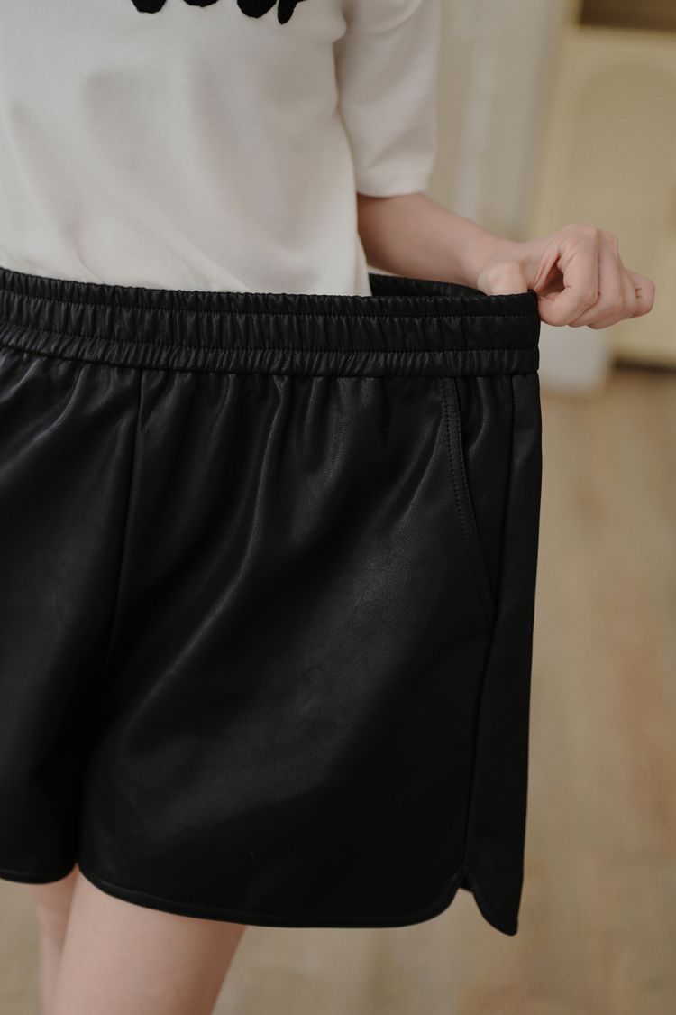 經典秋冬必備皮短褲(全鬆緊/XL可穿/有口袋)