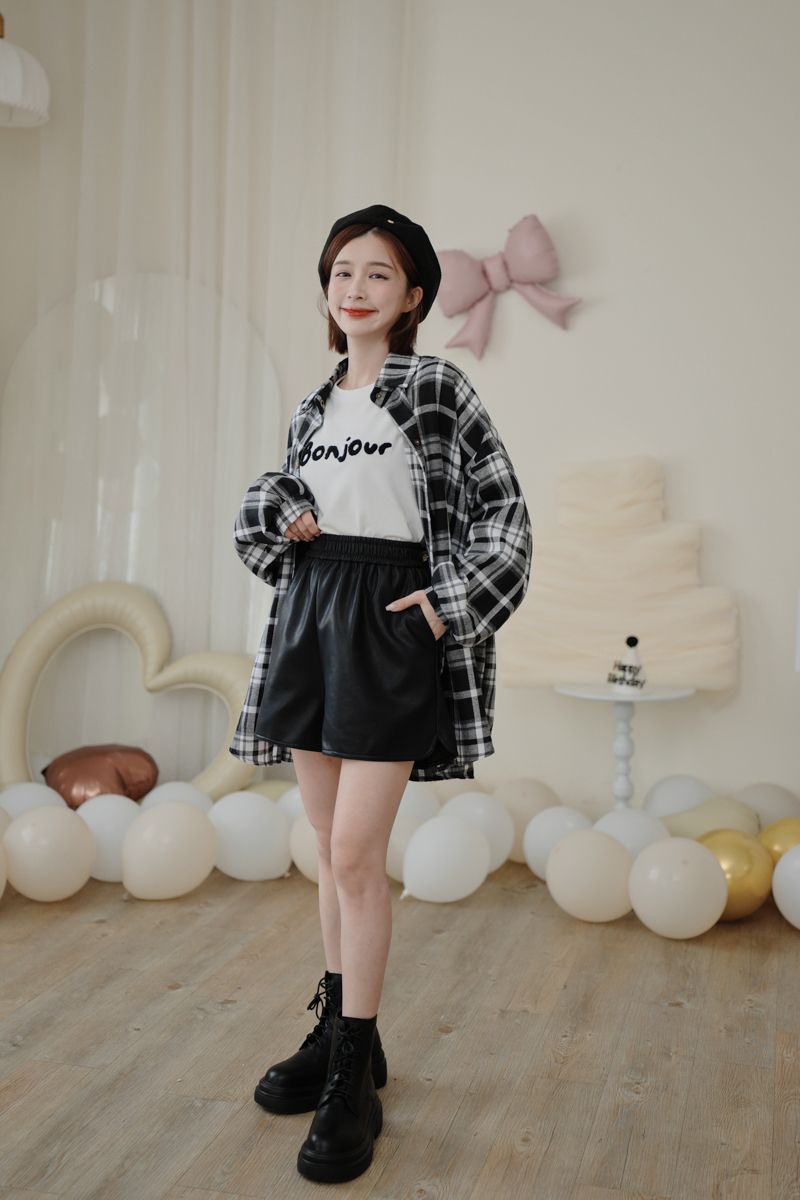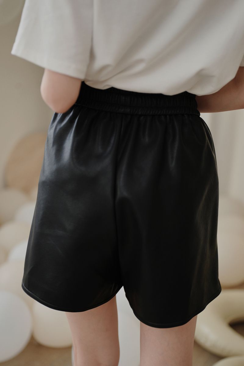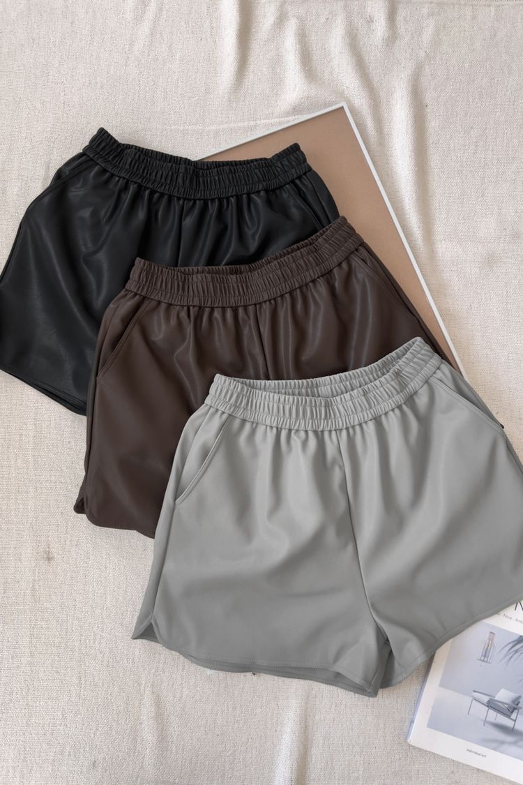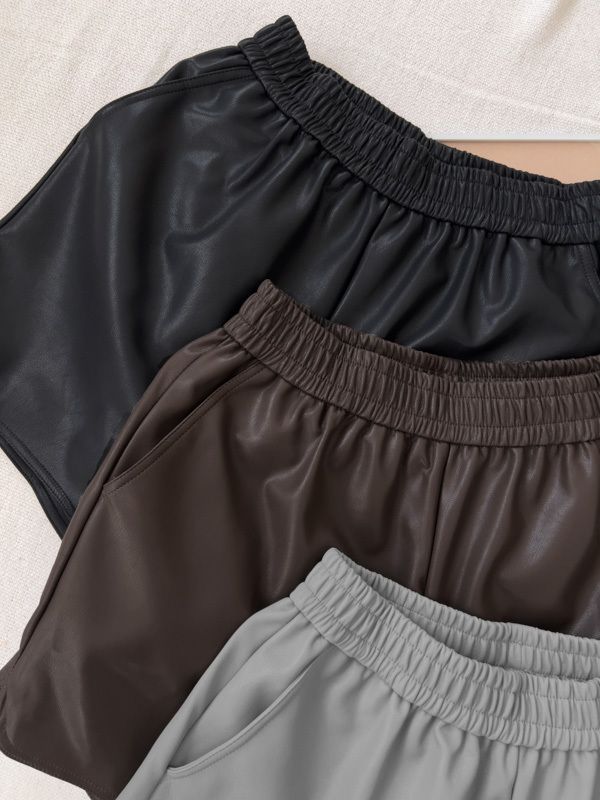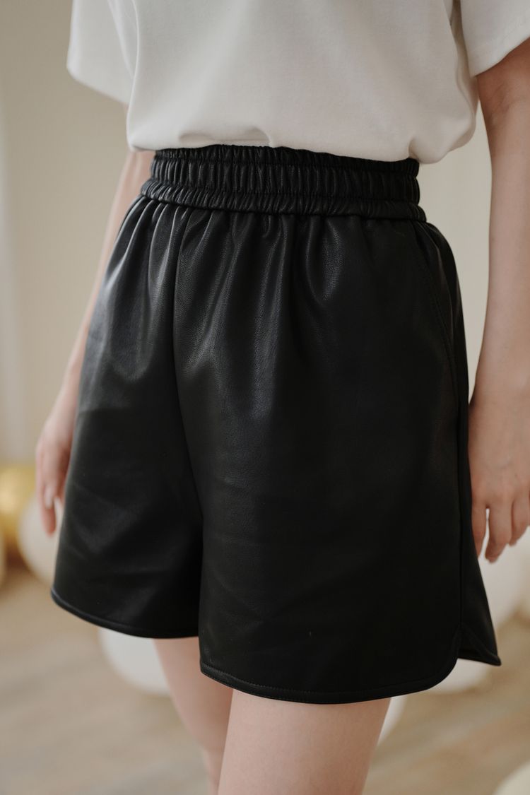 經典秋冬必備皮短褲(全鬆緊/XL可穿/有口袋)