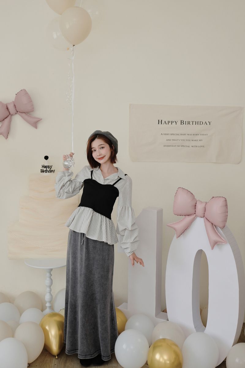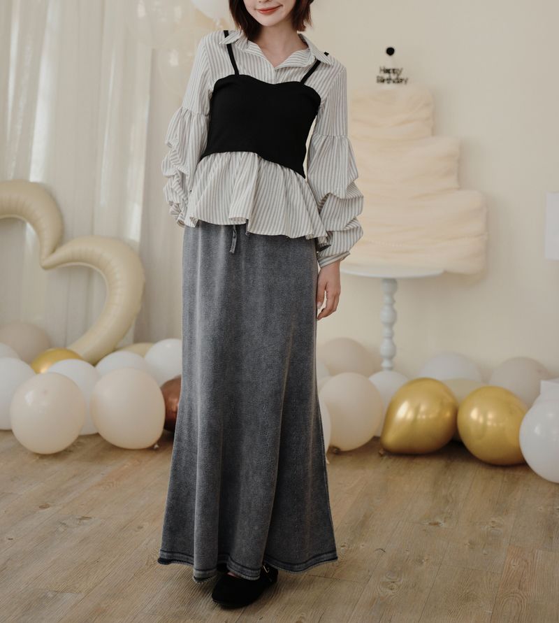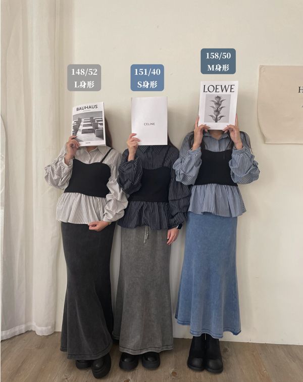 水洗刷色小魚尾包臀長裙(XL可穿)