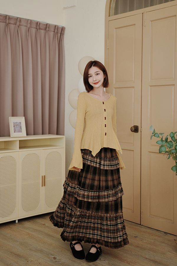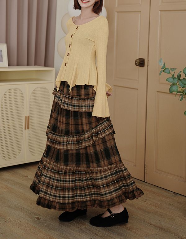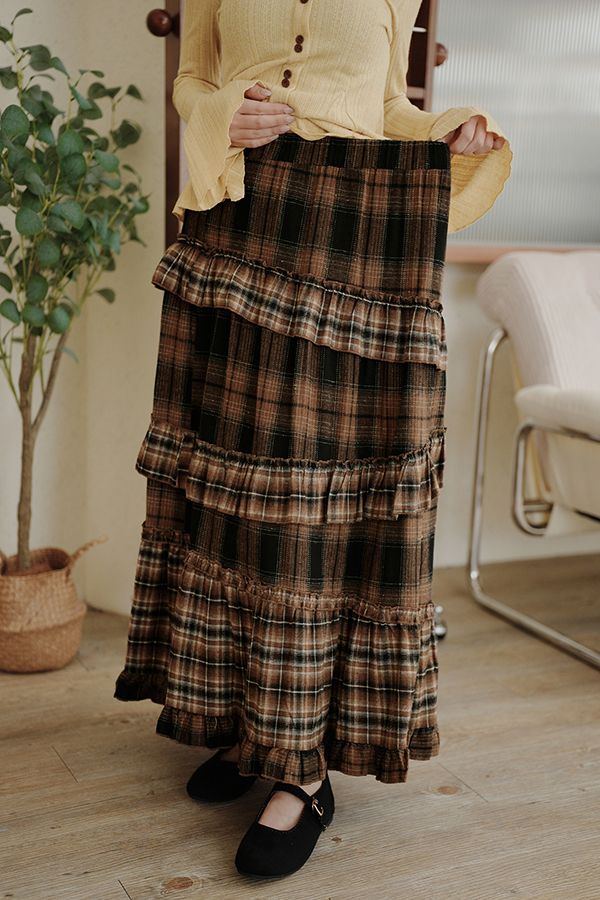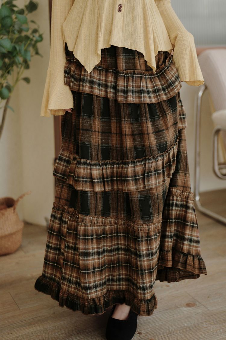 秋冬復古蛋糕中長裙(全鬆緊)