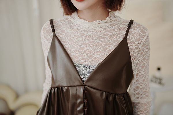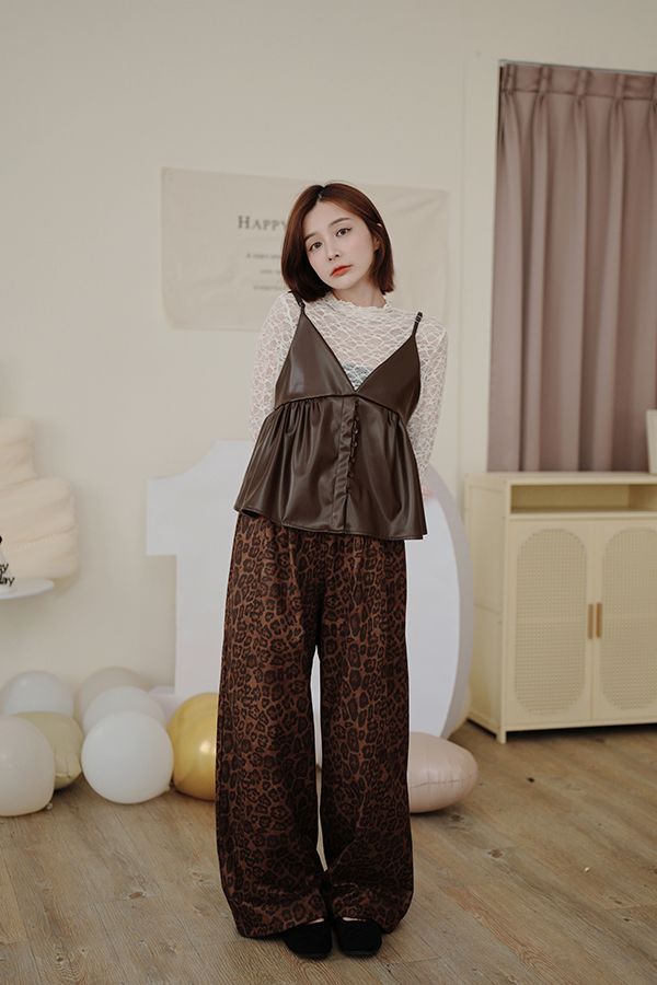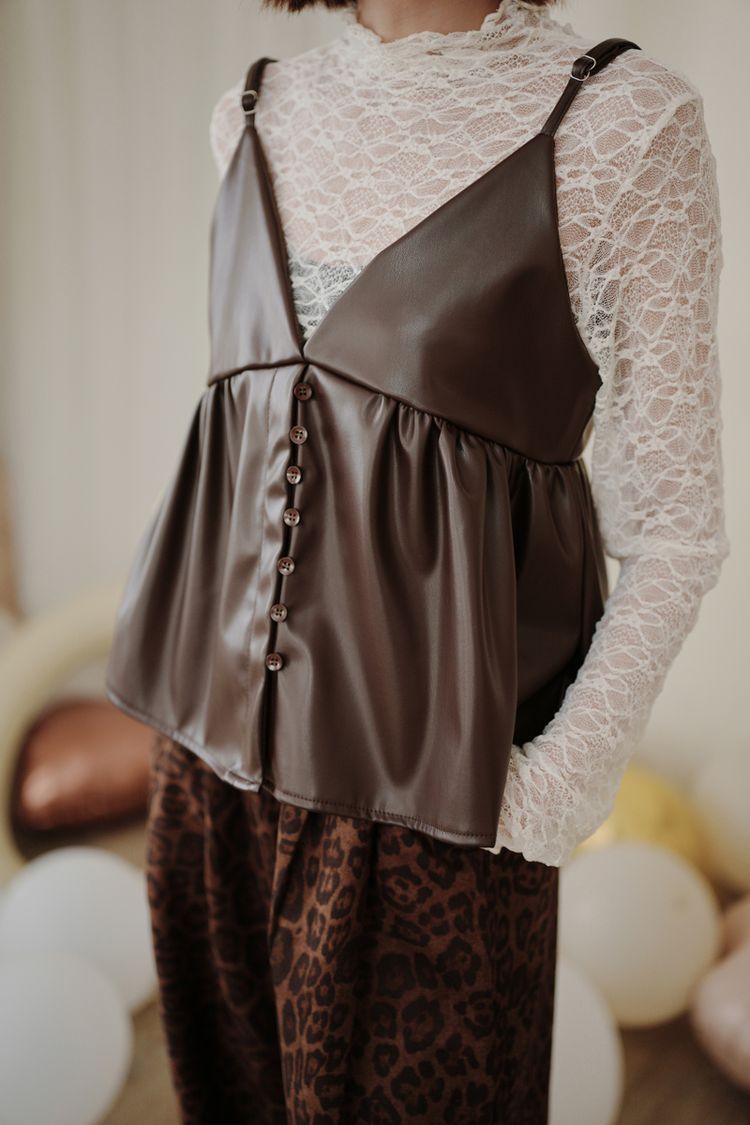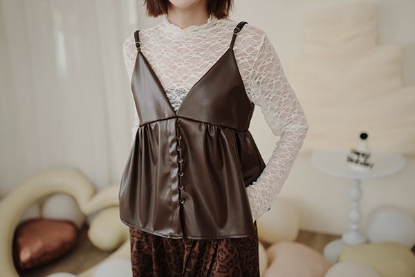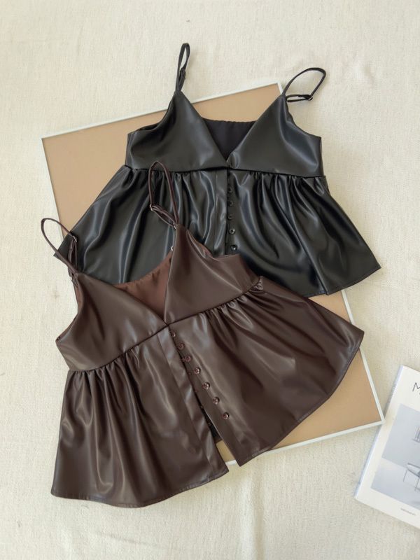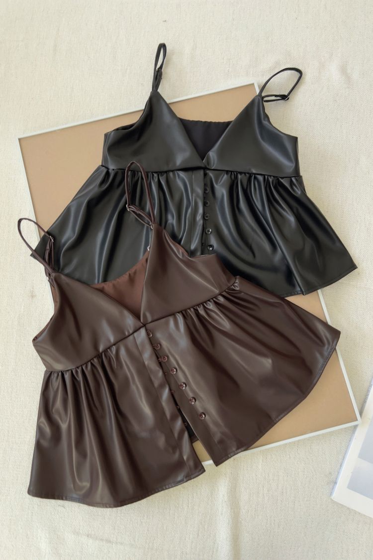 時髦皮革疊穿細肩帶背心(肩帶可調)