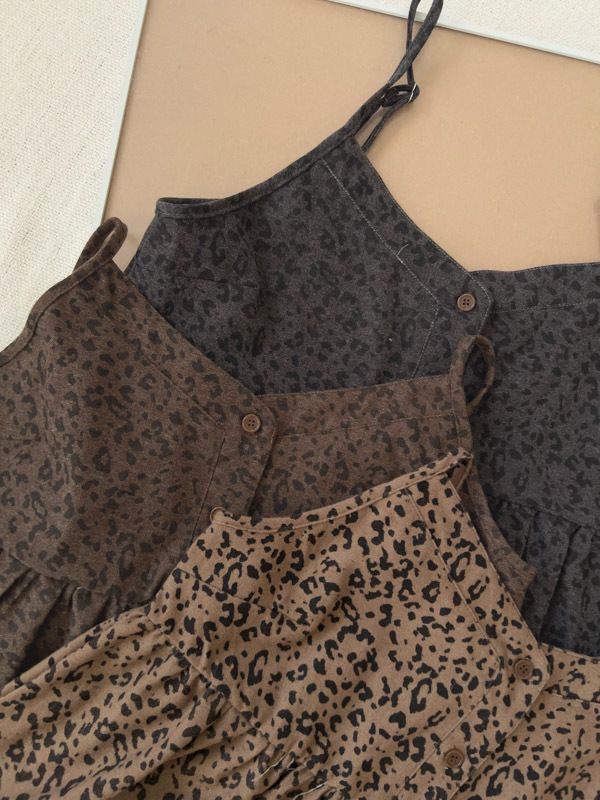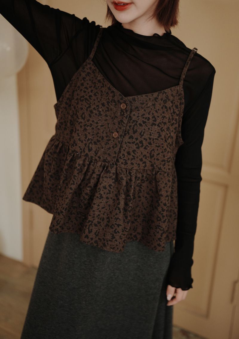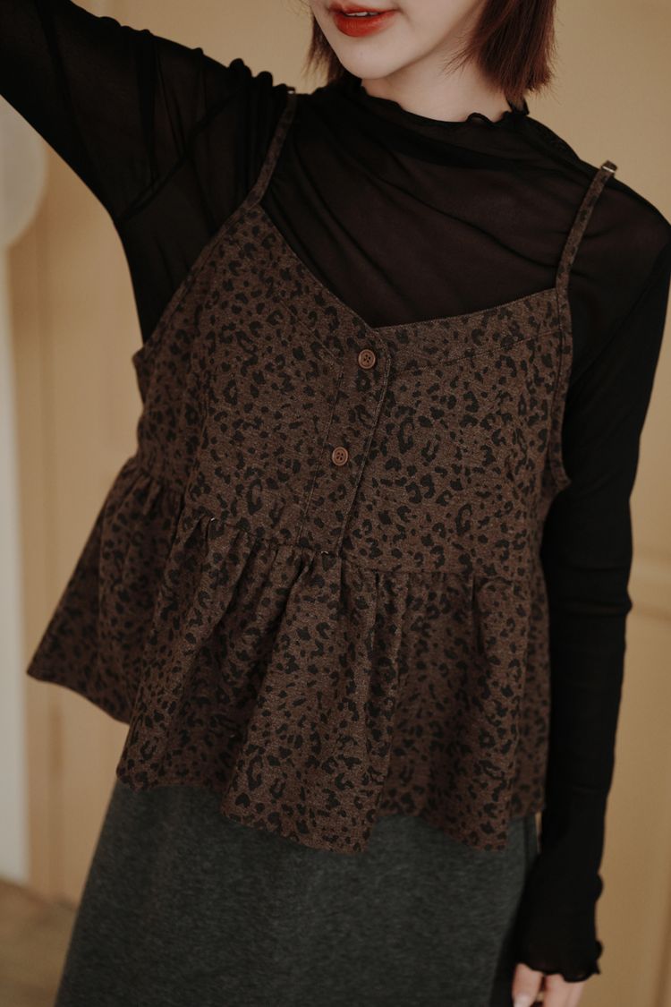 小豹紋疊穿細肩帶背心(肩帶可調)