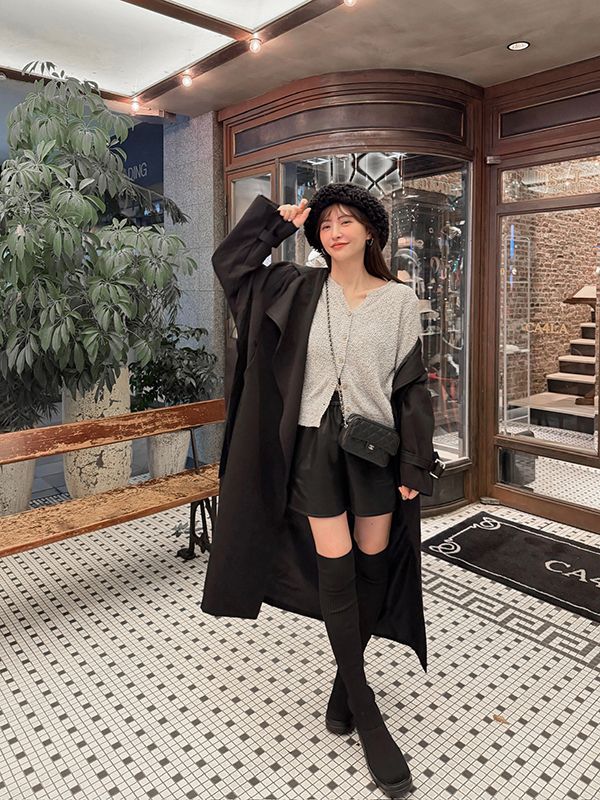 【東京旅拍】小V領氣質混針織上衣/外套