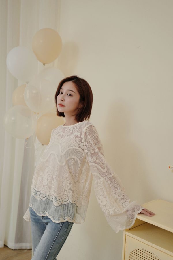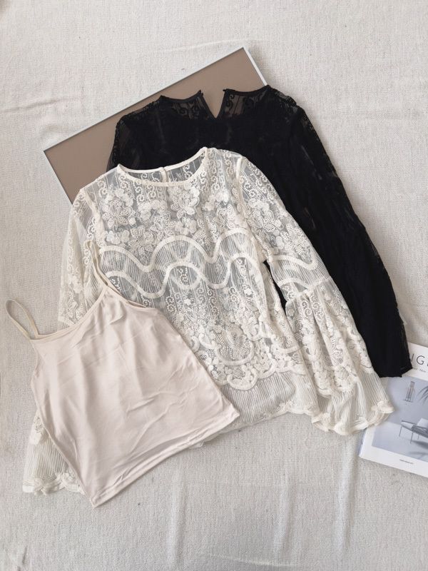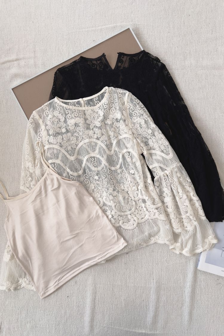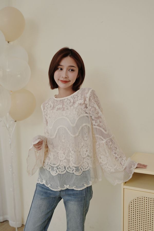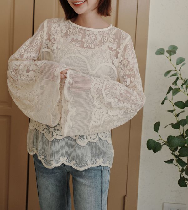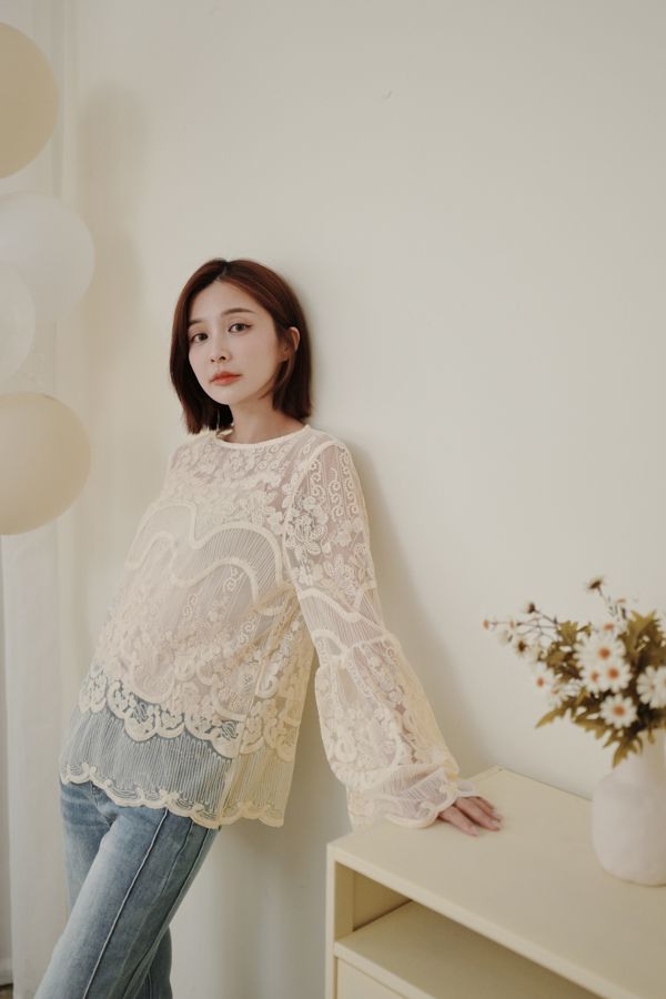 宮廷風蕾絲刺繡上衣(附小可愛)