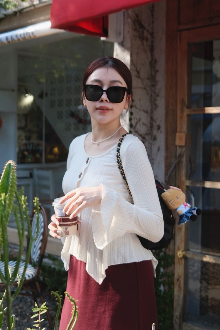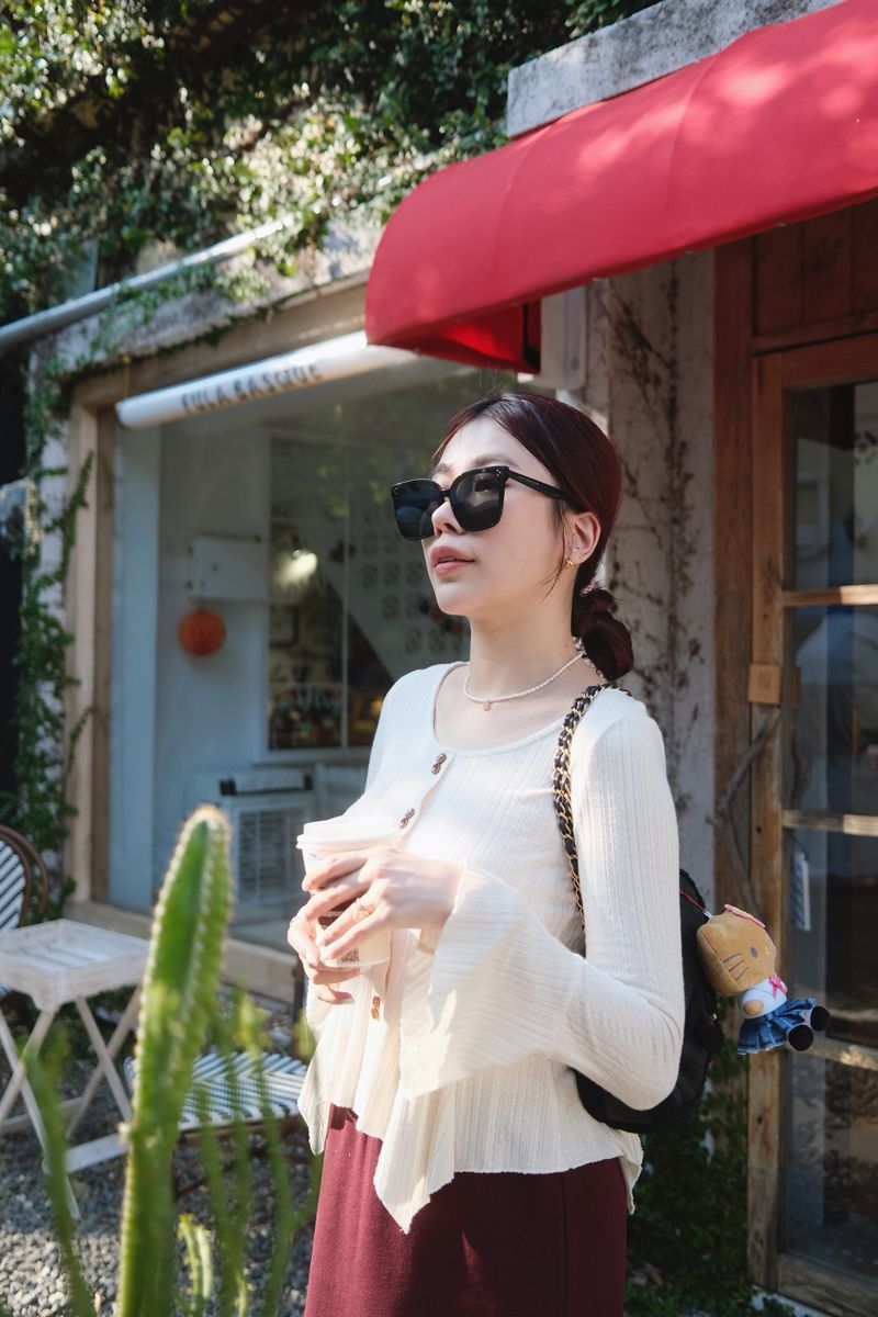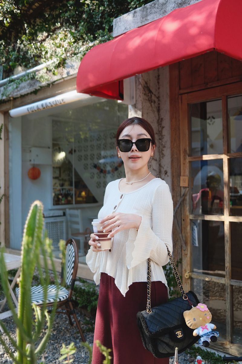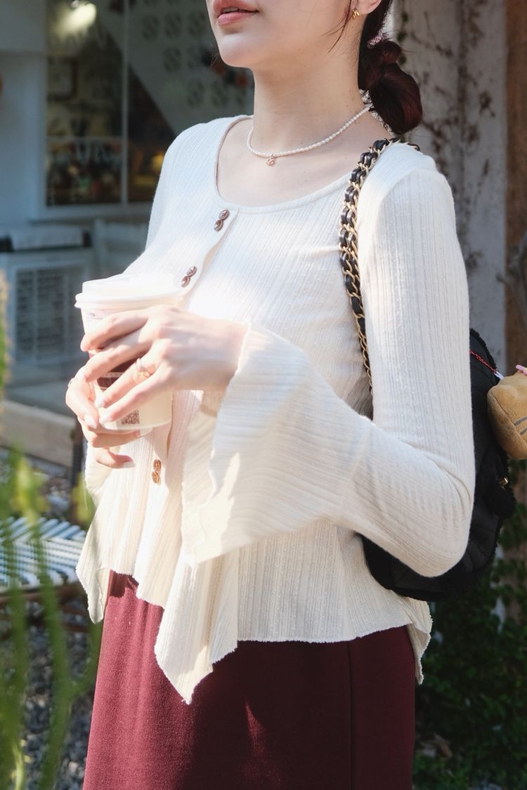 溫柔小法式收腰奶油針織上衣(假釦)