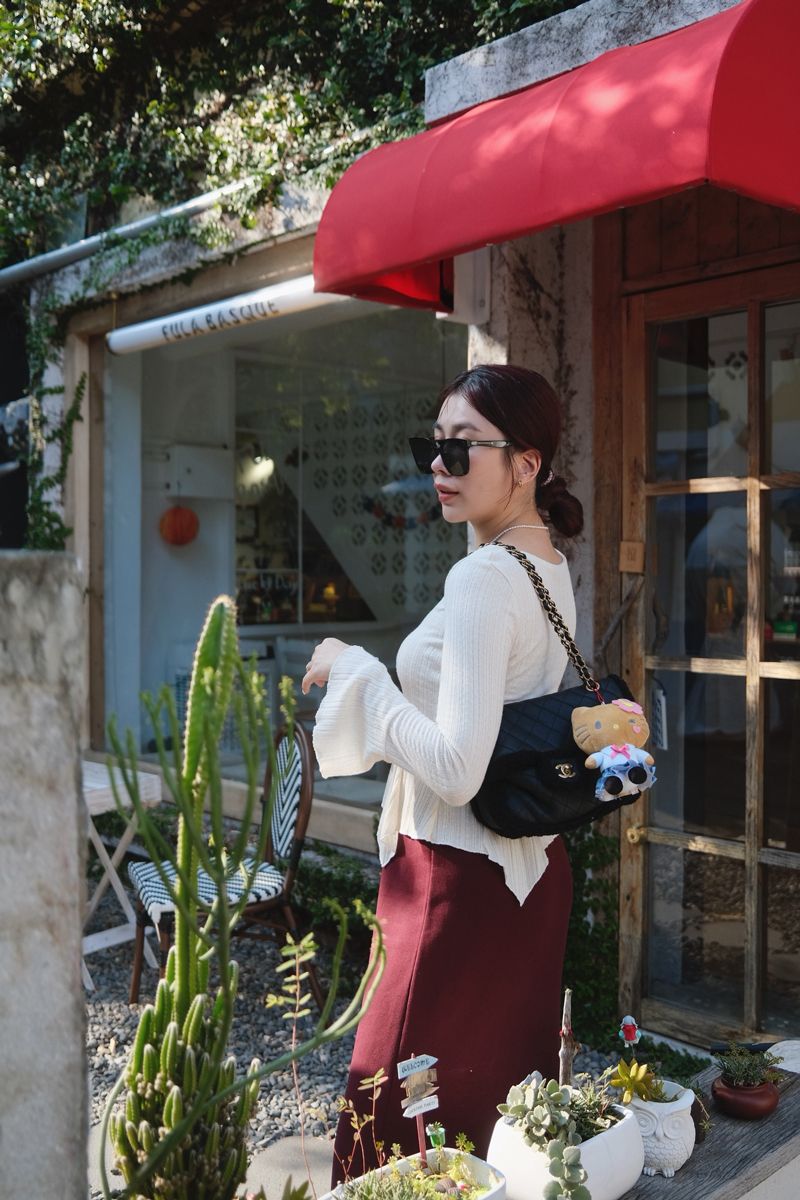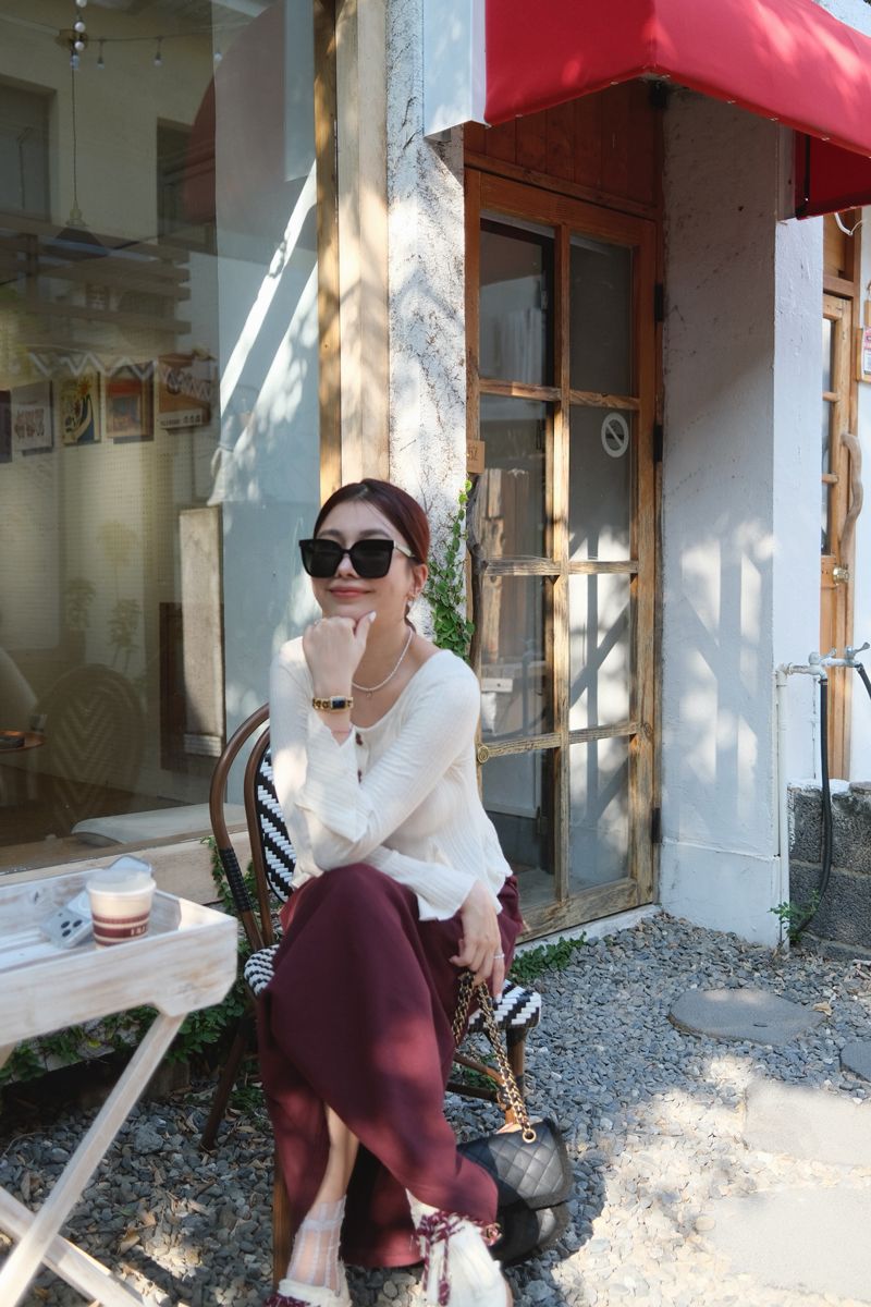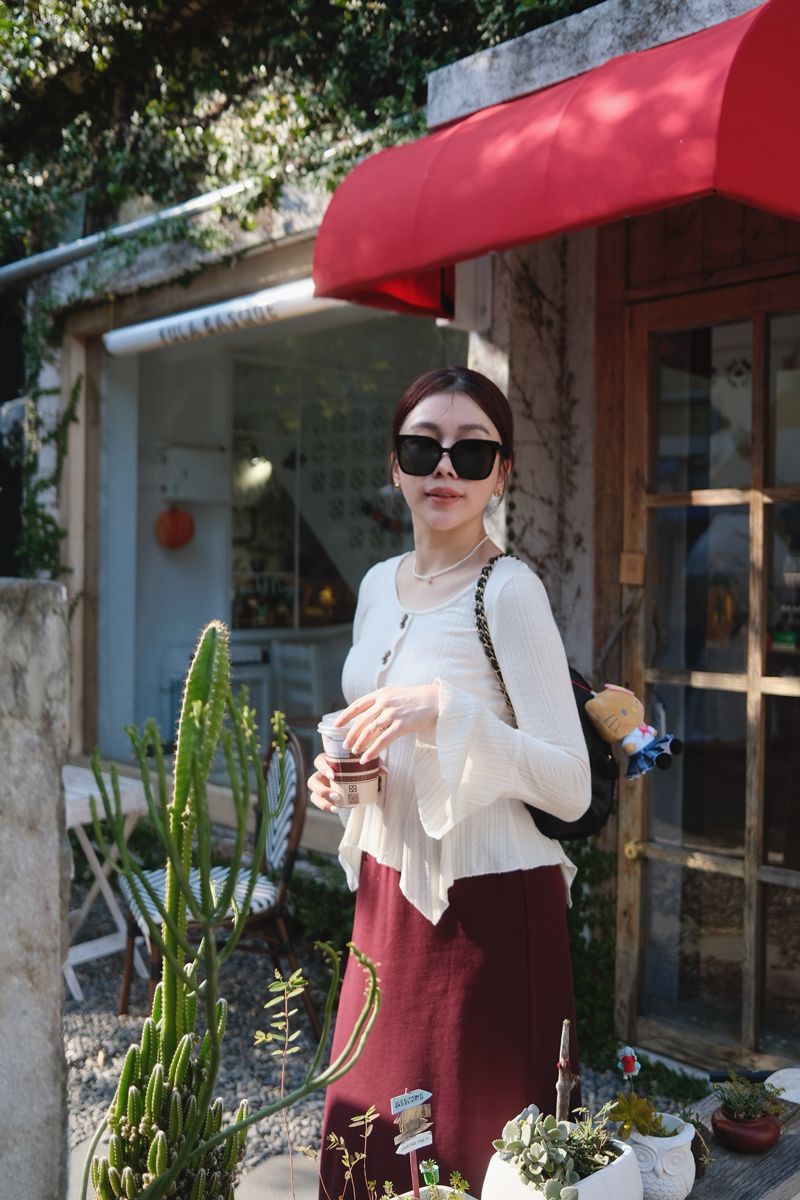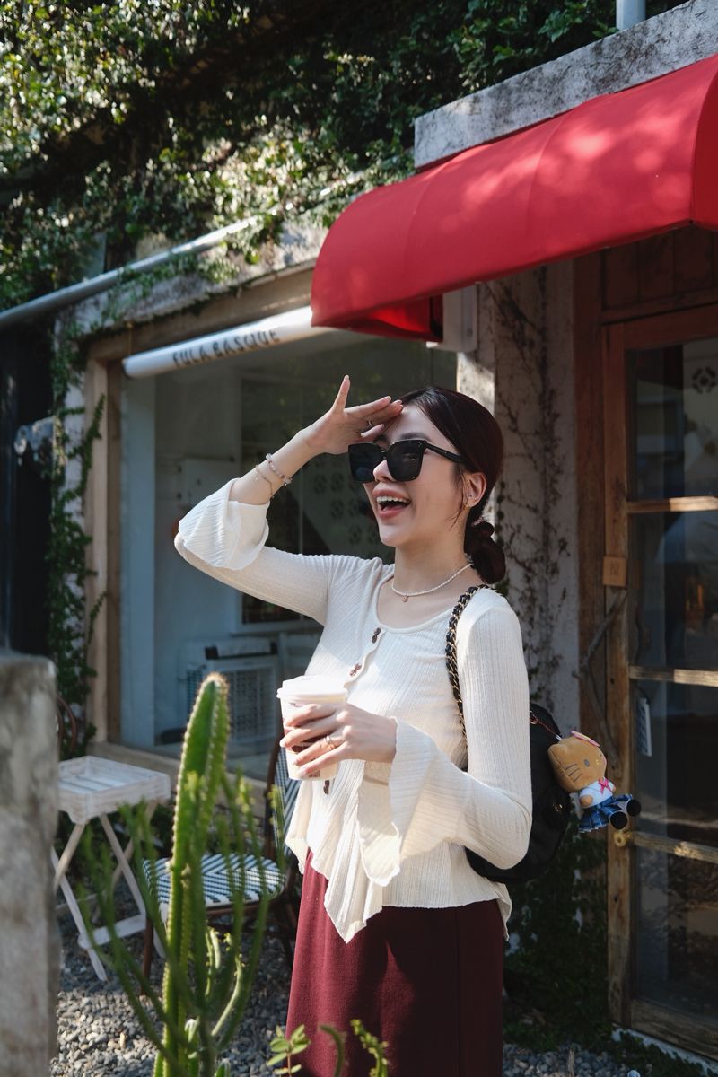 溫柔小法式收腰奶油針織上衣(假釦)
