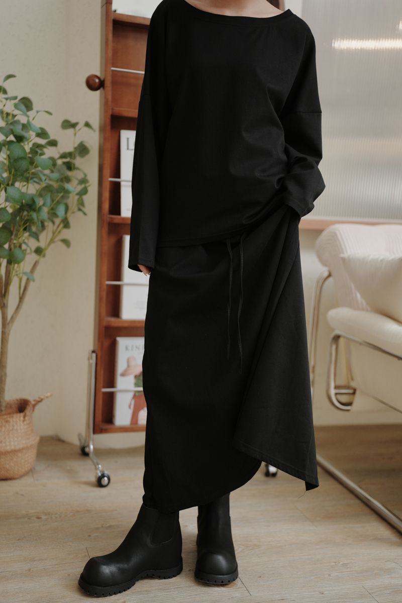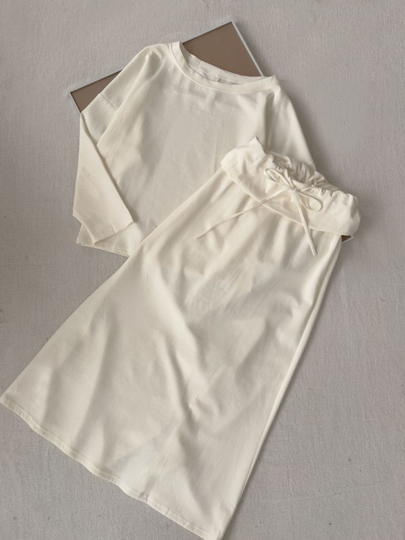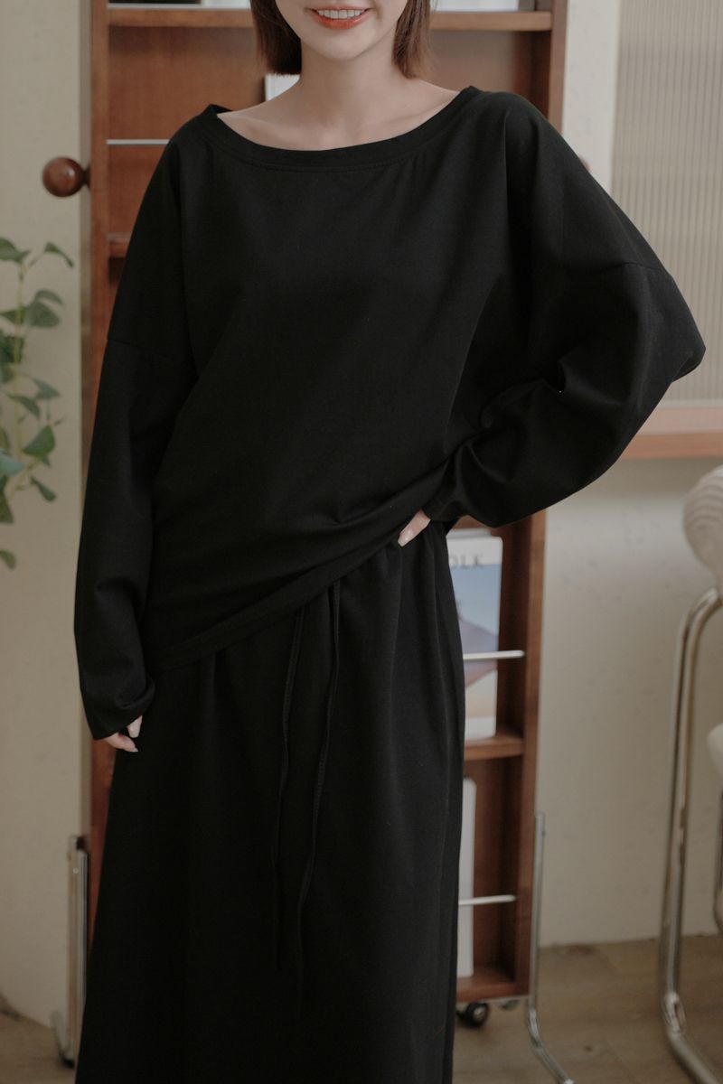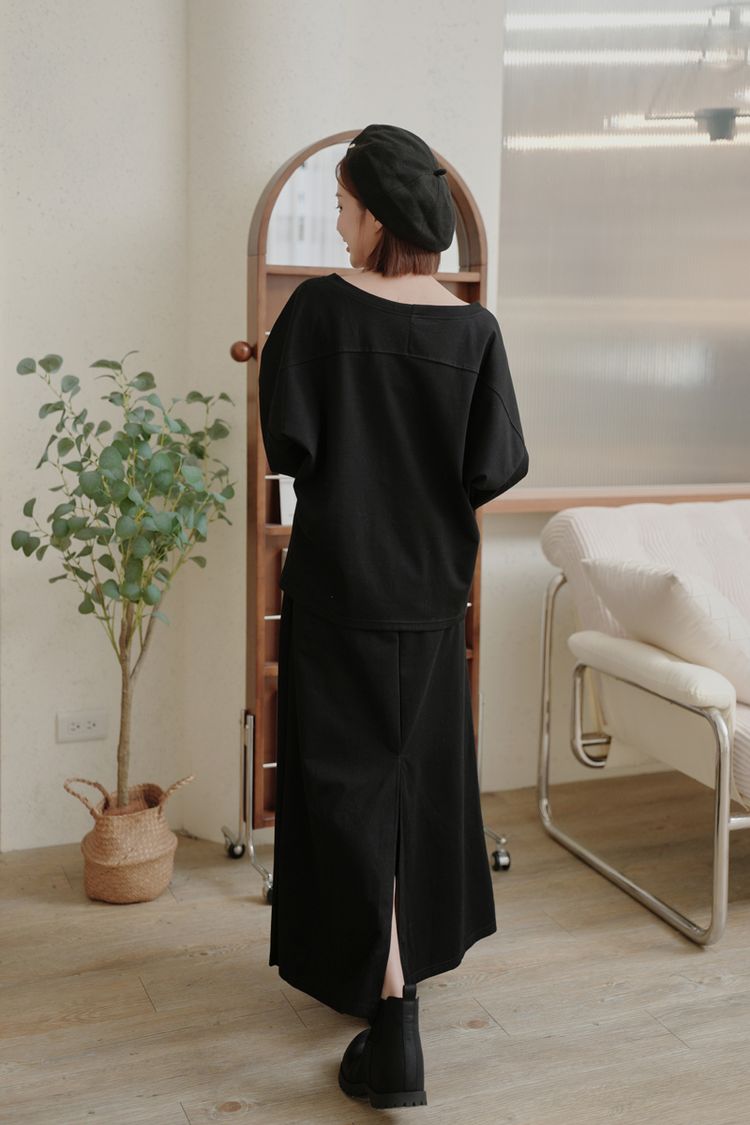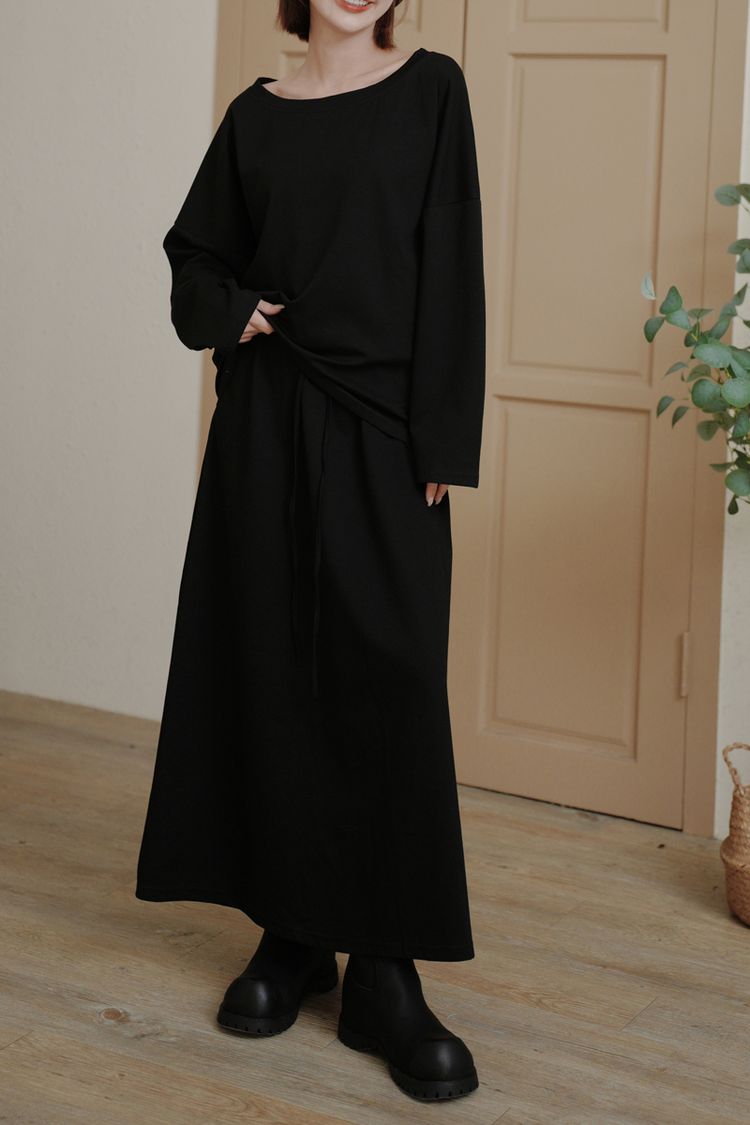 小慵懶斜(落)肩套裝(上衣+抽繩中長裙)