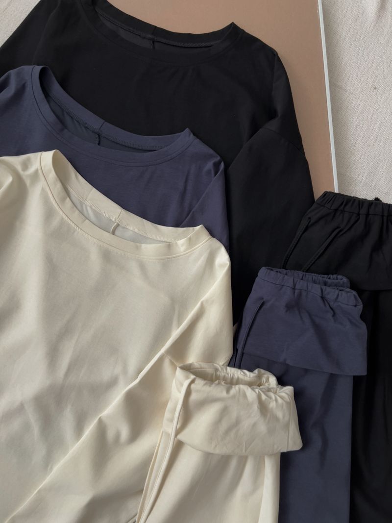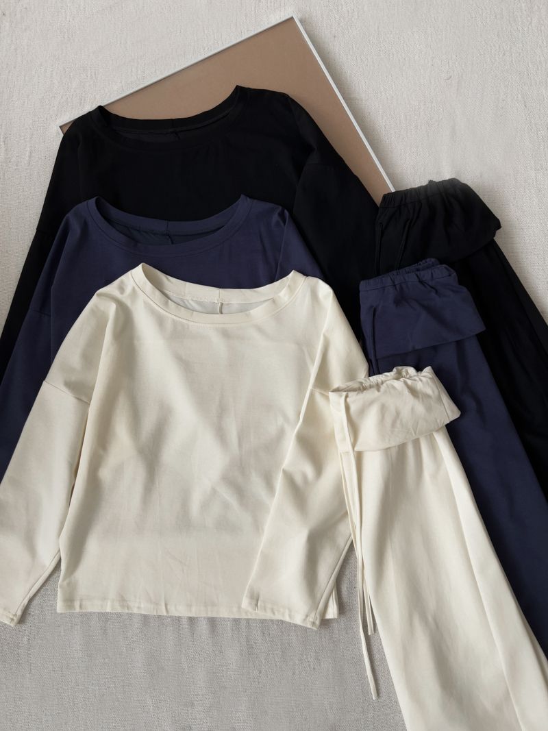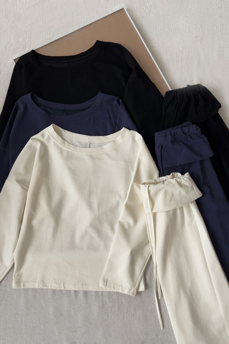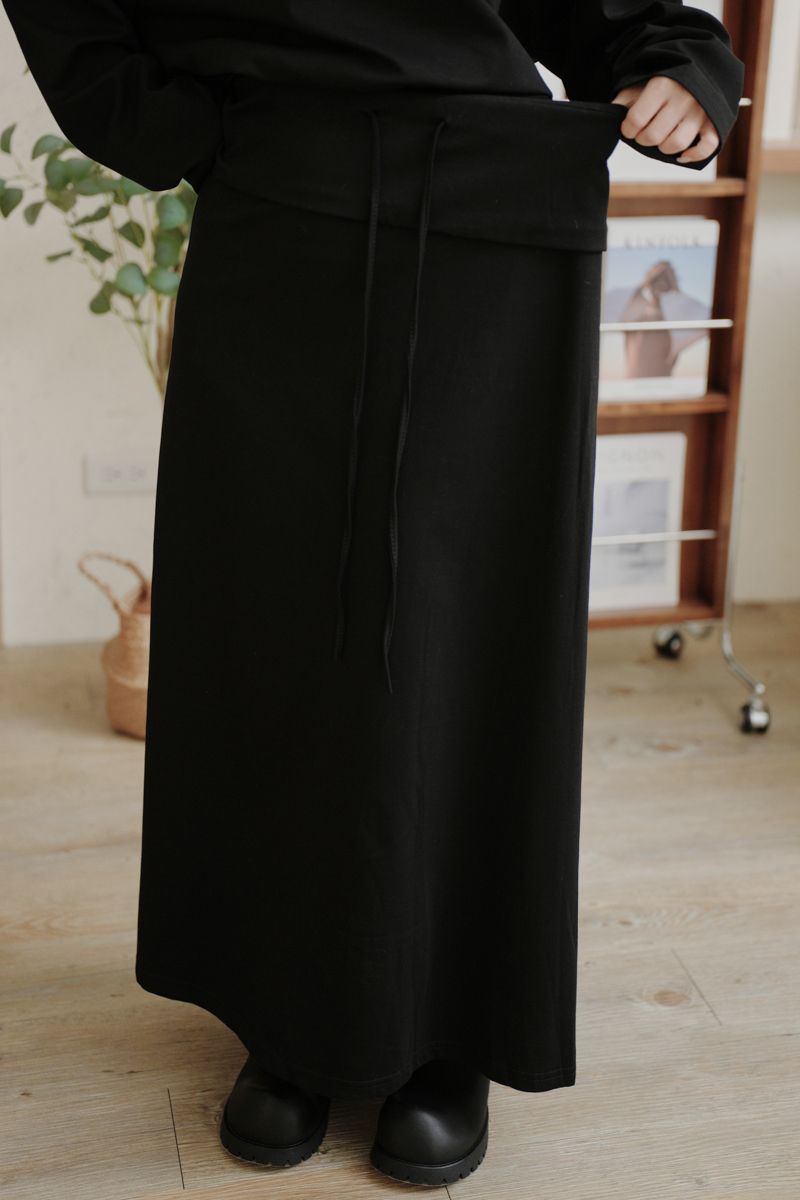 小慵懶斜(落)肩套裝(上衣+抽繩中長裙)