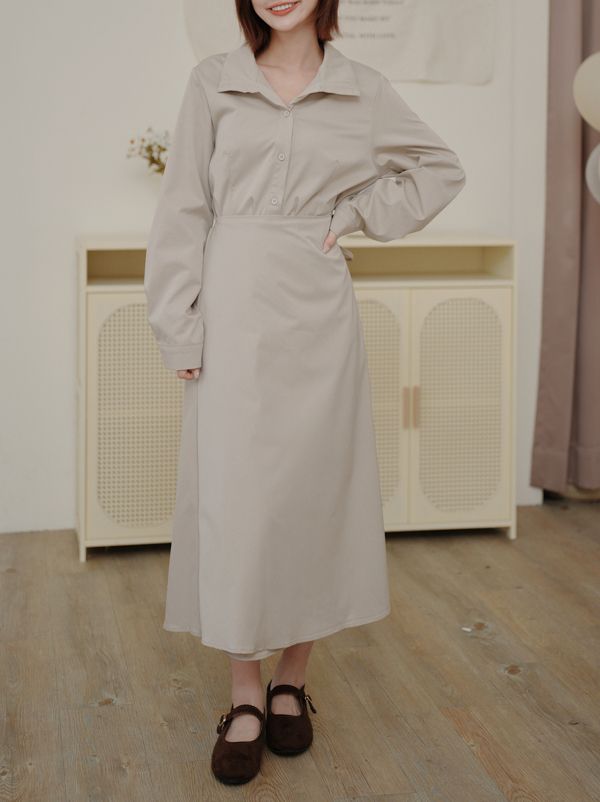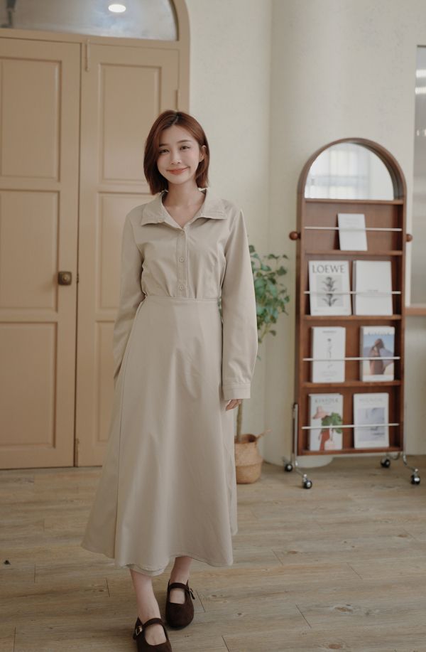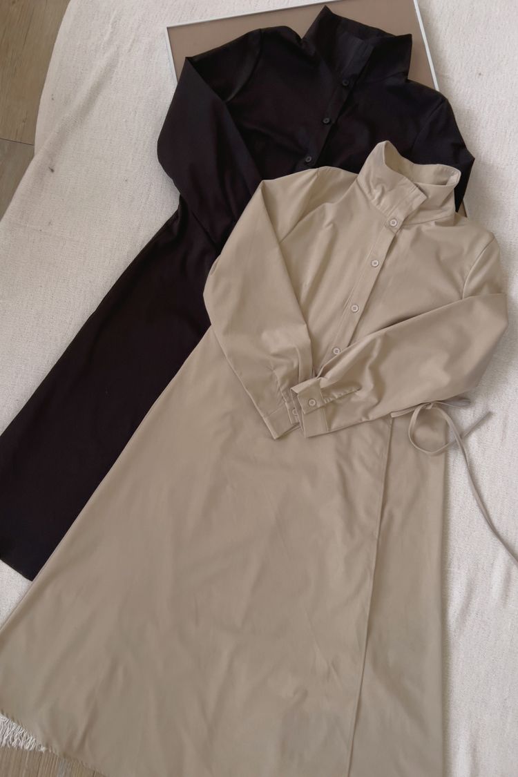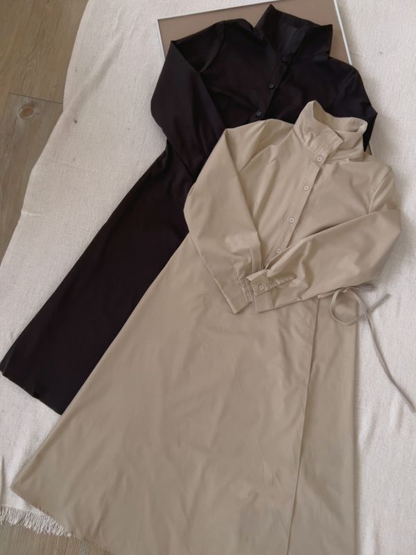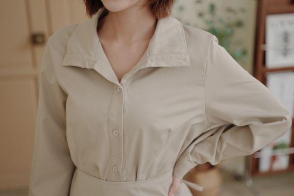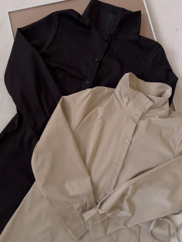 時髦立領顯瘦連身長洋(有腰封)