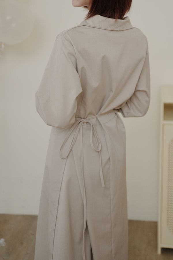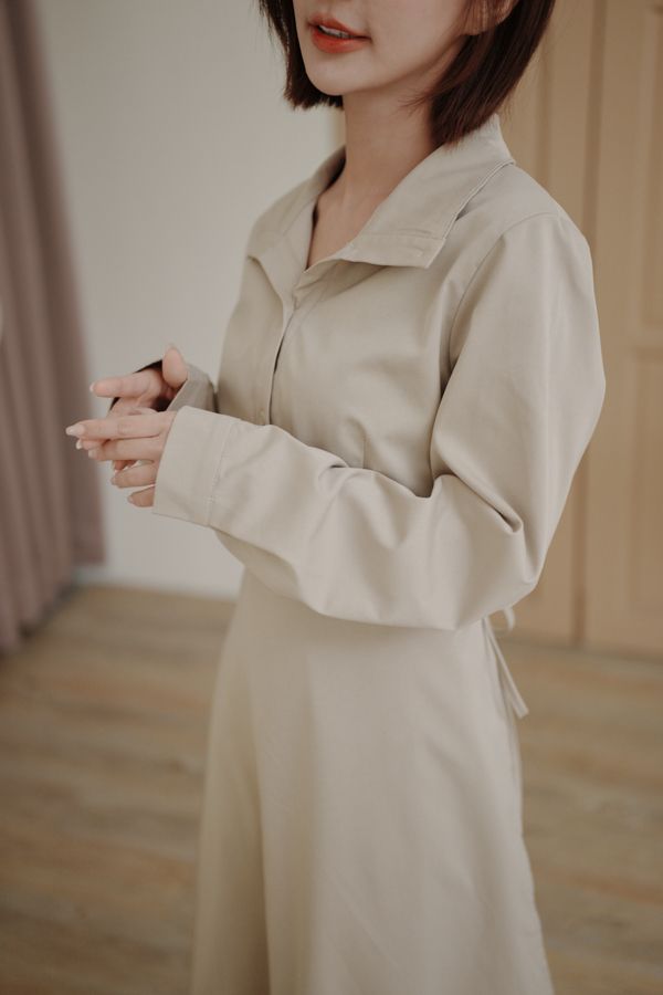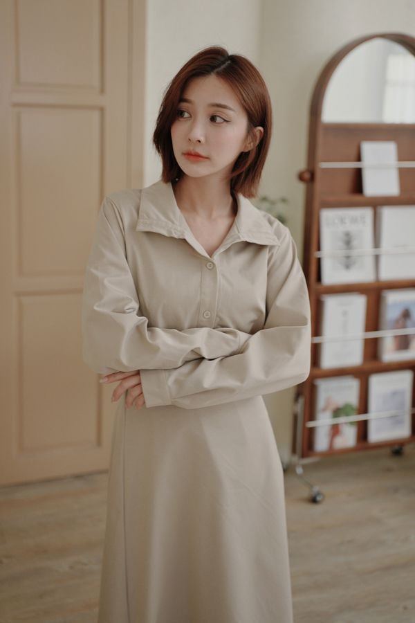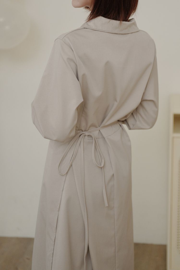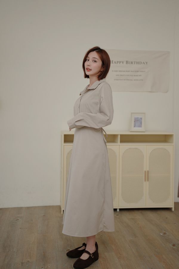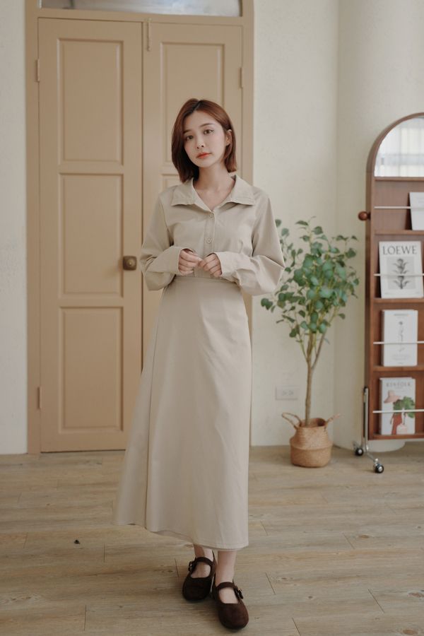 時髦立領顯瘦連身長洋(有腰封)