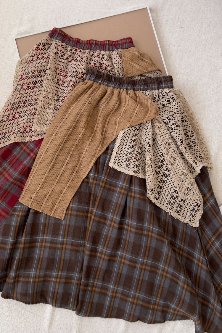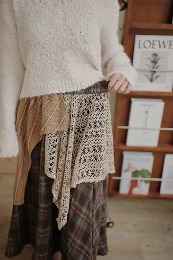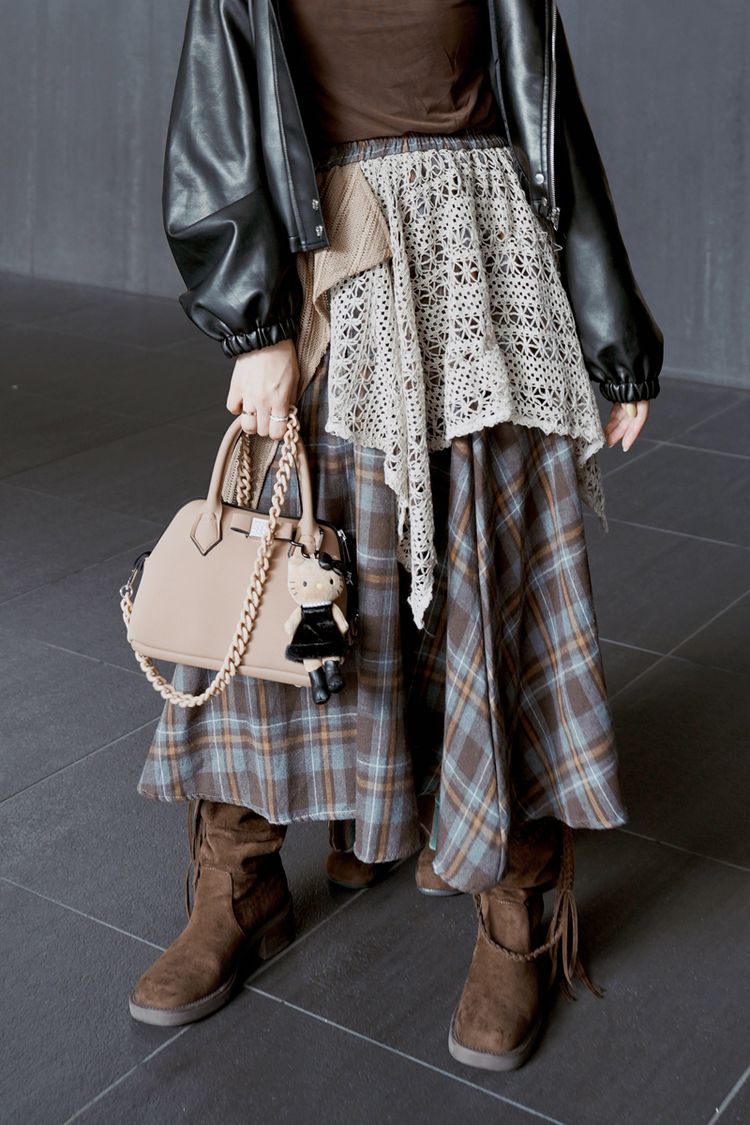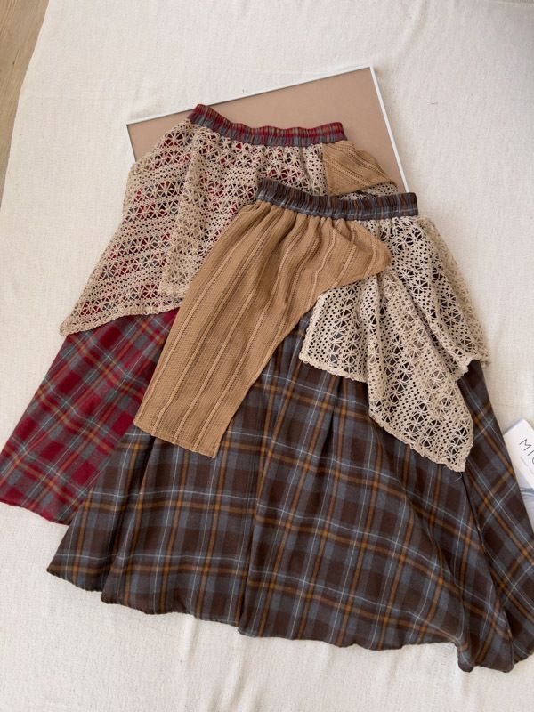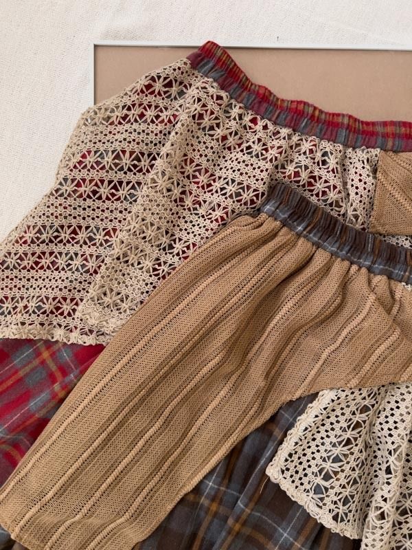 【日本】復古蕾絲拼接不規則A字傘裙