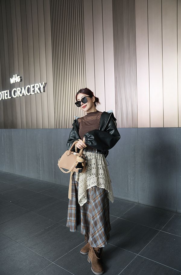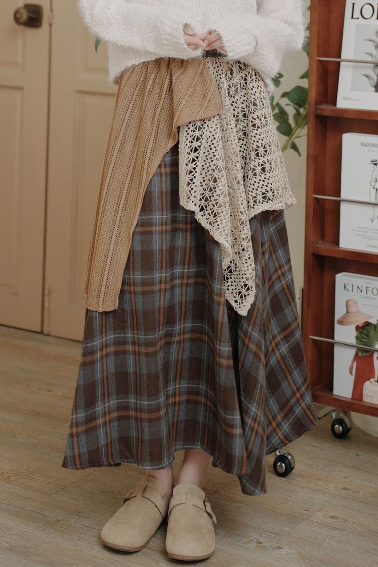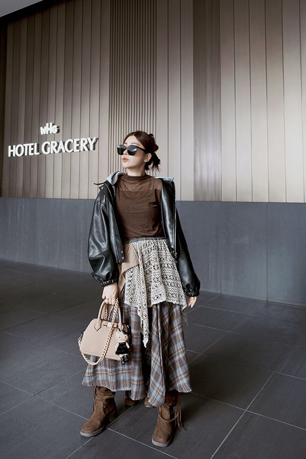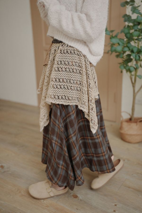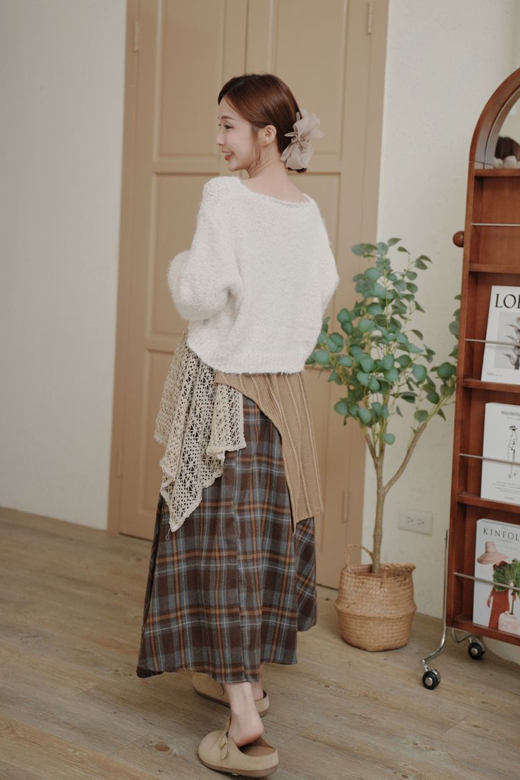【日本】復古蕾絲拼接不規則A字傘裙