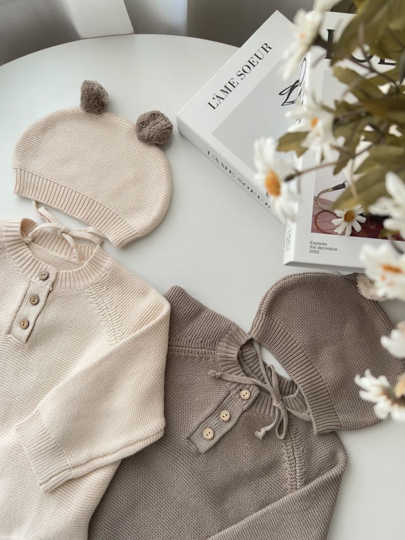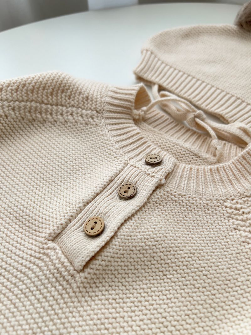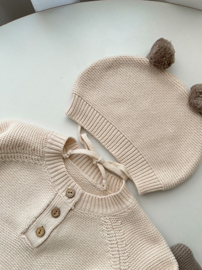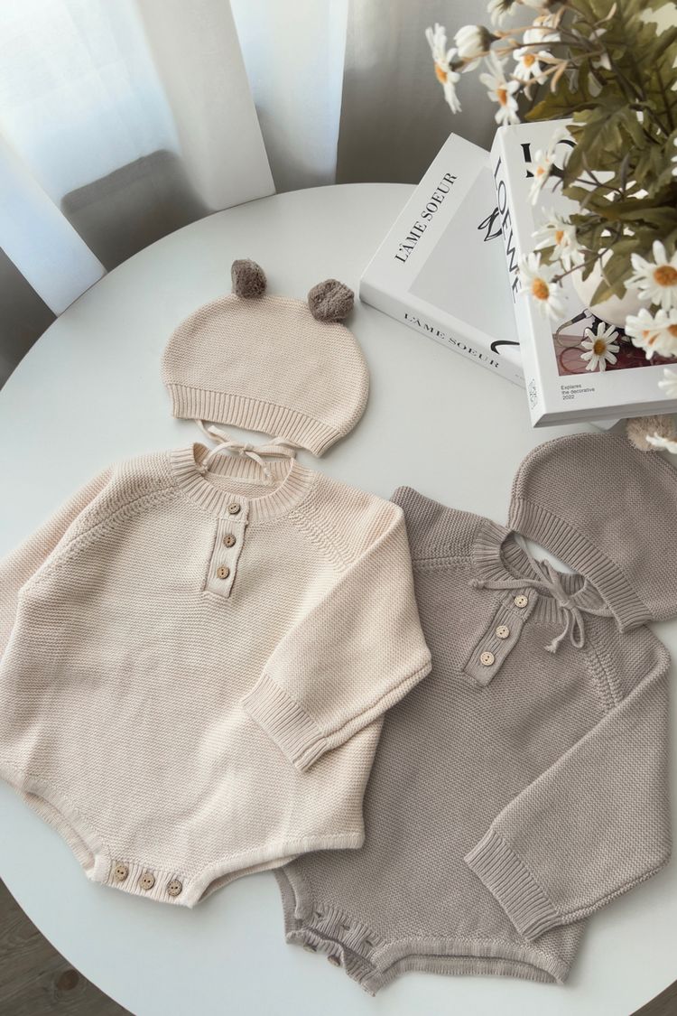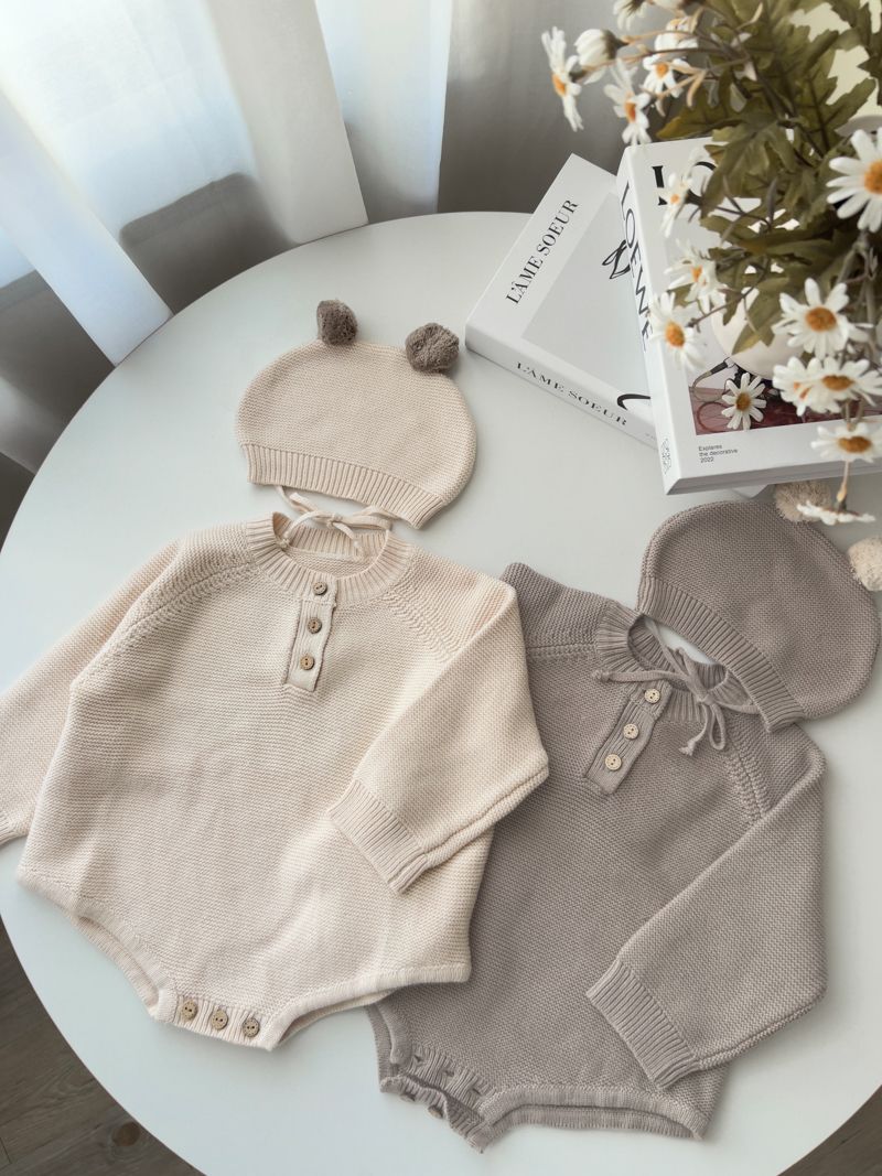 【日本】純色針織包屁衣(附小帽)
