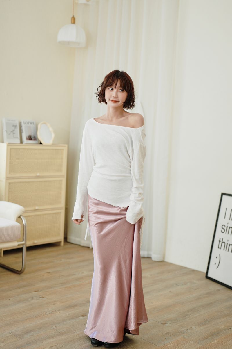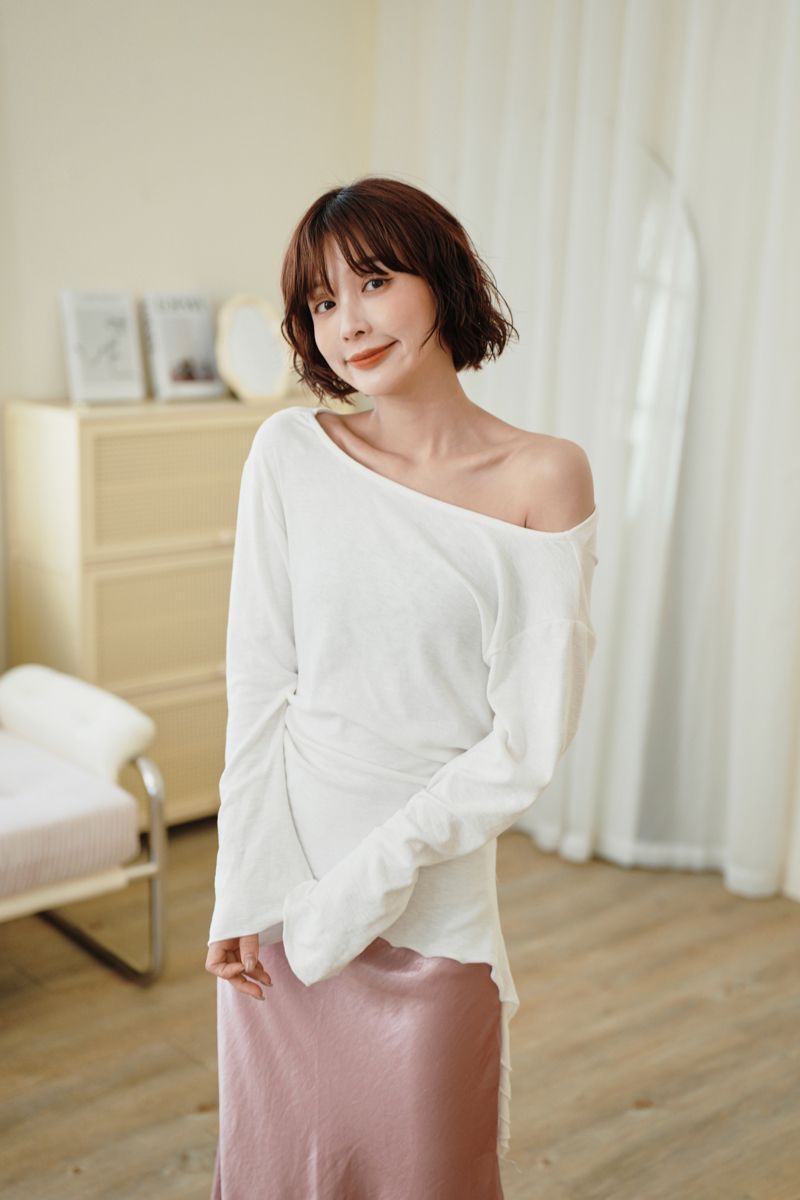 【東京旅拍】韓系顯瘦抓皺綁帶上衣(可拉平肩)