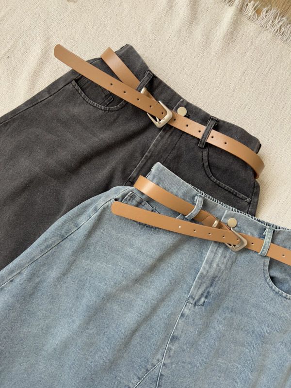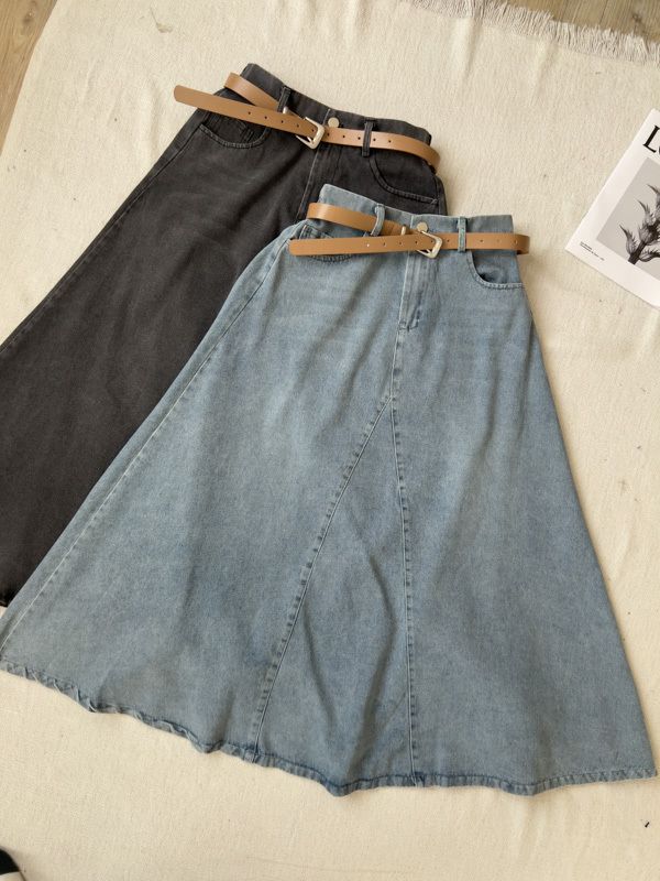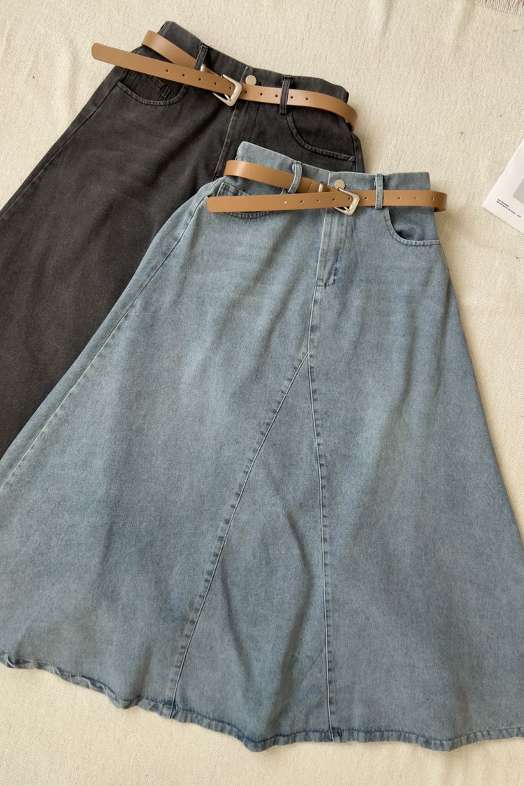 【日本】超修飾A字牛仔長裙(附皮帶)