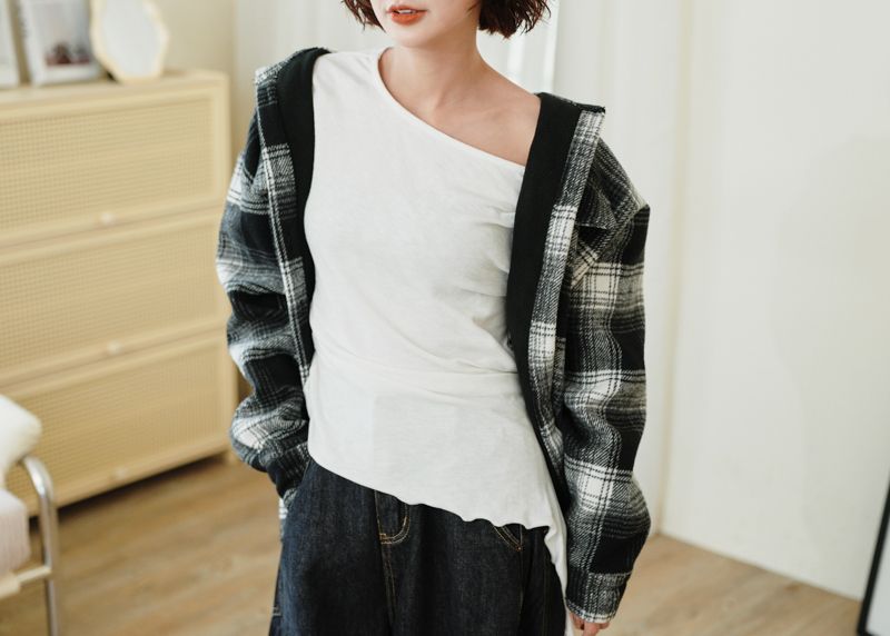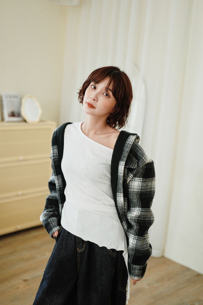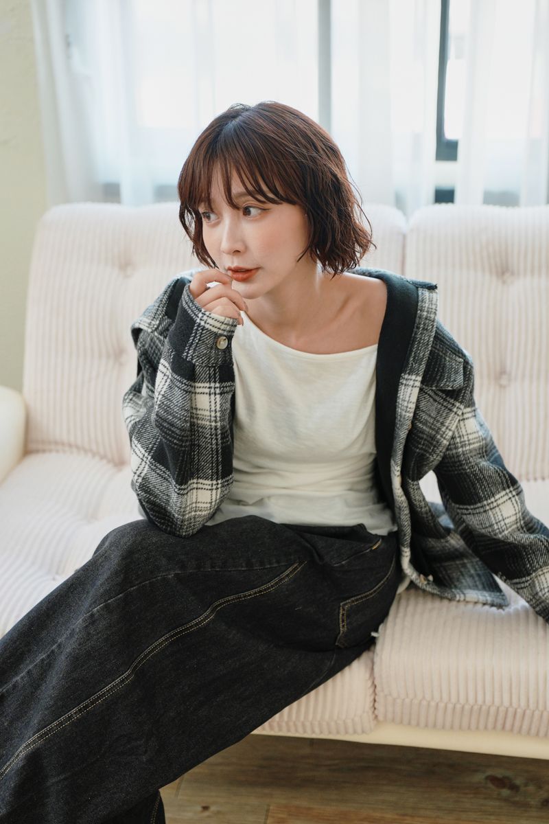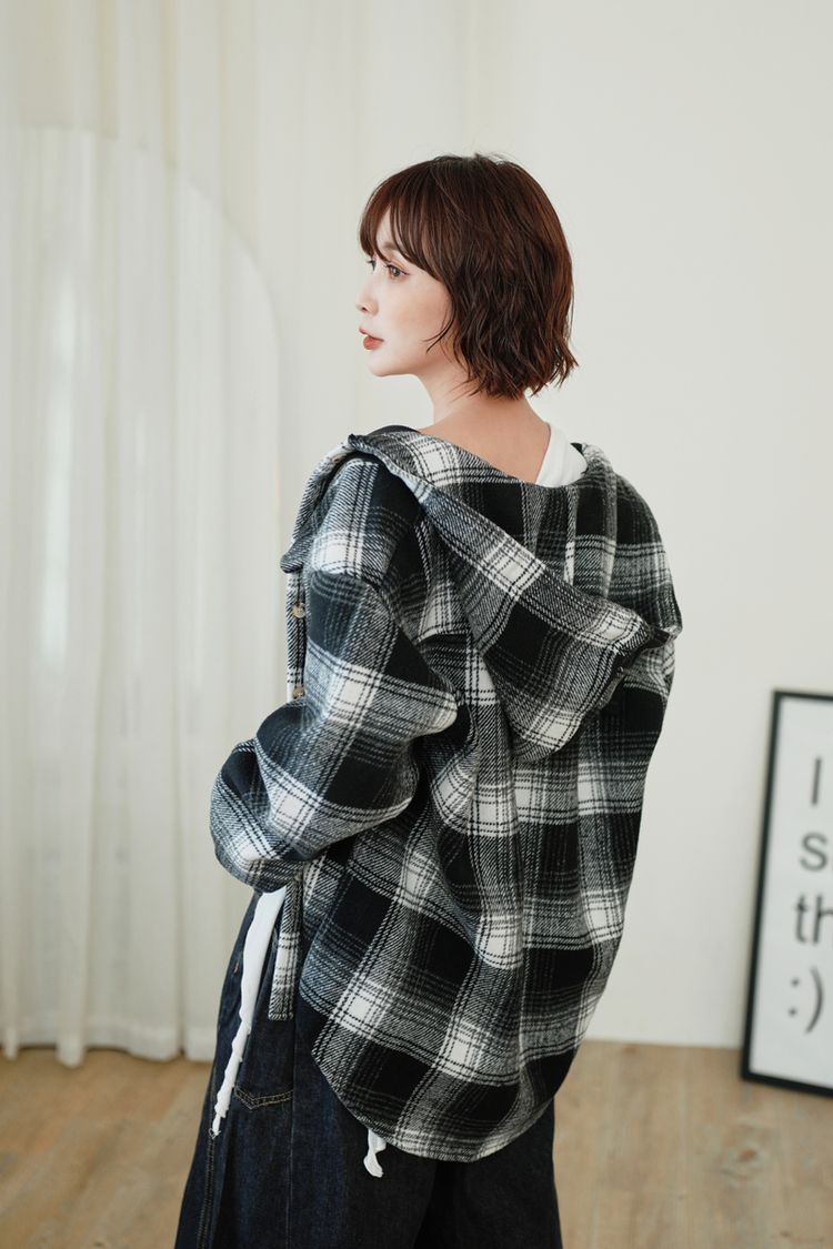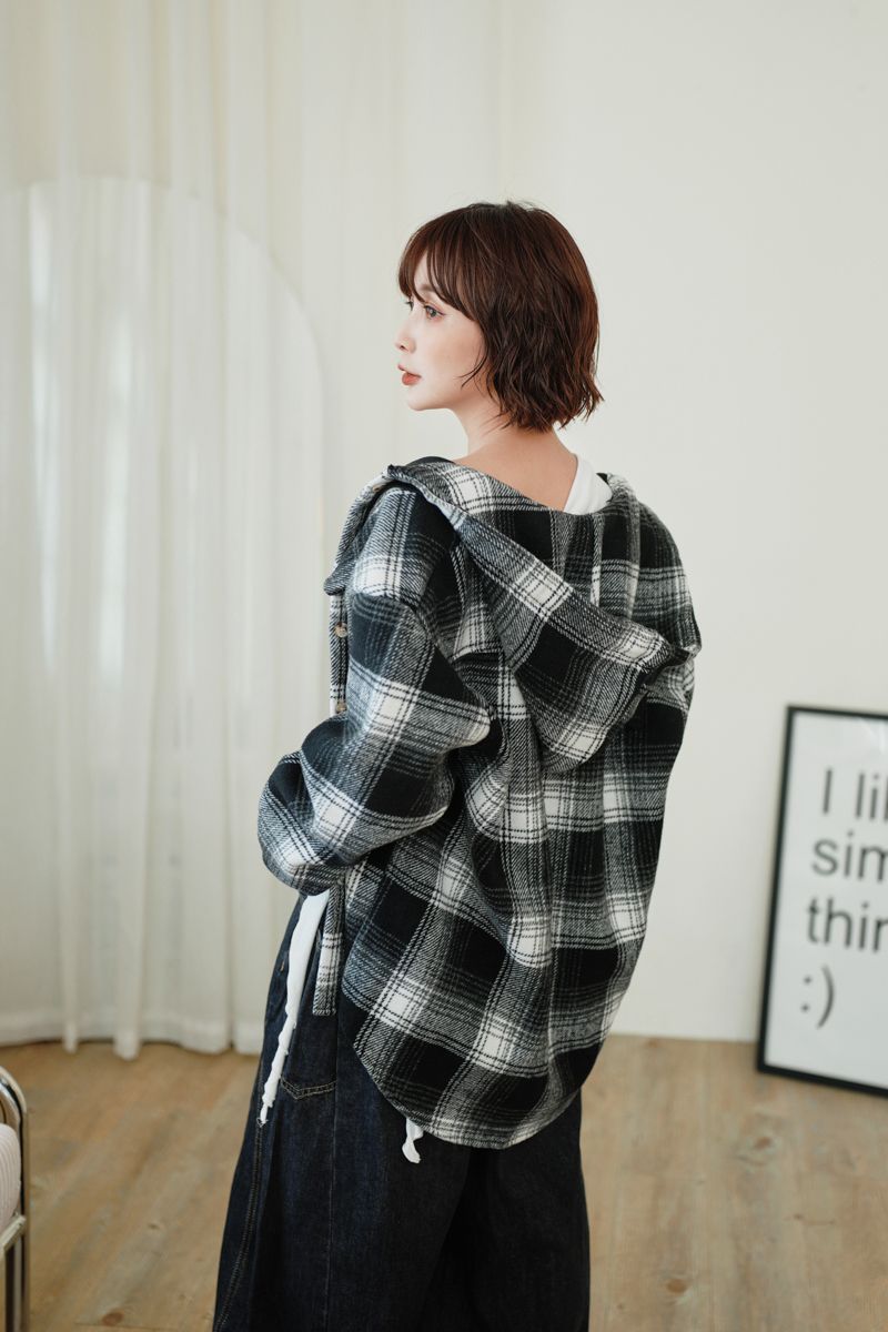 【東京旅拍】連帽內加絨毛呢格紋外套