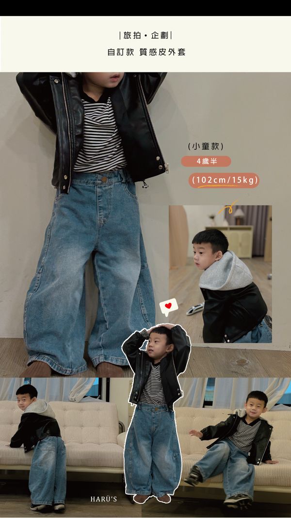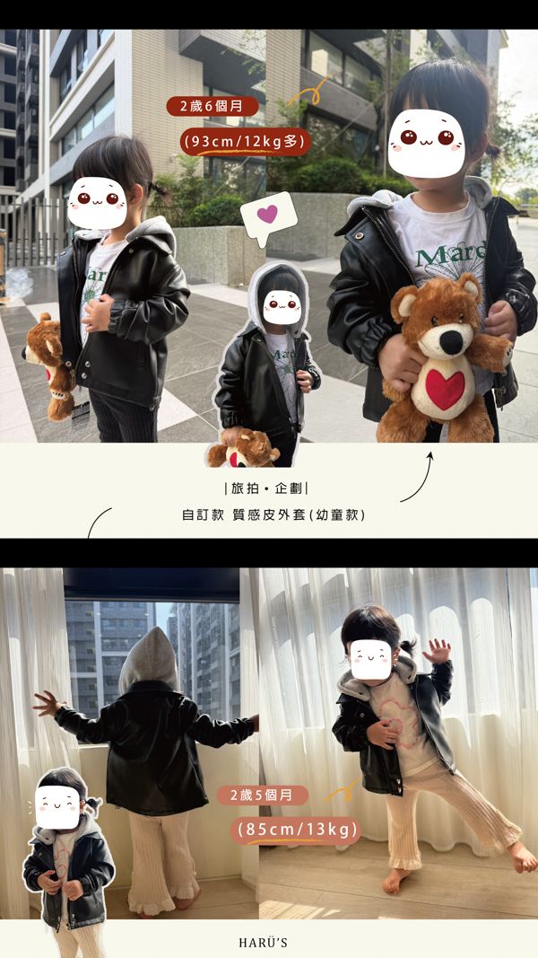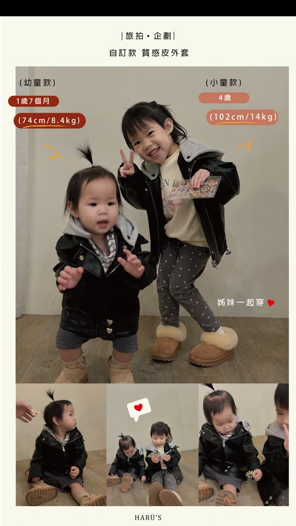 【東京旅拍】H自訂-質感愛心釦翻領皮外套(小童大童/帽子可拆)