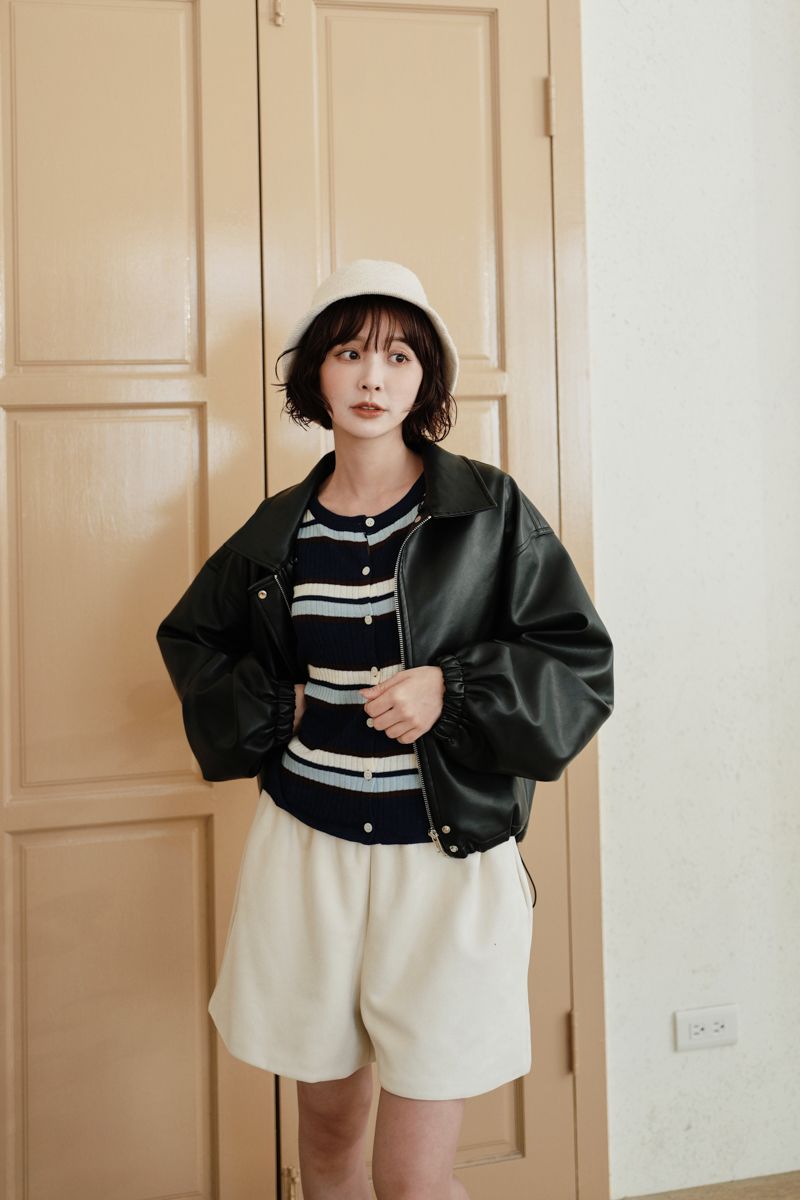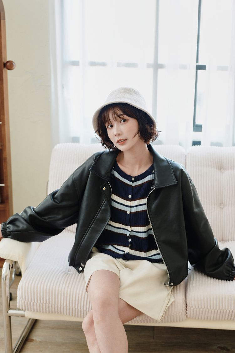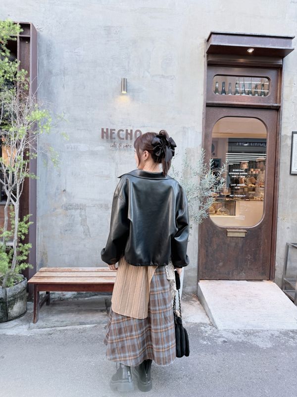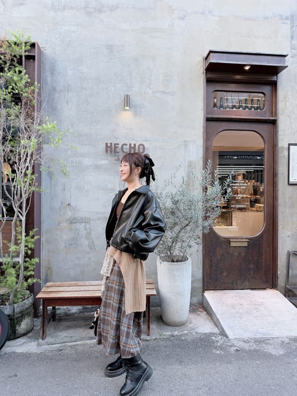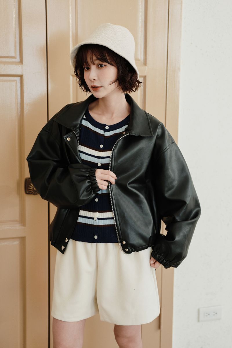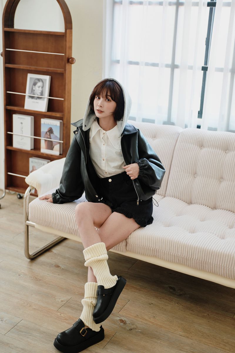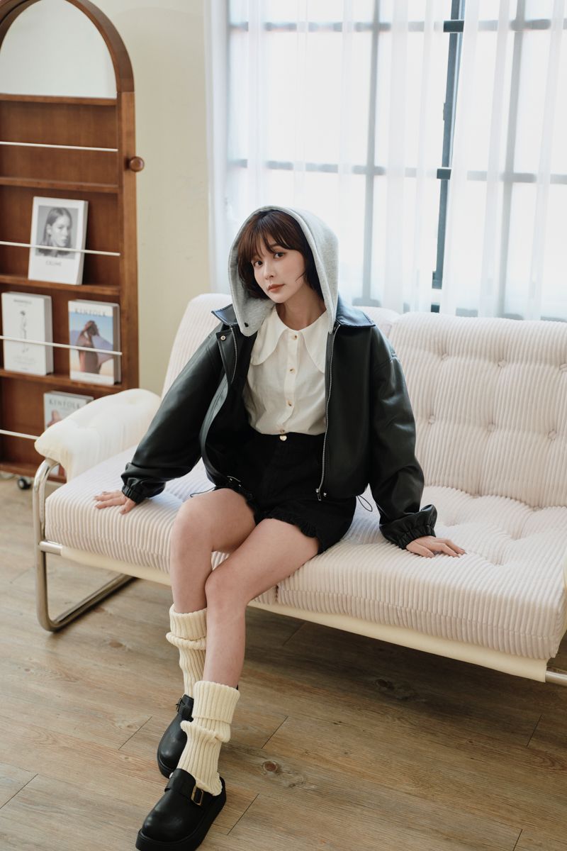 【東京旅拍】H自訂-質感愛心釦翻領皮外套(女版/帽子可拆)