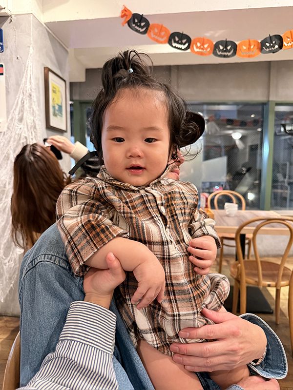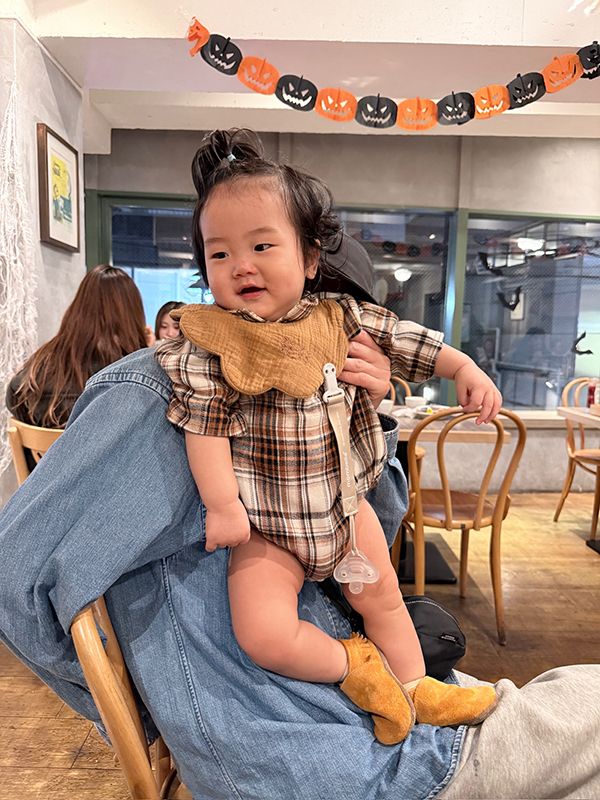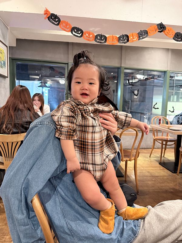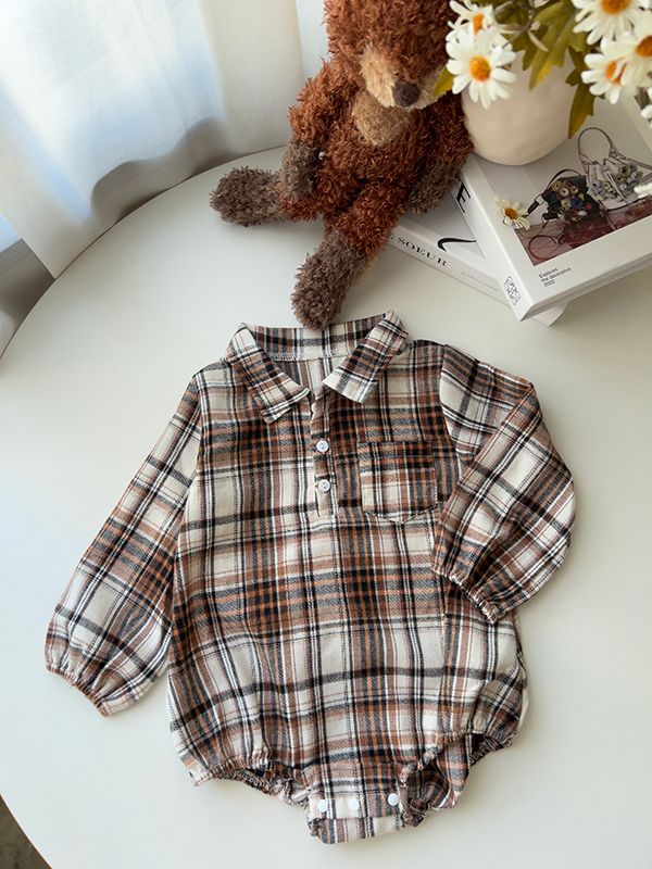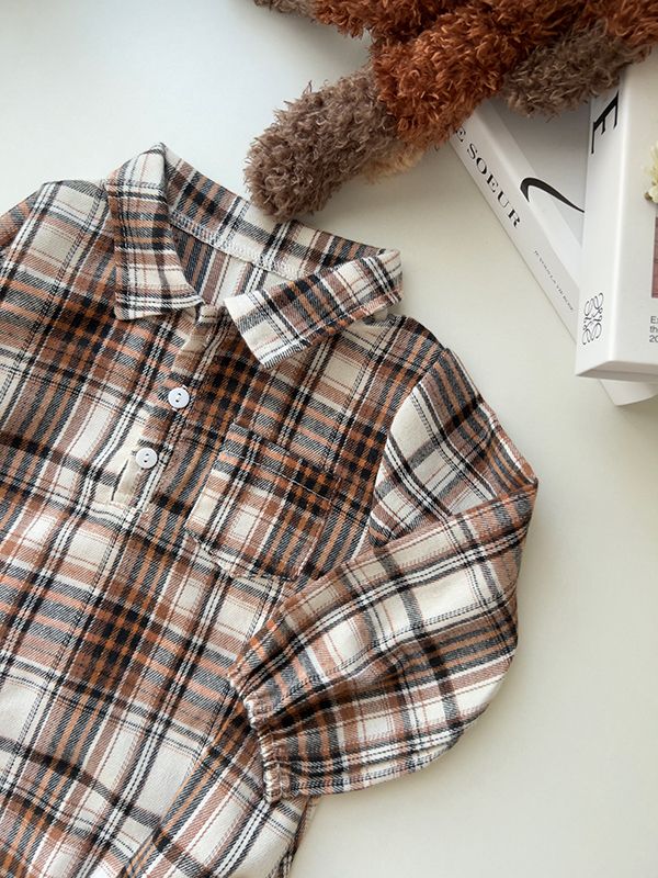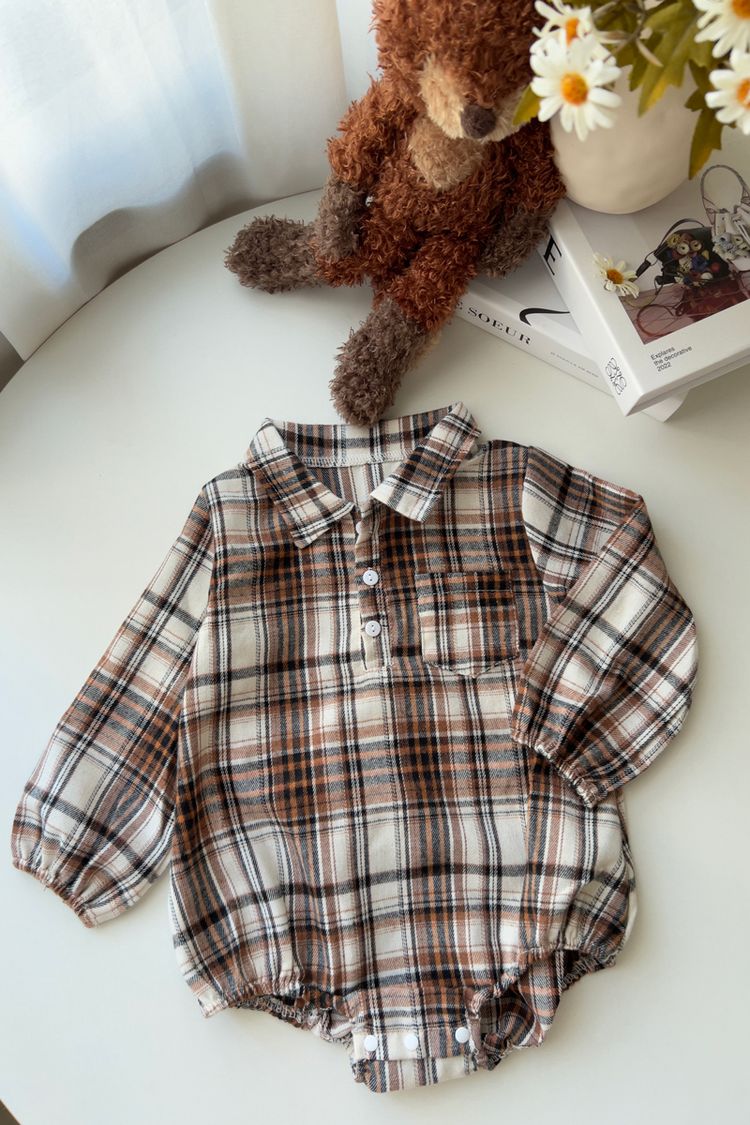 【日本】花格紋襯衫領包屁衣