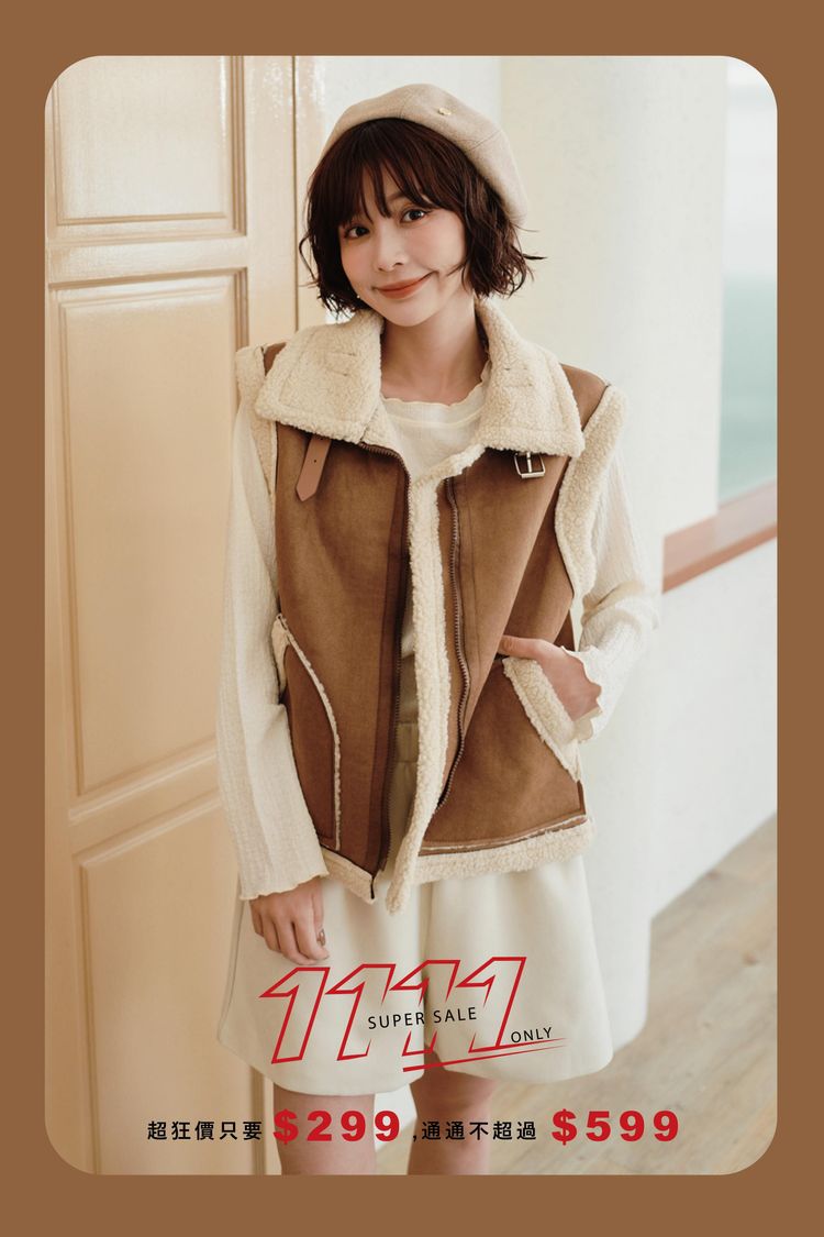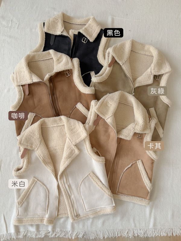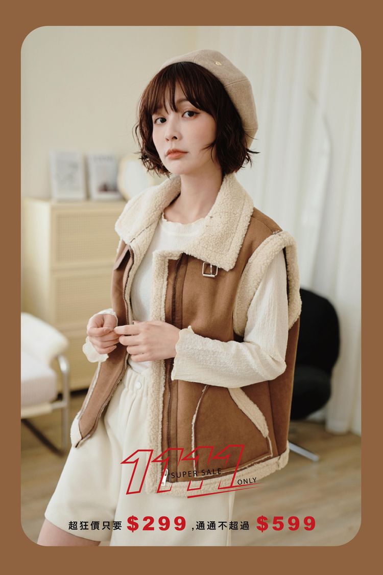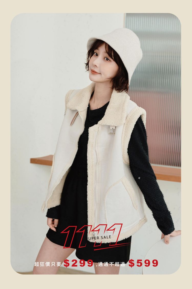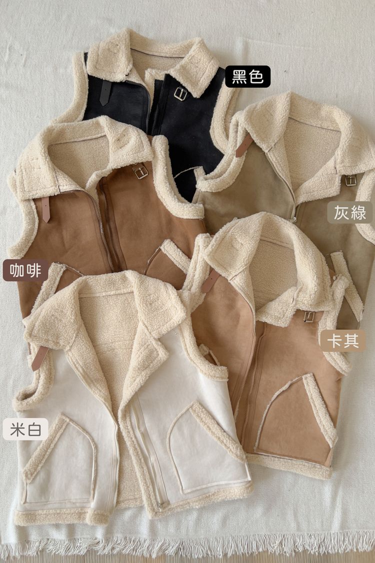 雙11ო羊羔絨麂皮拉鍊背心(可立領)