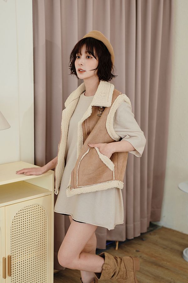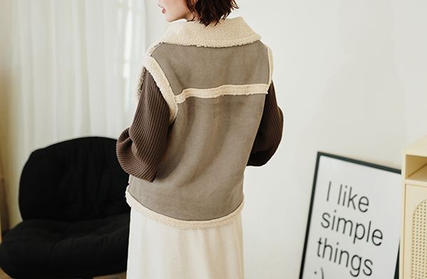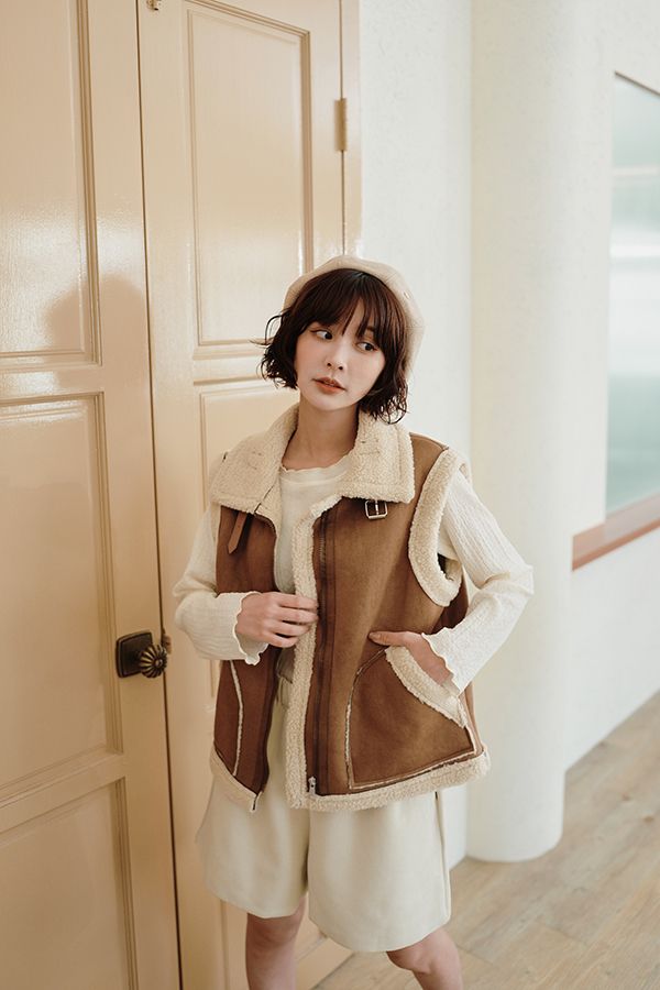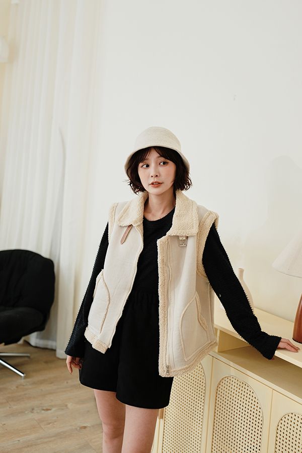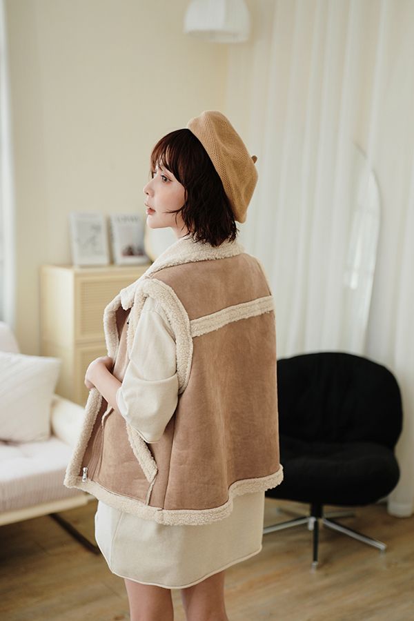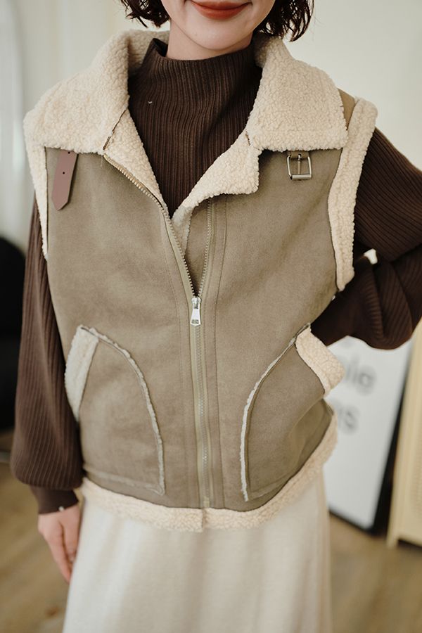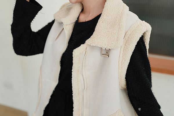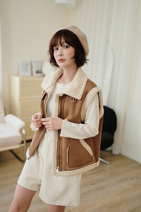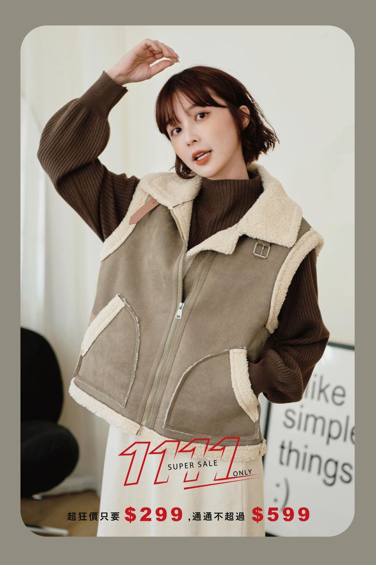雙11ო羊羔絨麂皮拉鍊背心(可立領)