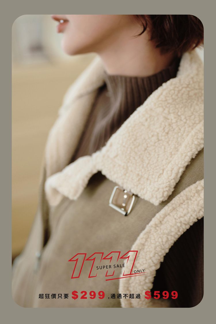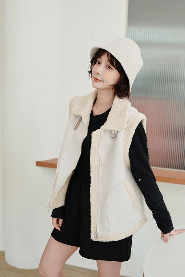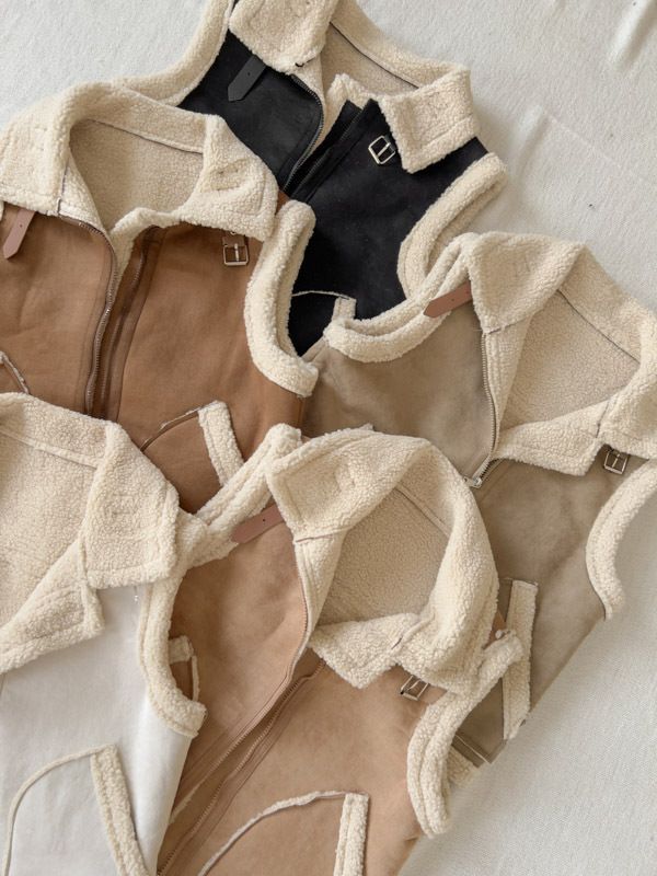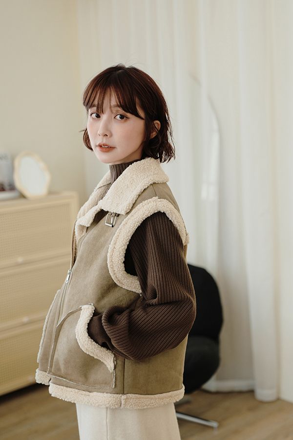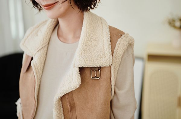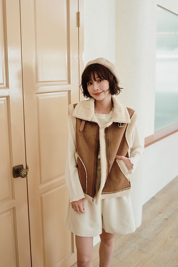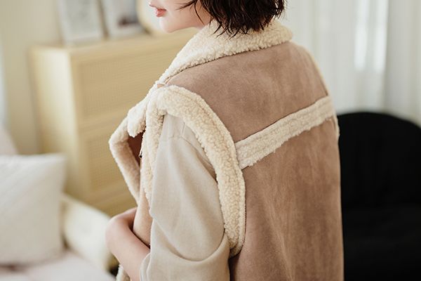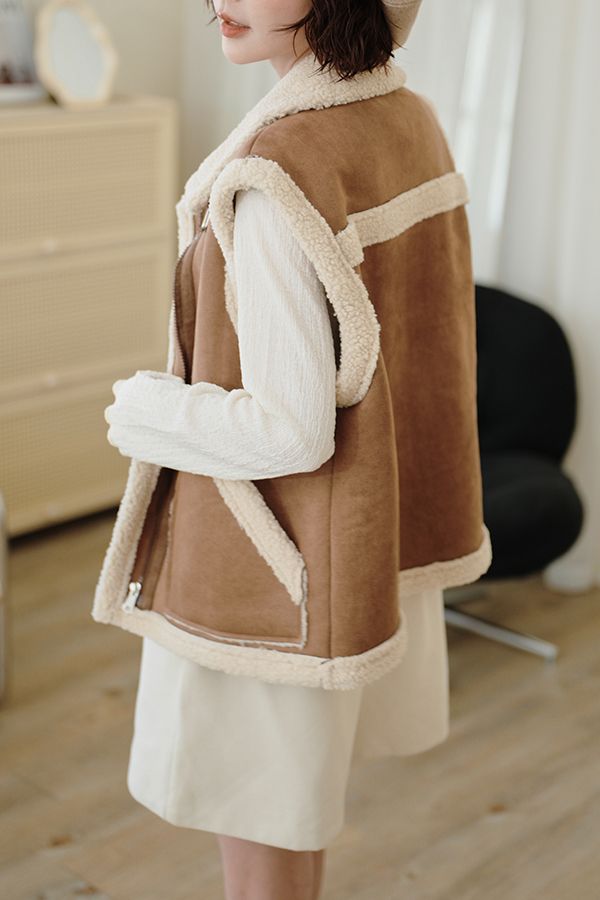 雙11ო羊羔絨麂皮拉鍊背心(可立領)