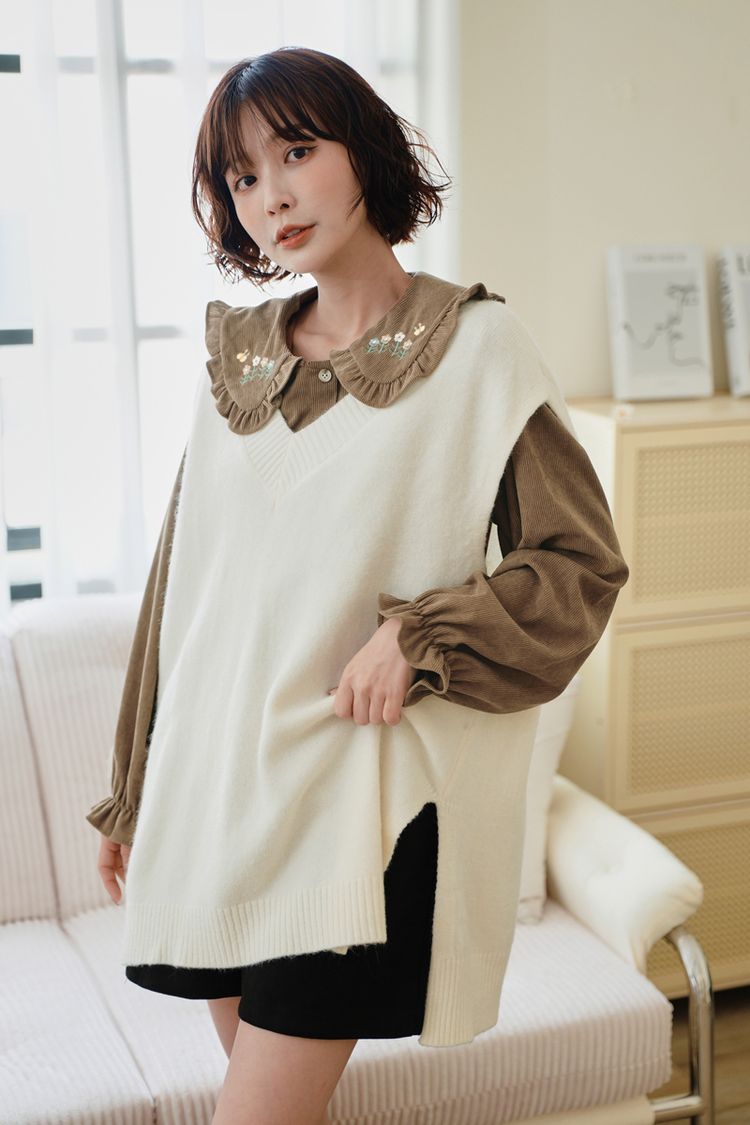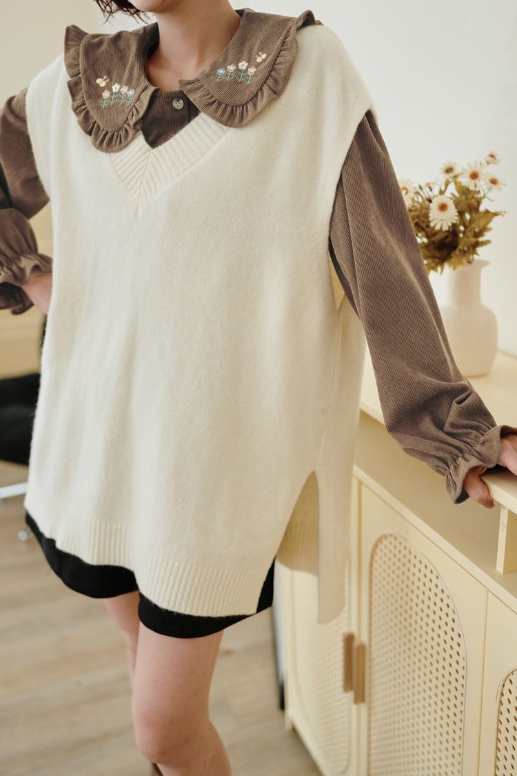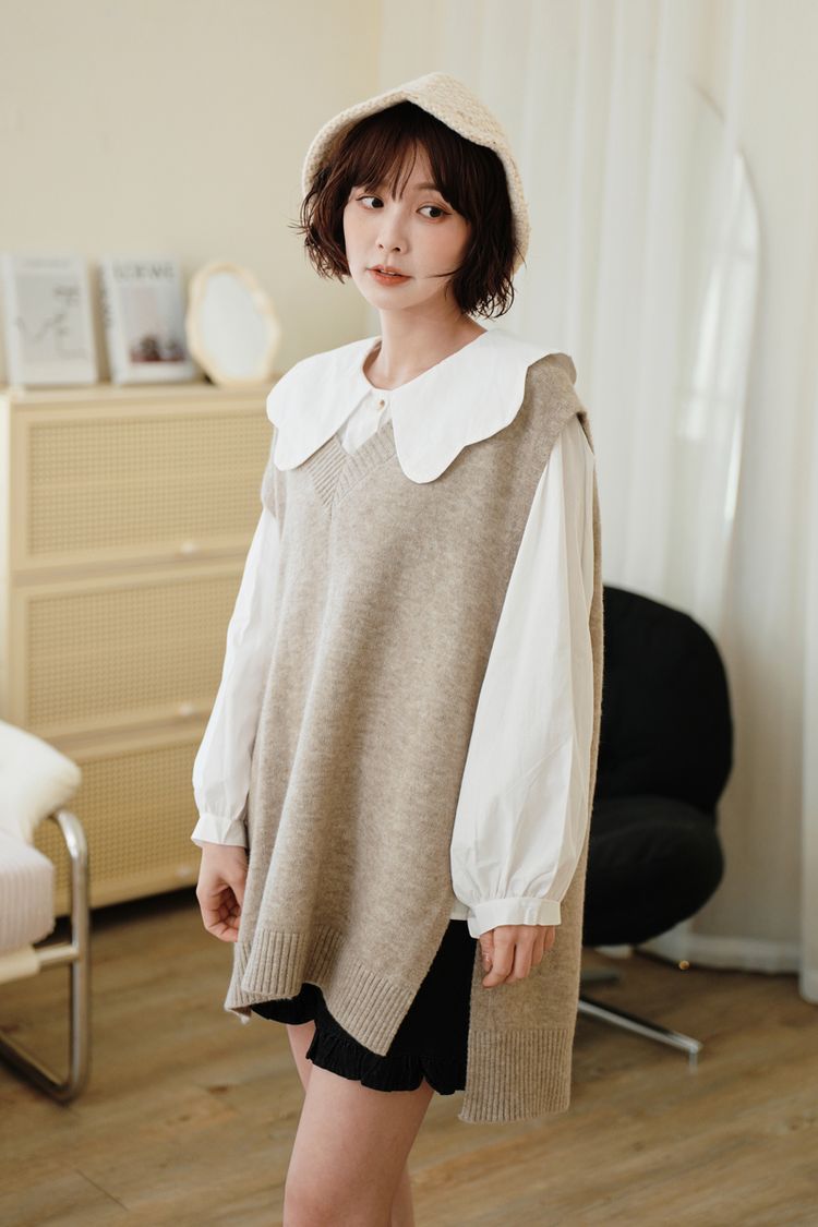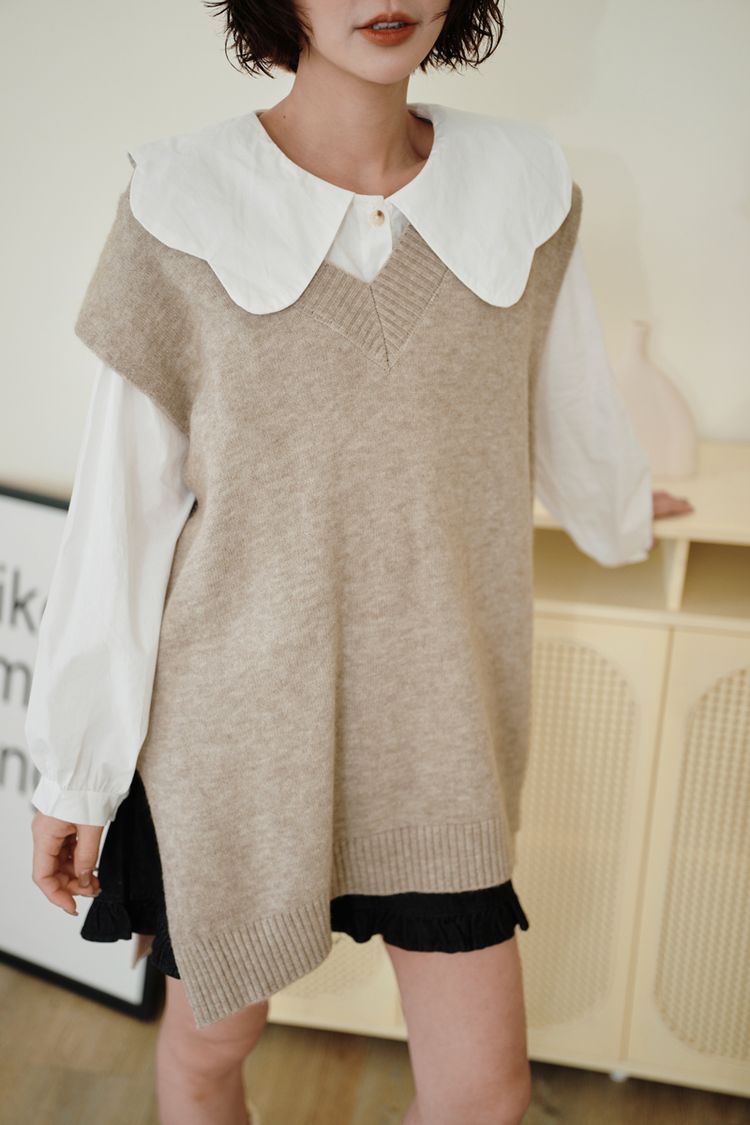 寬版V領針織背心(前短後長)