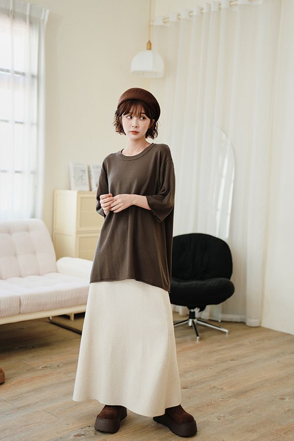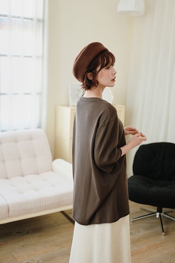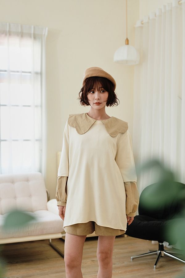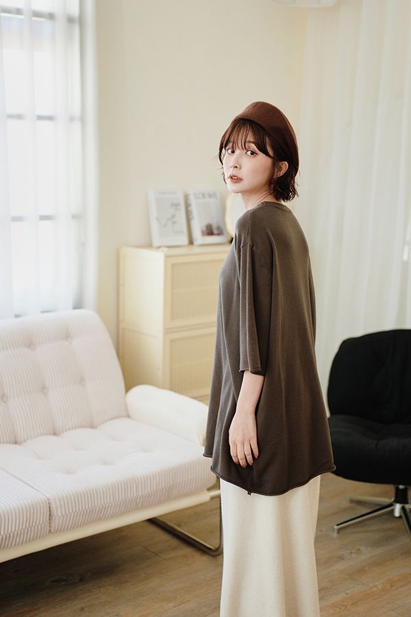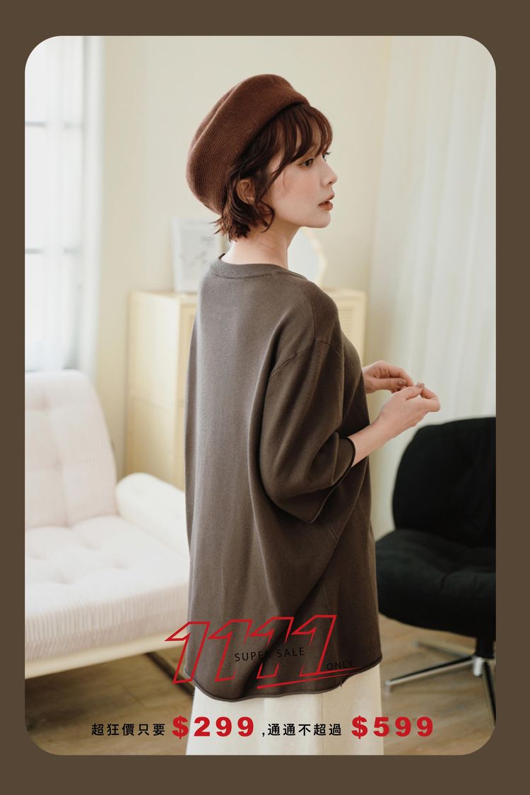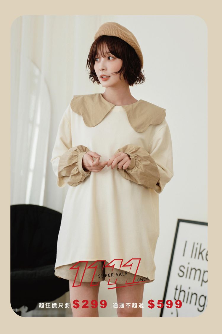 雙11ო純色捲邊包芯紗長版上衣/短洋(XL可穿)