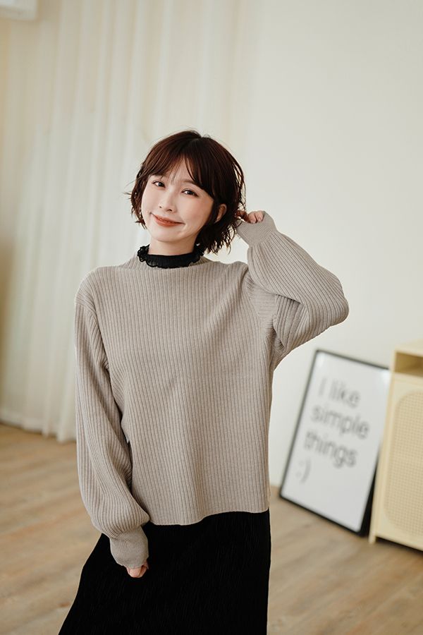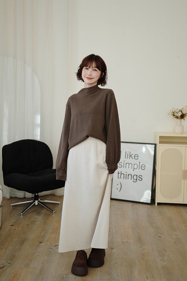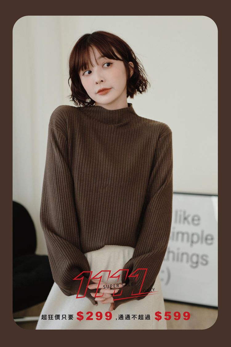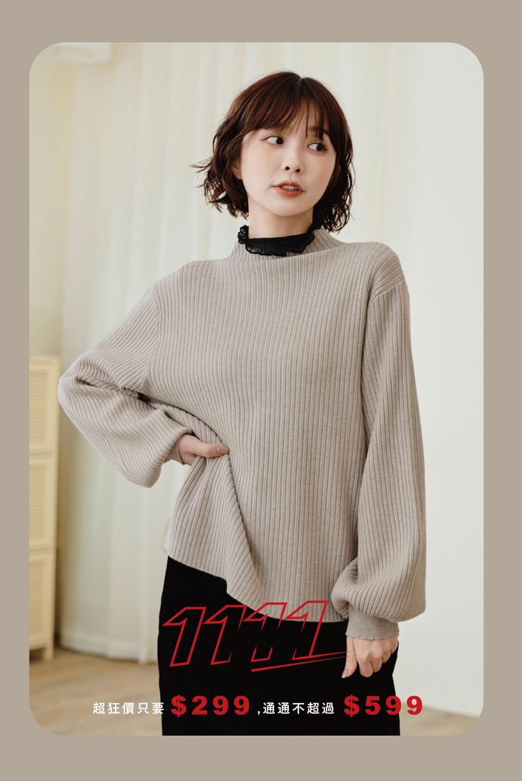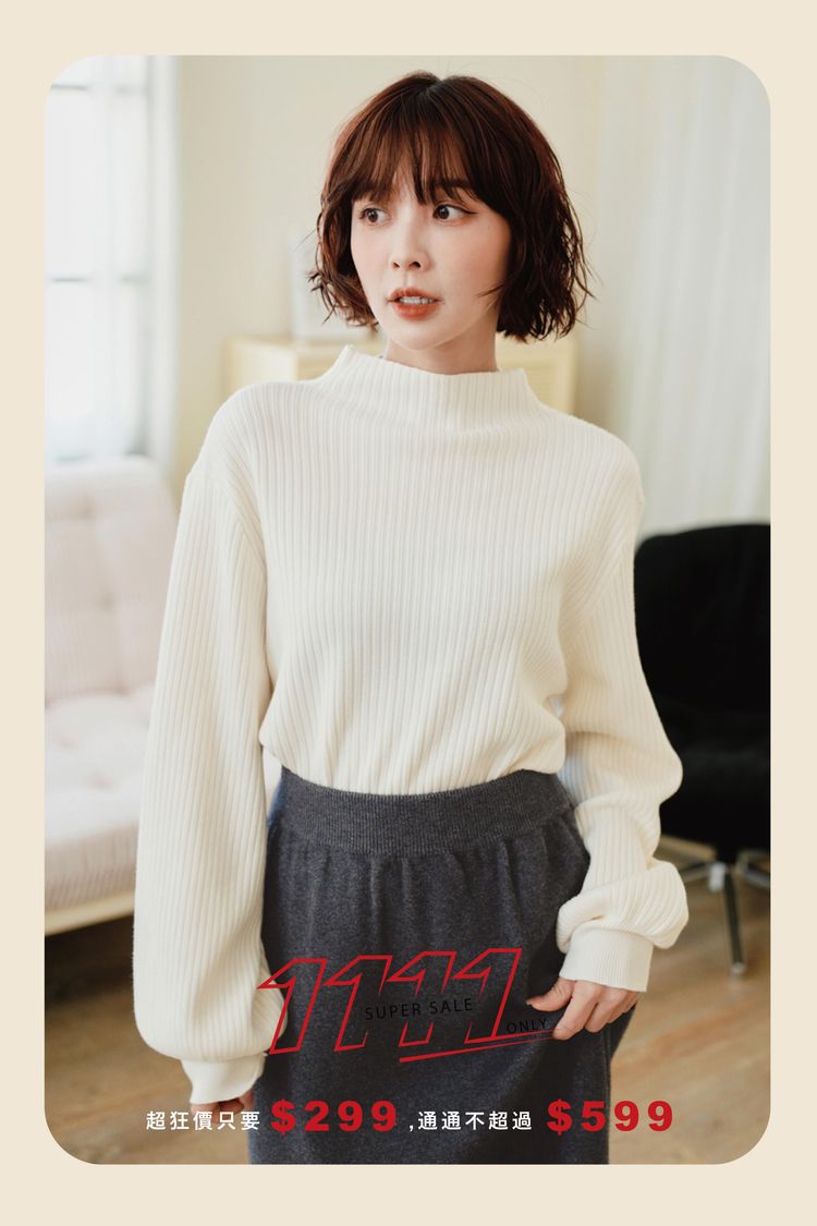 雙11ო半高領澎袖坑紋包芯紗上衣(XL可穿)