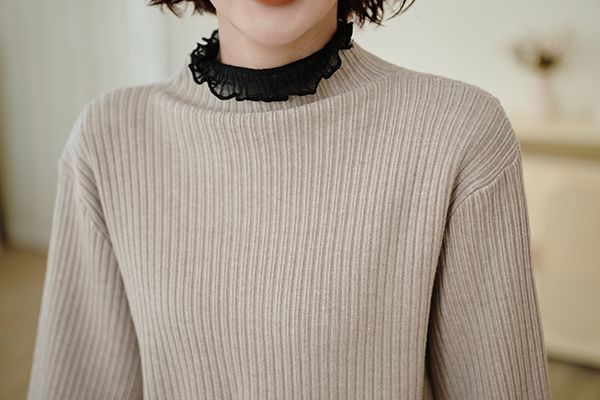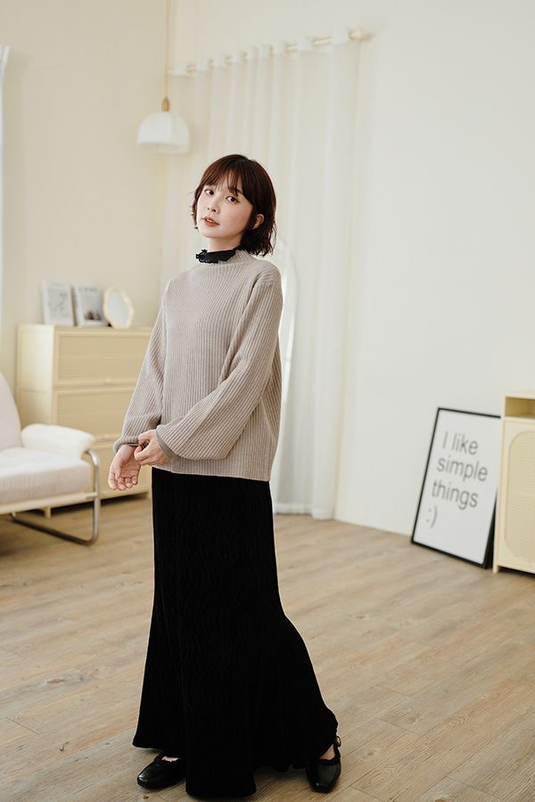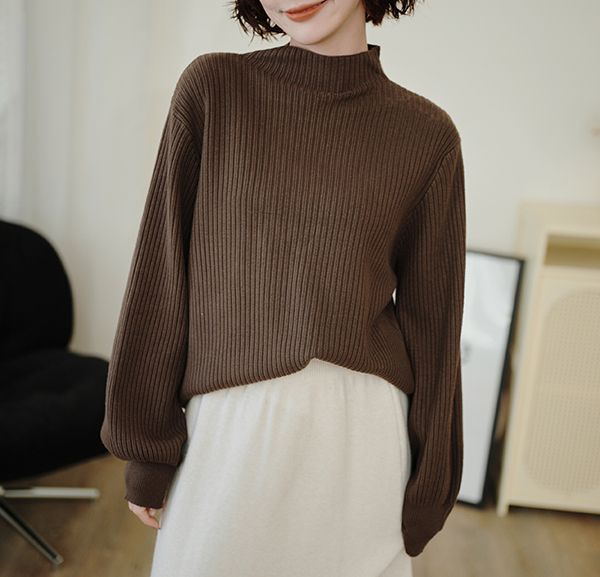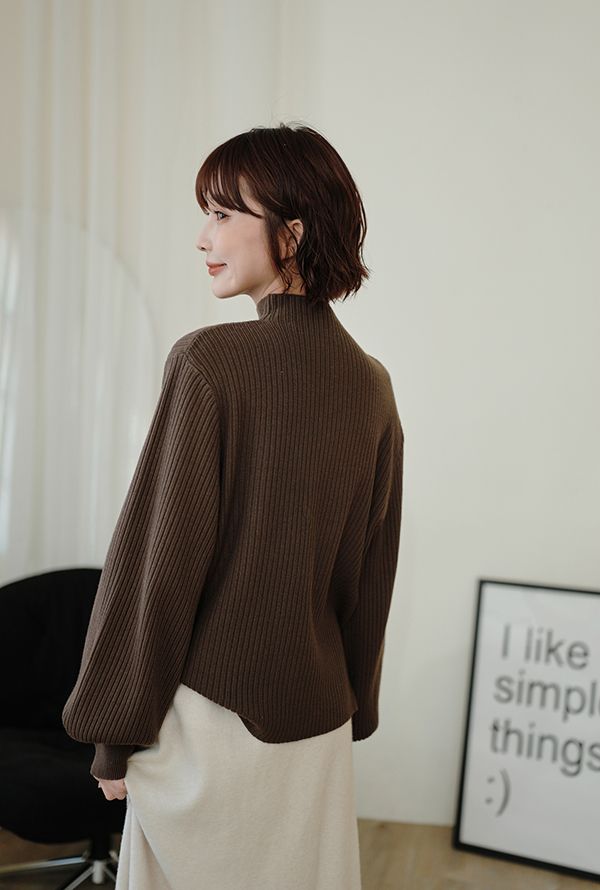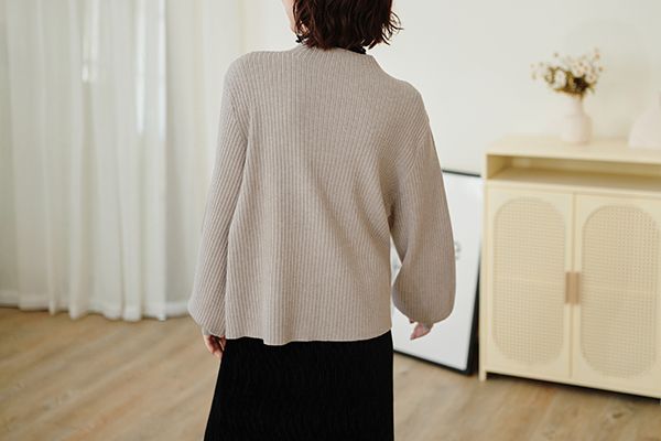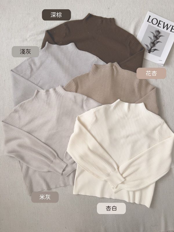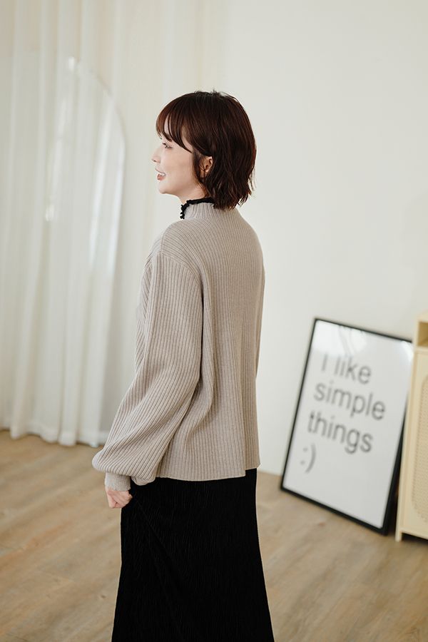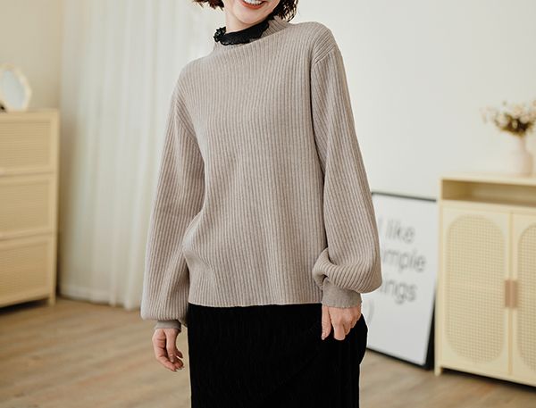 雙11ო半高領澎袖坑紋包芯紗上衣(XL可穿)