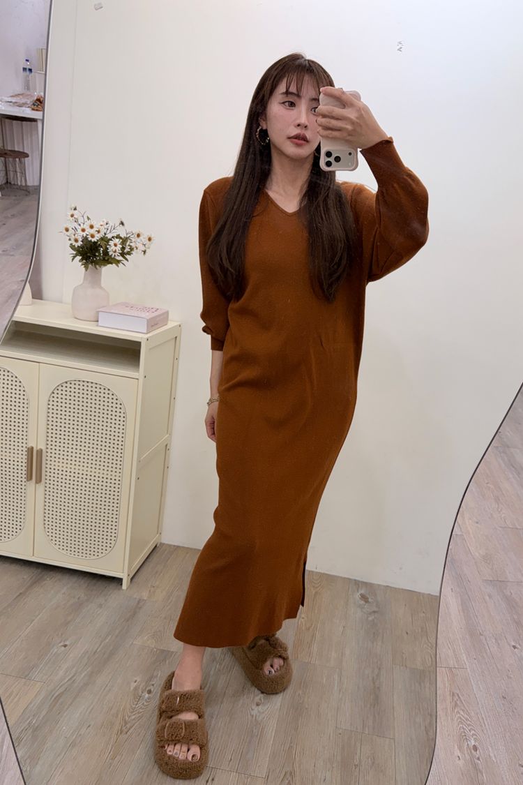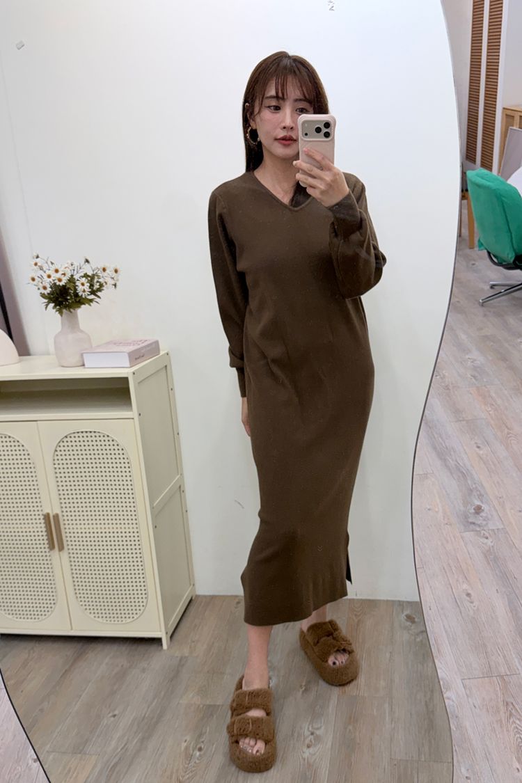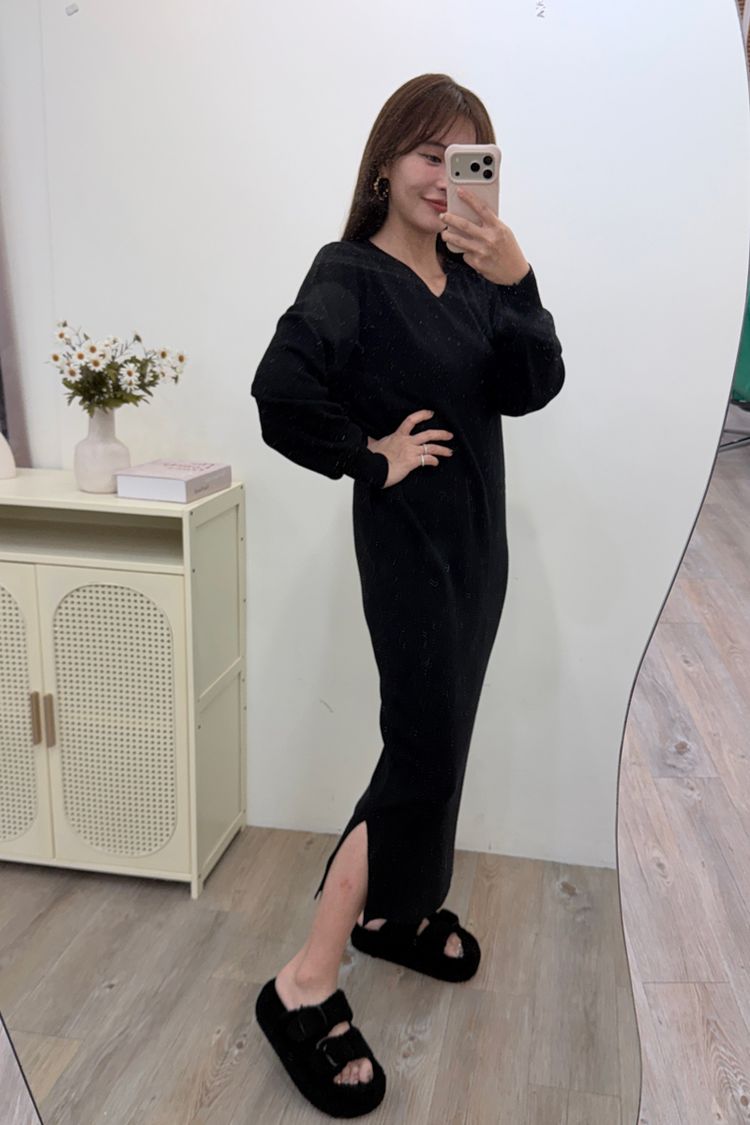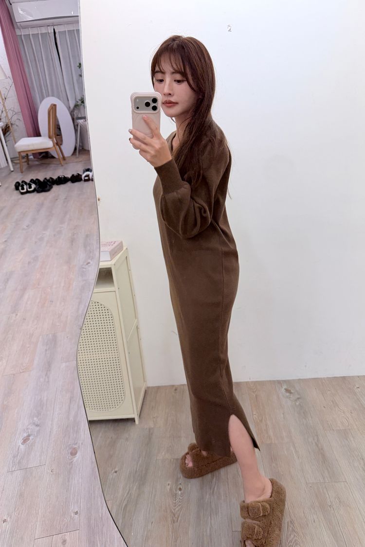 小V領柔軟安迪絨連身洋(側開岔/XL可穿)