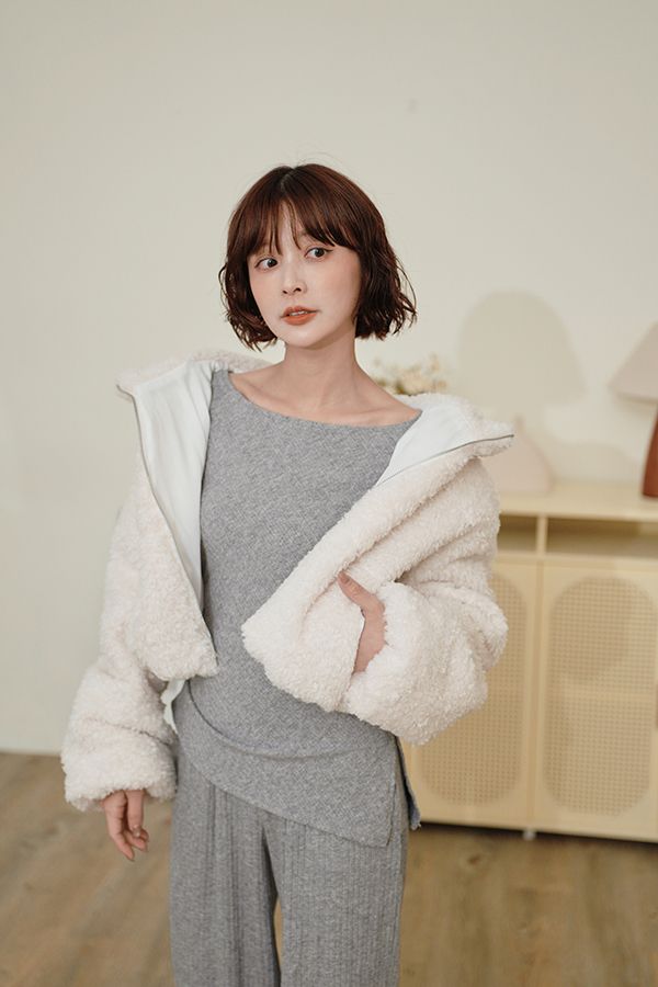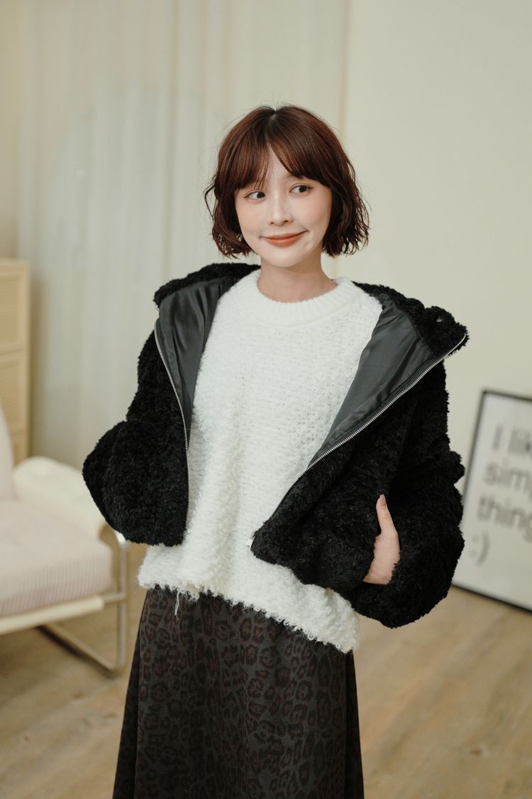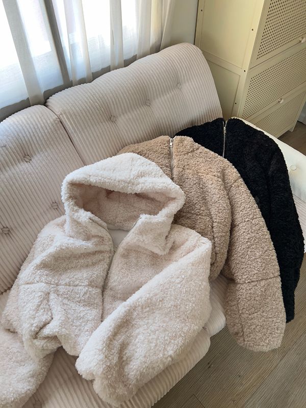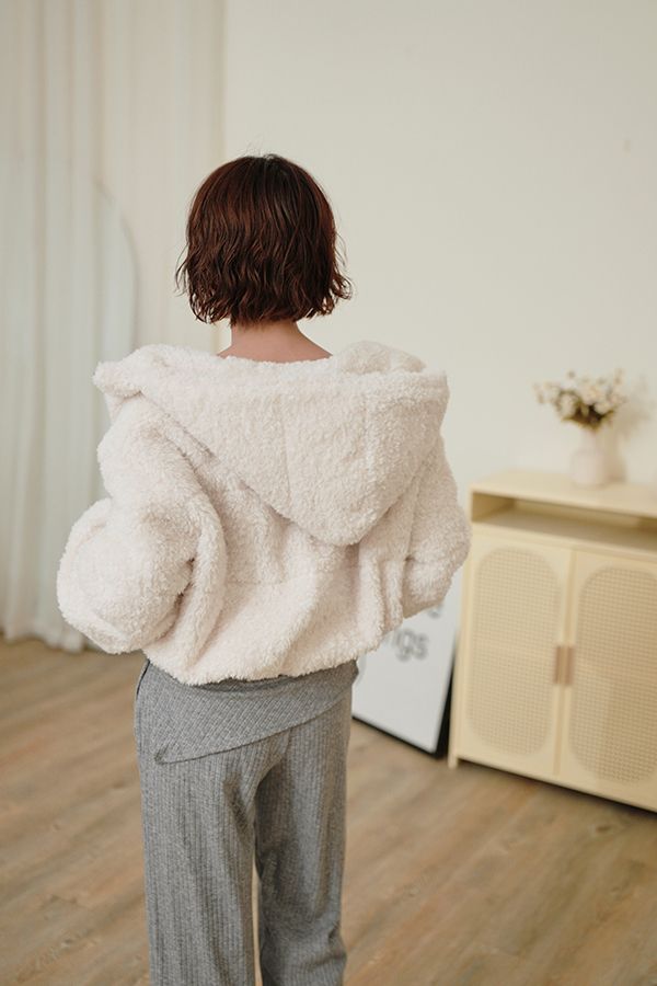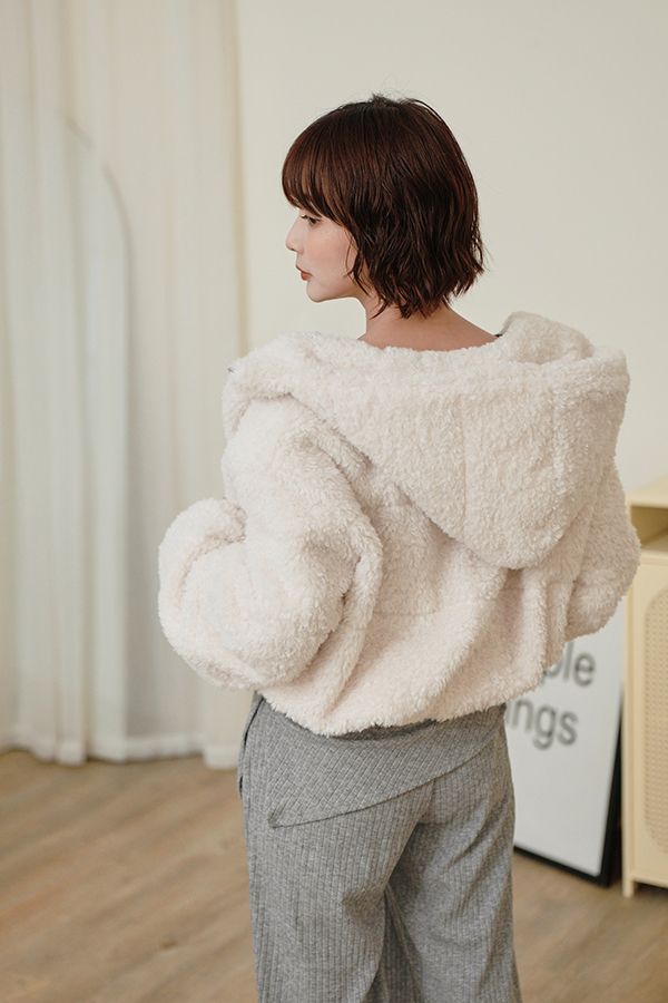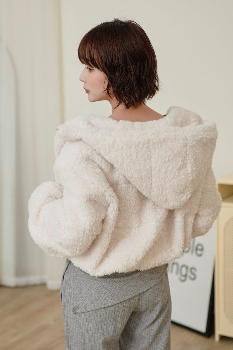 連帽泰迪短襬外套(下擺鬆緊)