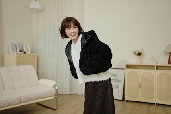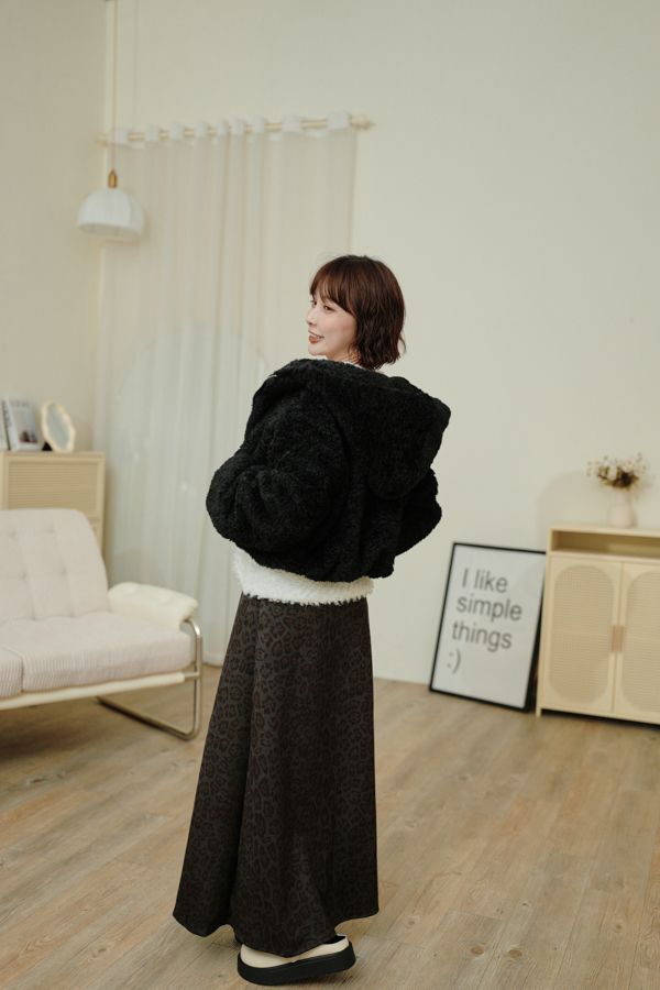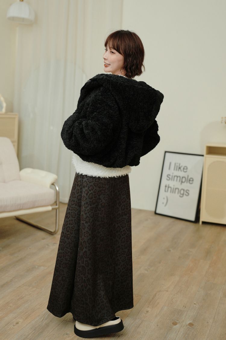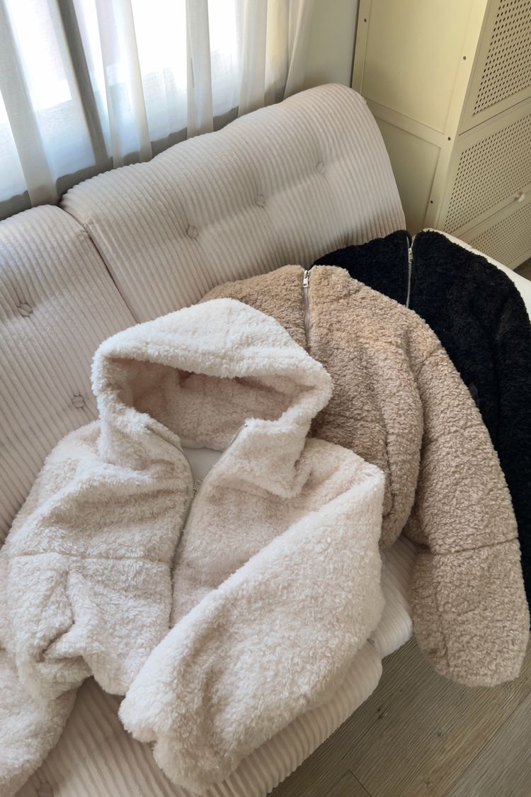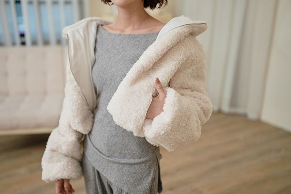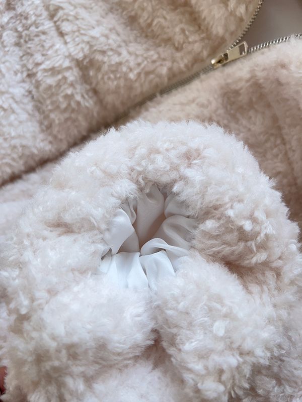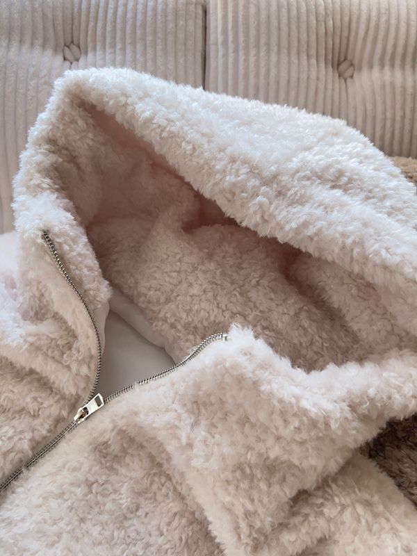 連帽泰迪短襬外套(下擺鬆緊)