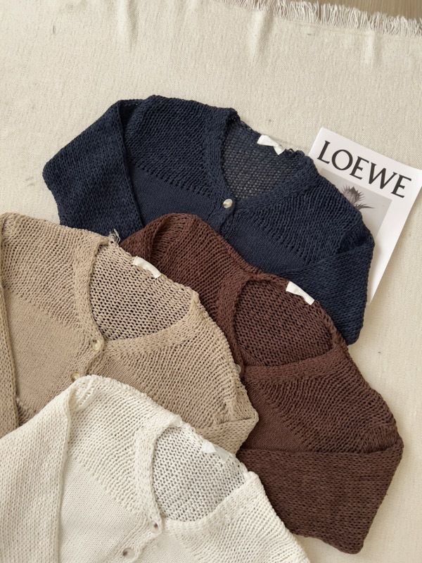 粗鉤針織琥珀釦上衣/外套(可拉平肩)