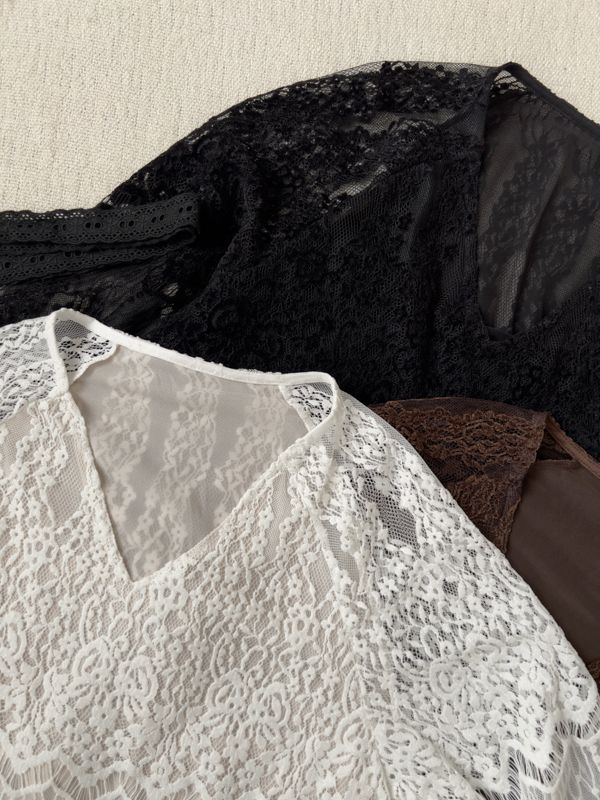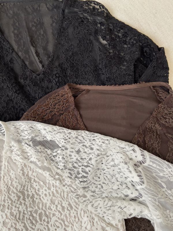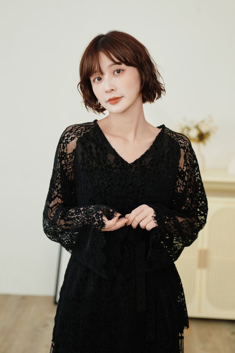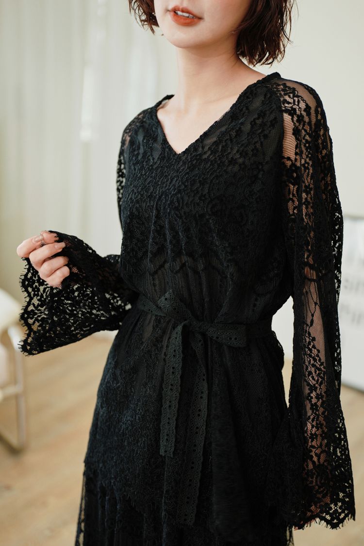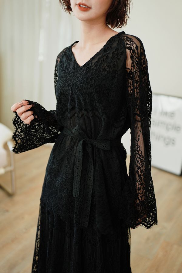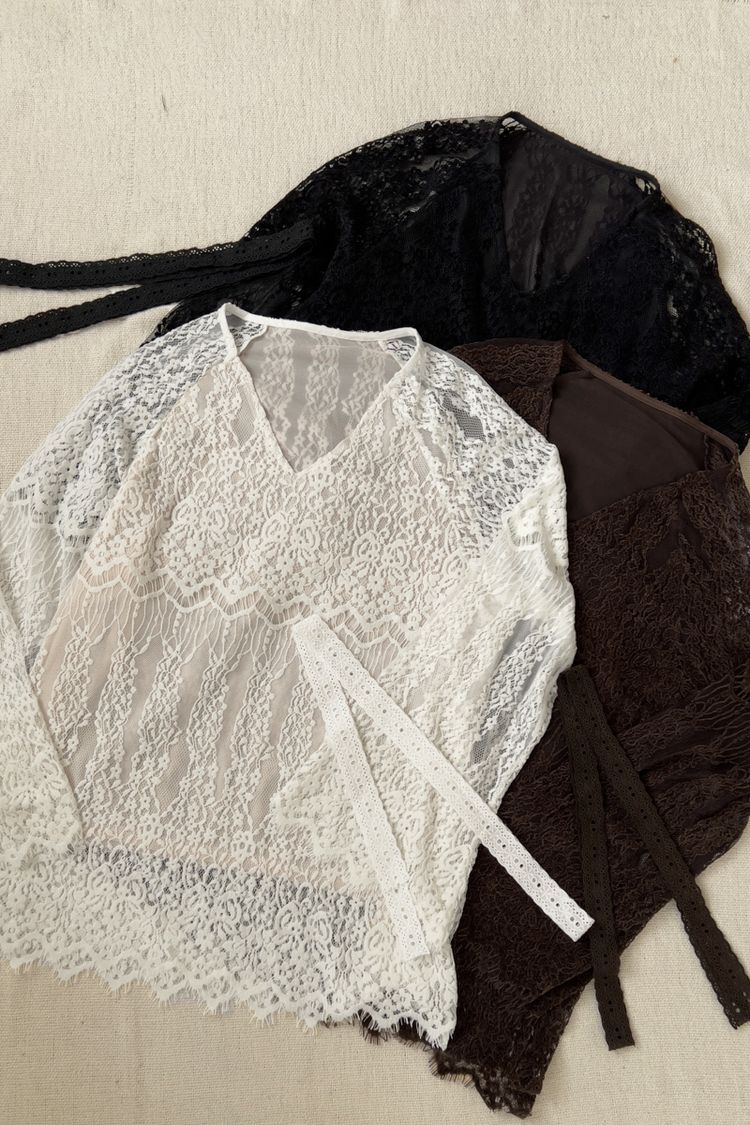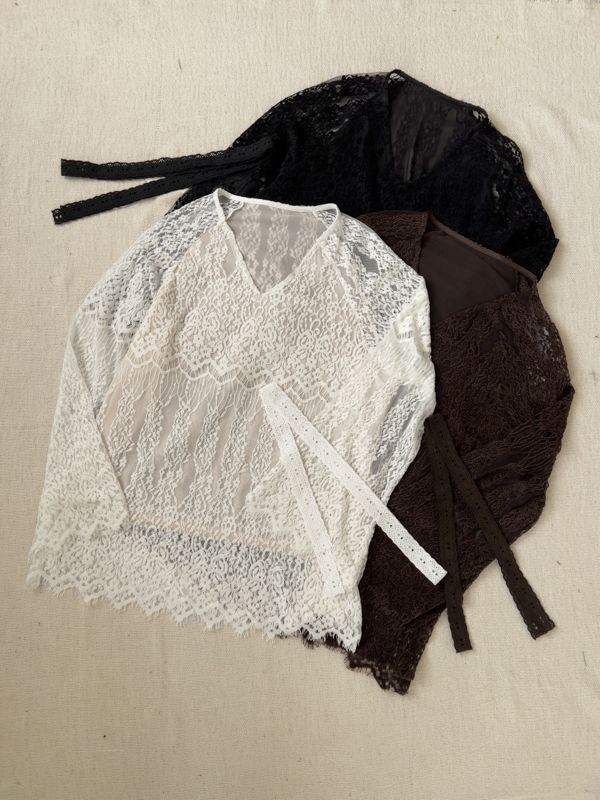 絕美蕾絲V領上衣(附綁帶)