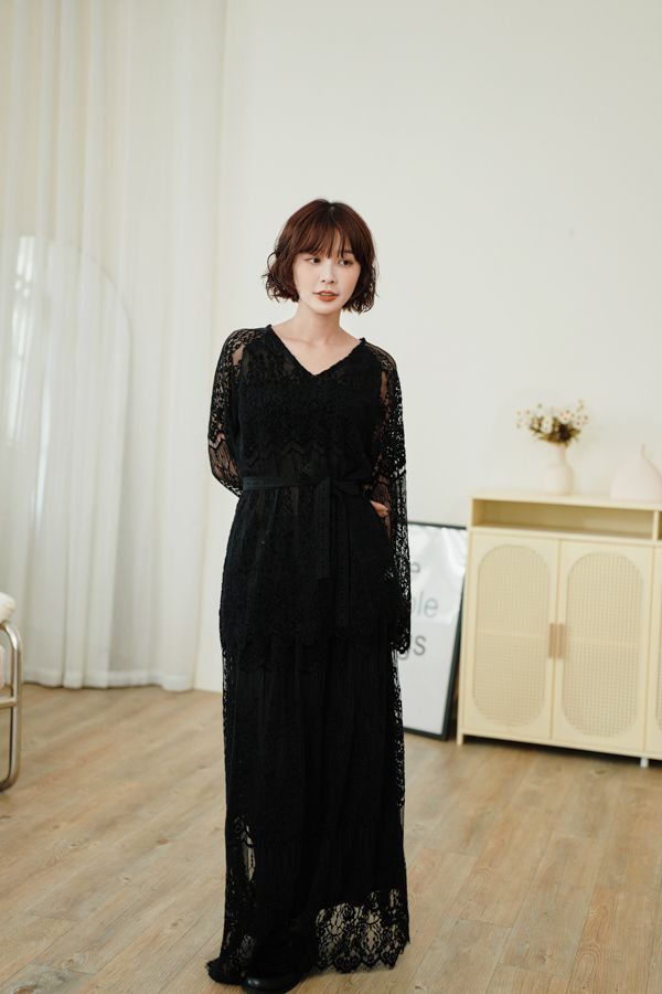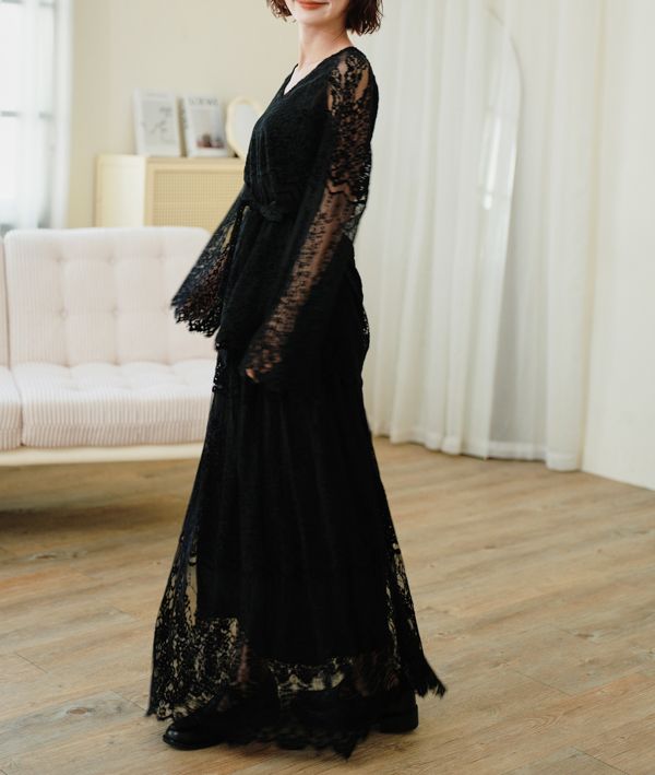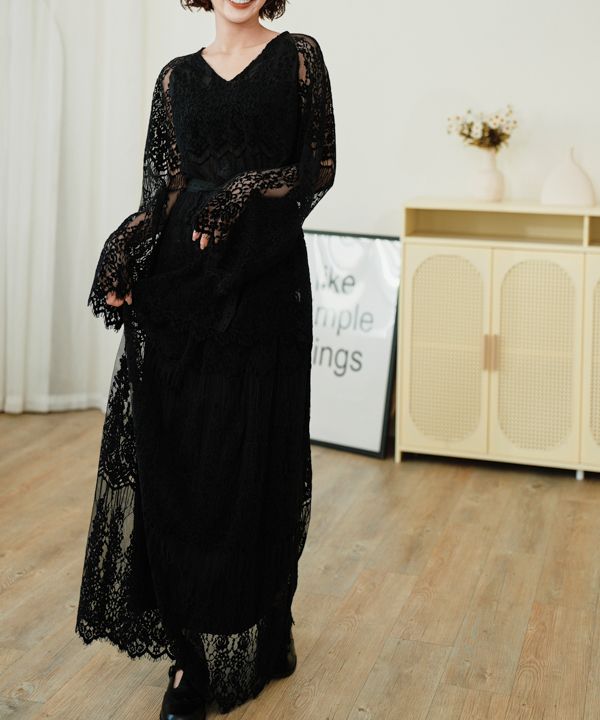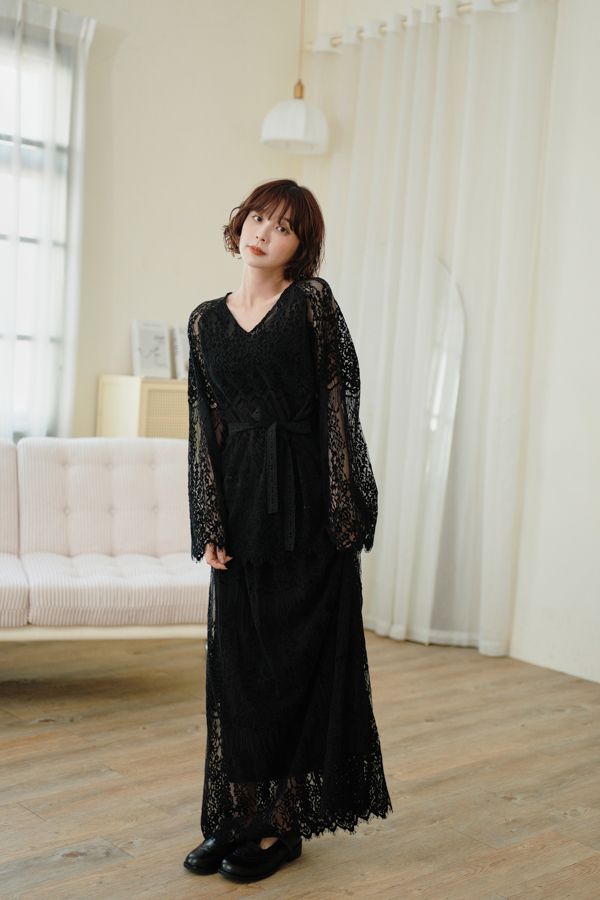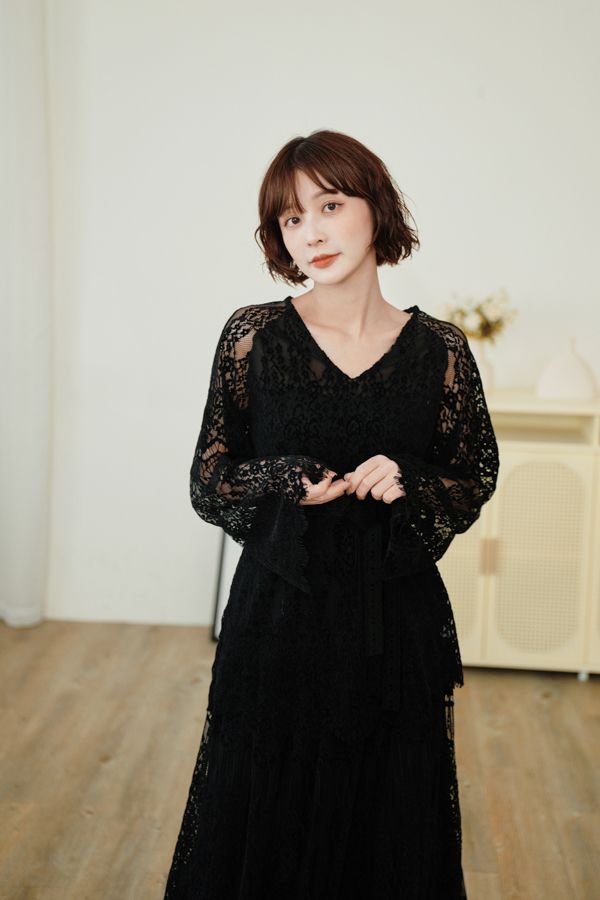 內外兩穿浪漫蕾絲長裙