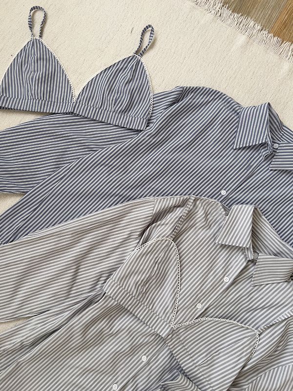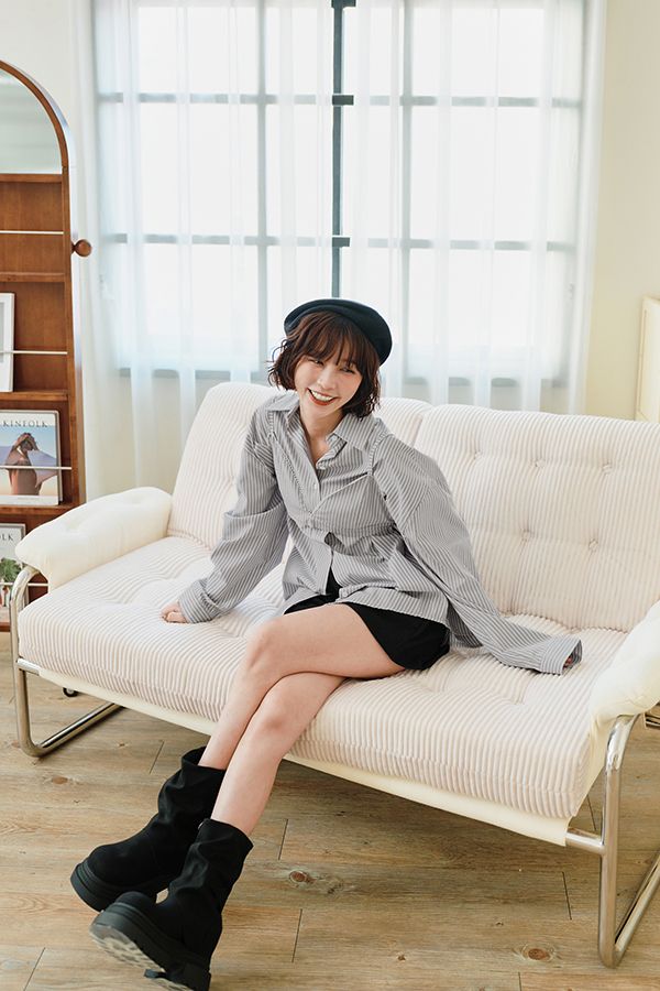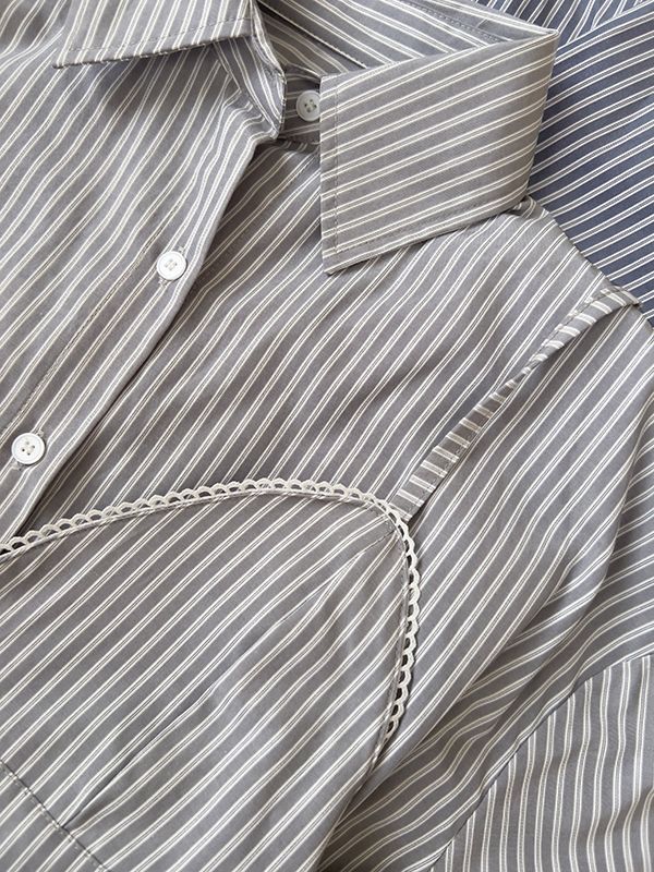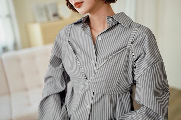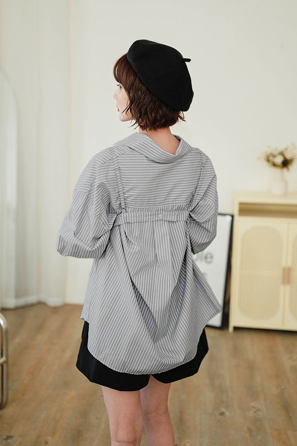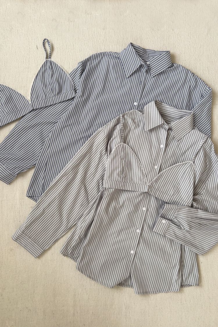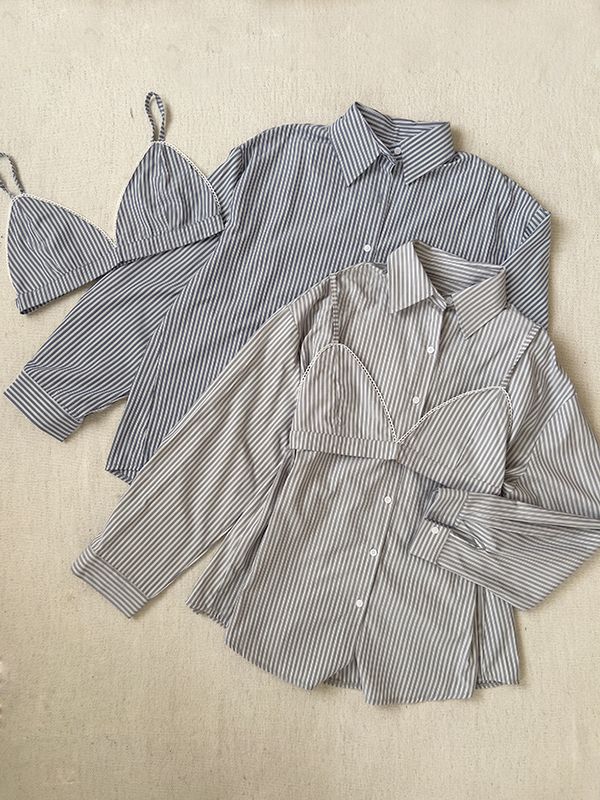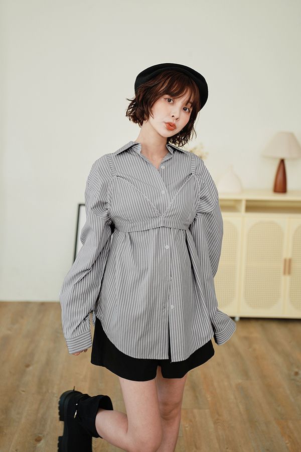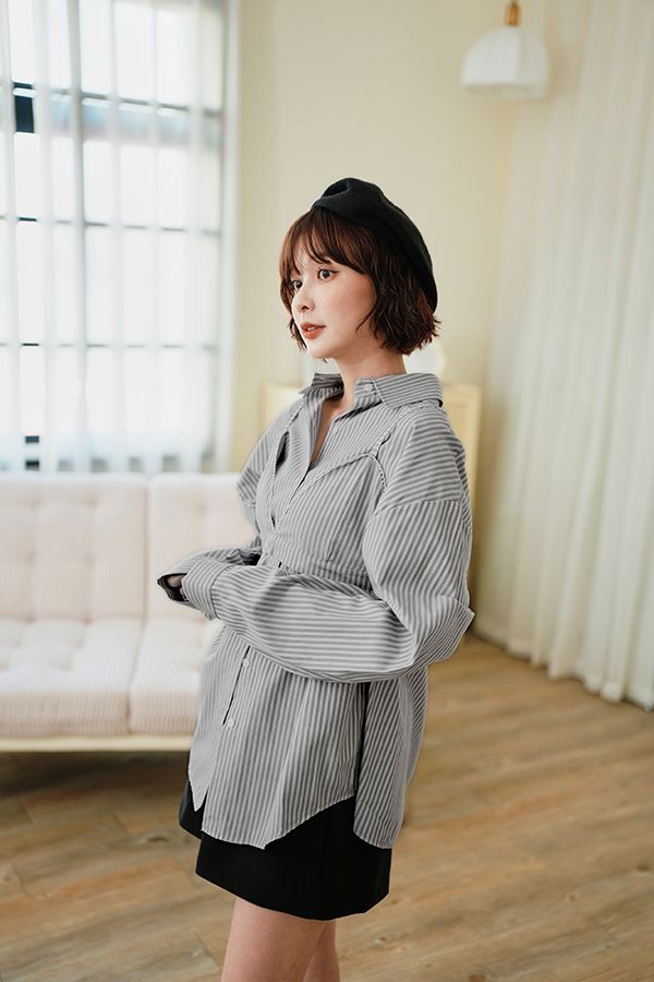 休閒條紋襯衫背心組(附設計感小背心)